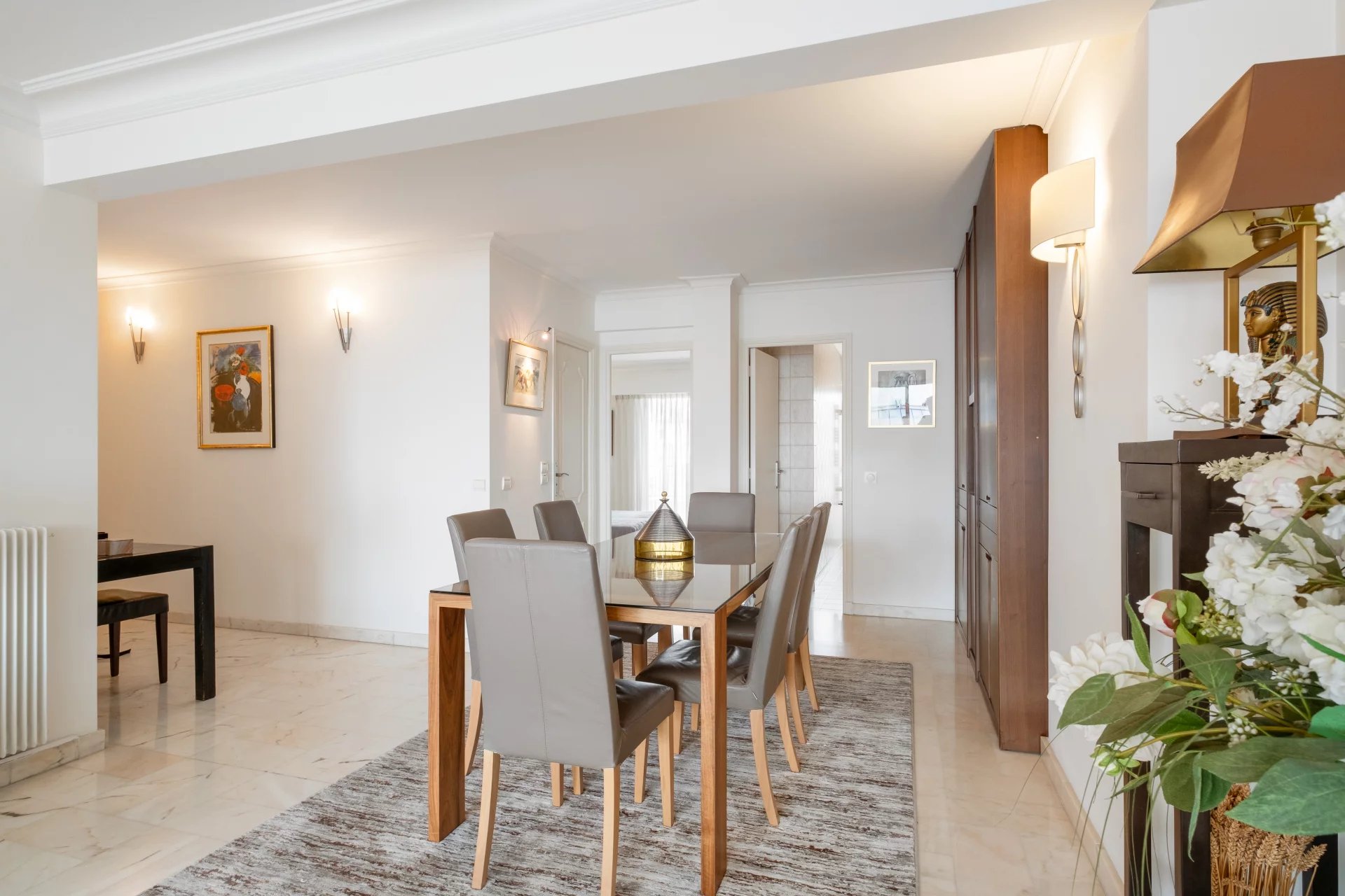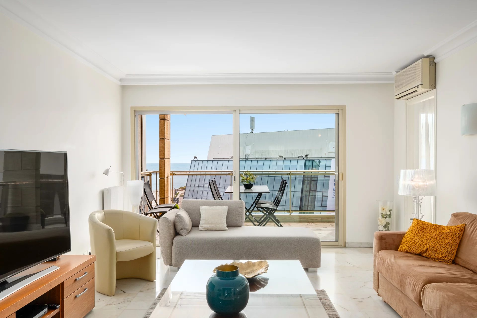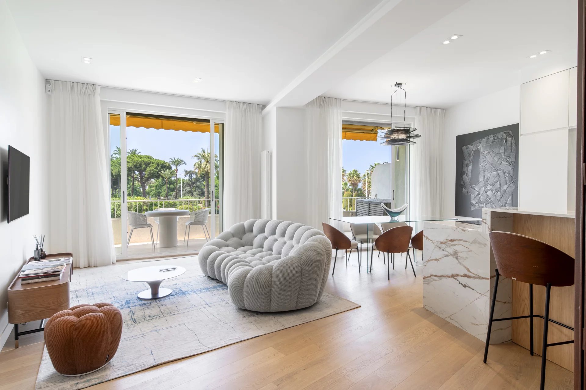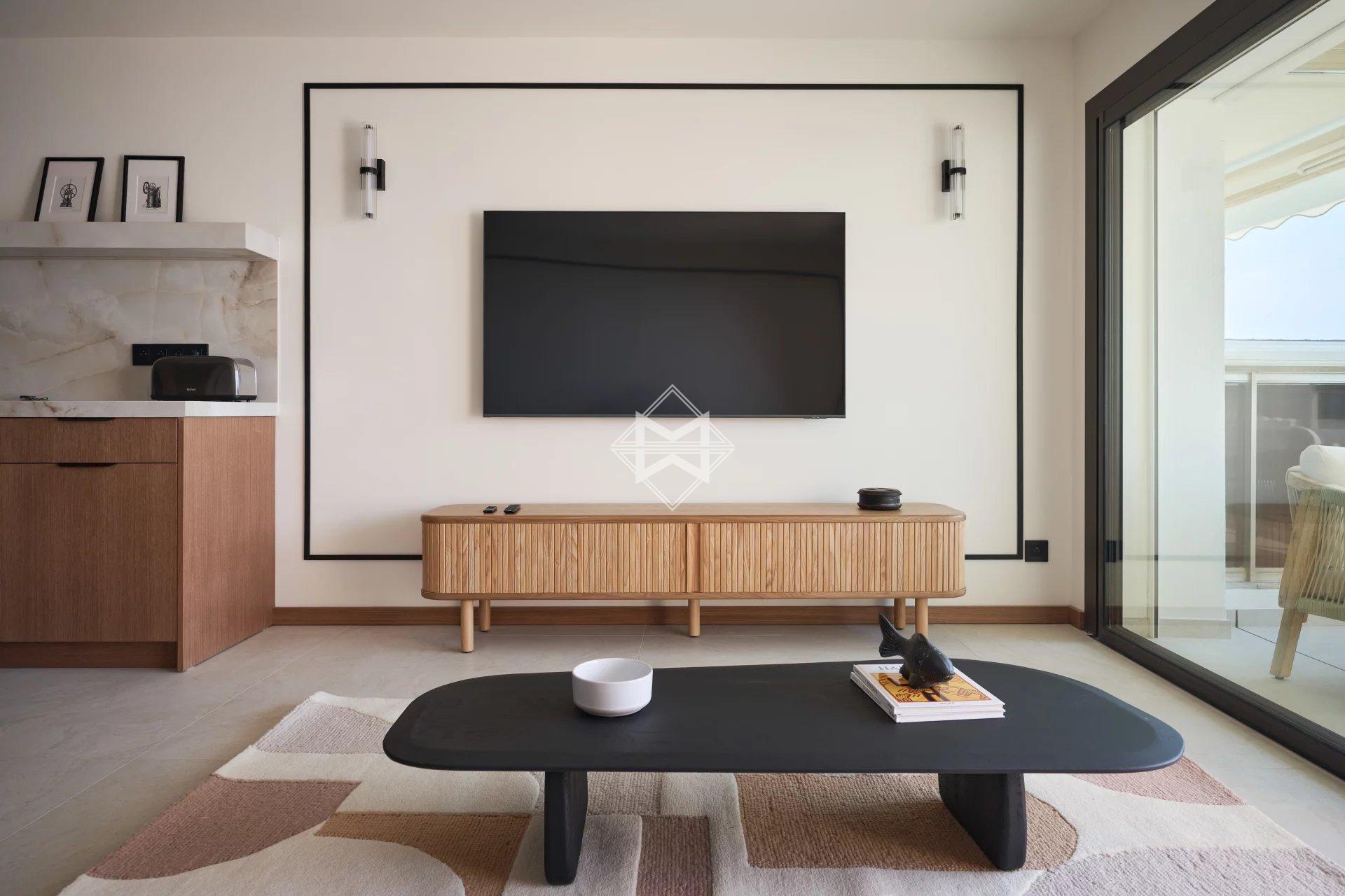 This magnificent apartment, ideally located opposite the Palais des Festivals, has been completely renovated to a very high standard.