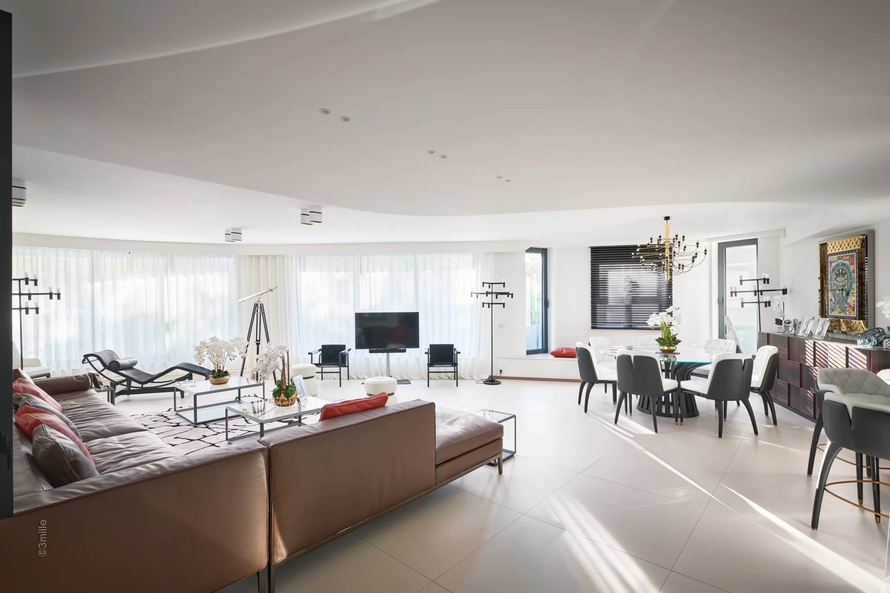 - A fully-equipped kitchen opening onto a vast living room