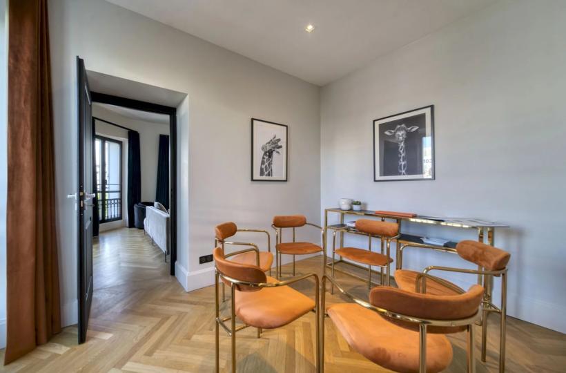 Decorated with great care and entirely renovated, it combines the bourgeois charm of the period with its cornices, its Hungarian parquet flooring, its high ceilings and the comfort of a luxury hotel.