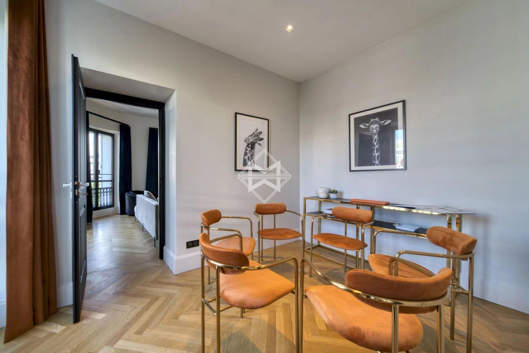 Located on the 3rd floor of a bourgeois building, a flat of approx. 195 sqm with high ceilings offering a rare view on the Palais des Festivals and the Old Port.