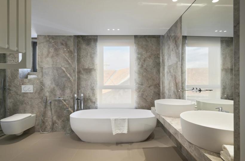 - A Master bedroom en suite with bathroom, shower, WC, and long balcony,