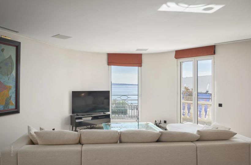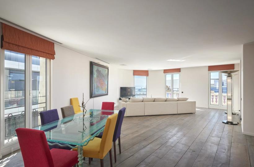 In the heart of the Croisette, in a beautiful bourgeois building, this 5-room penthouse of approx. 157sqm has been entirely renovated with top-of-the-range contemporary fittings.