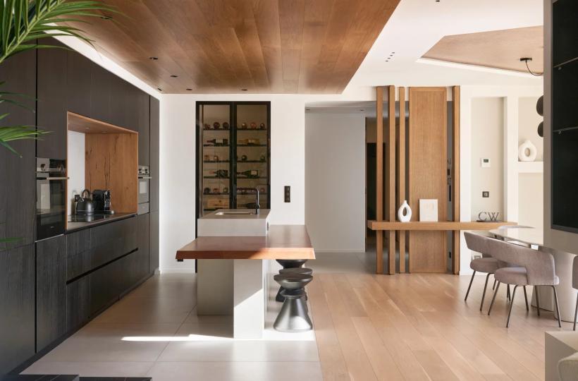- A fully-equipped open-plan kitchen with central island