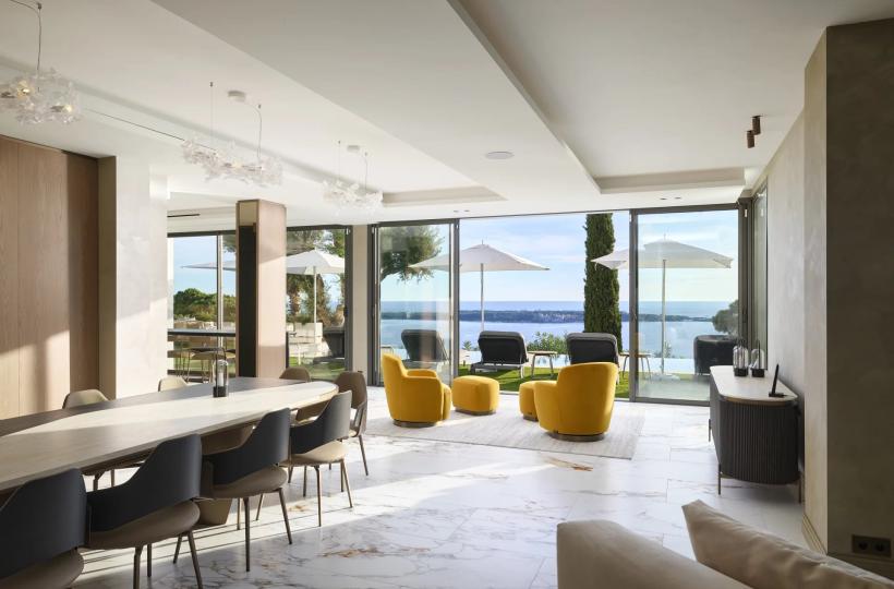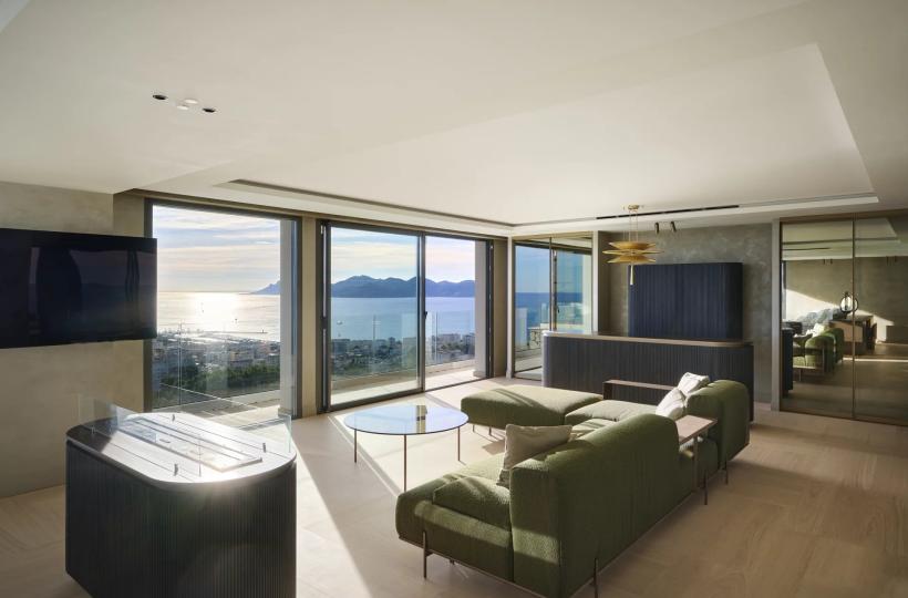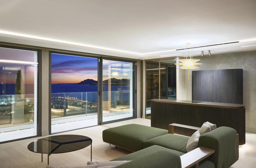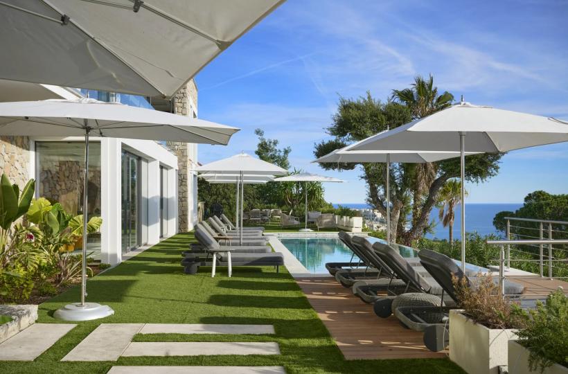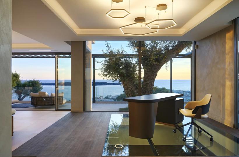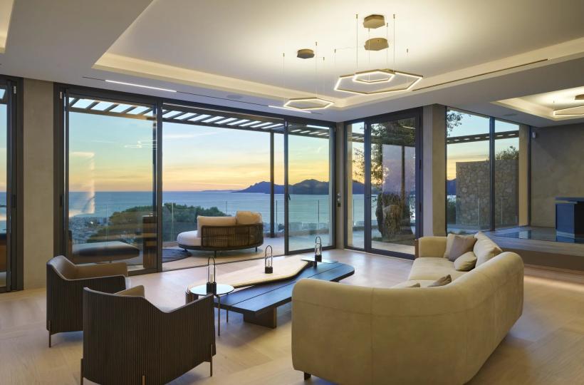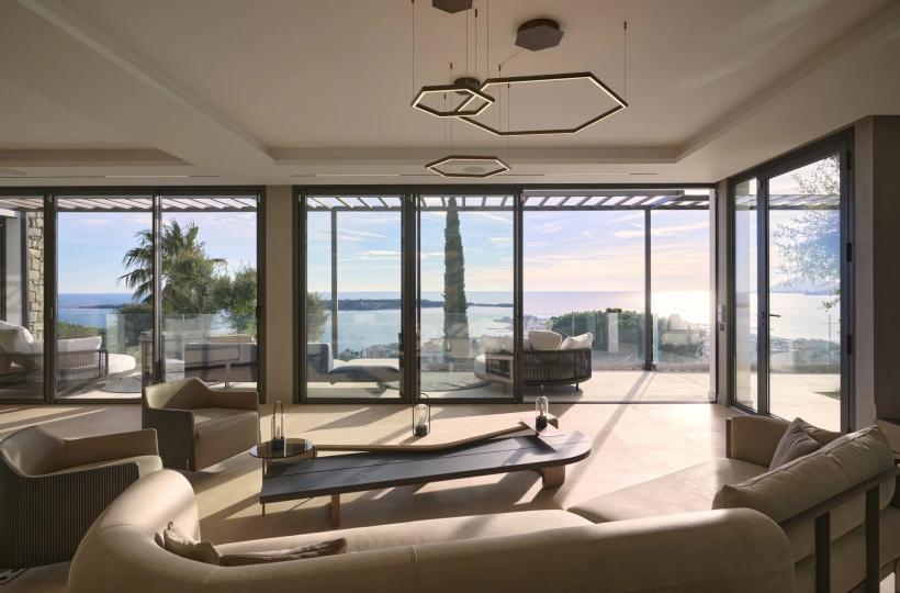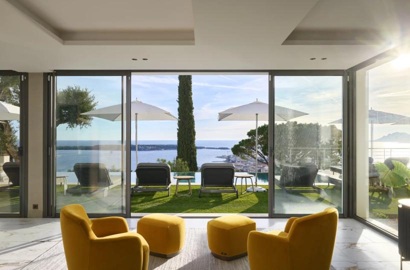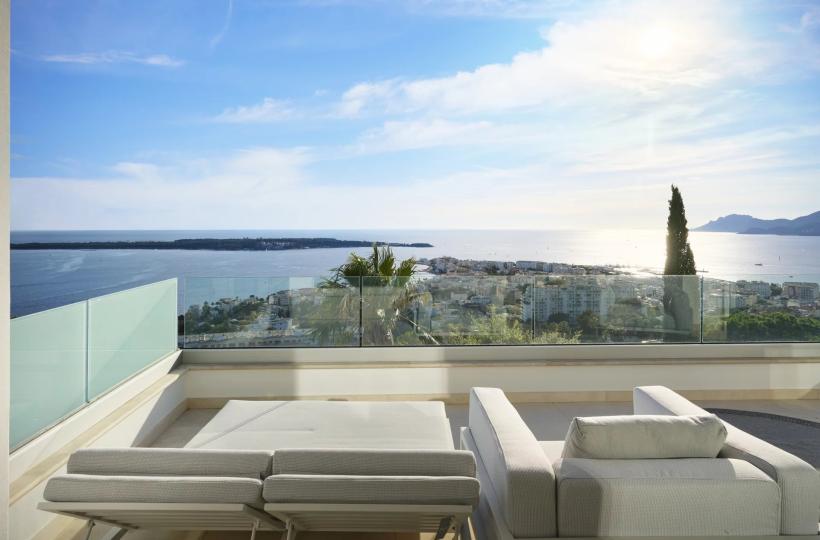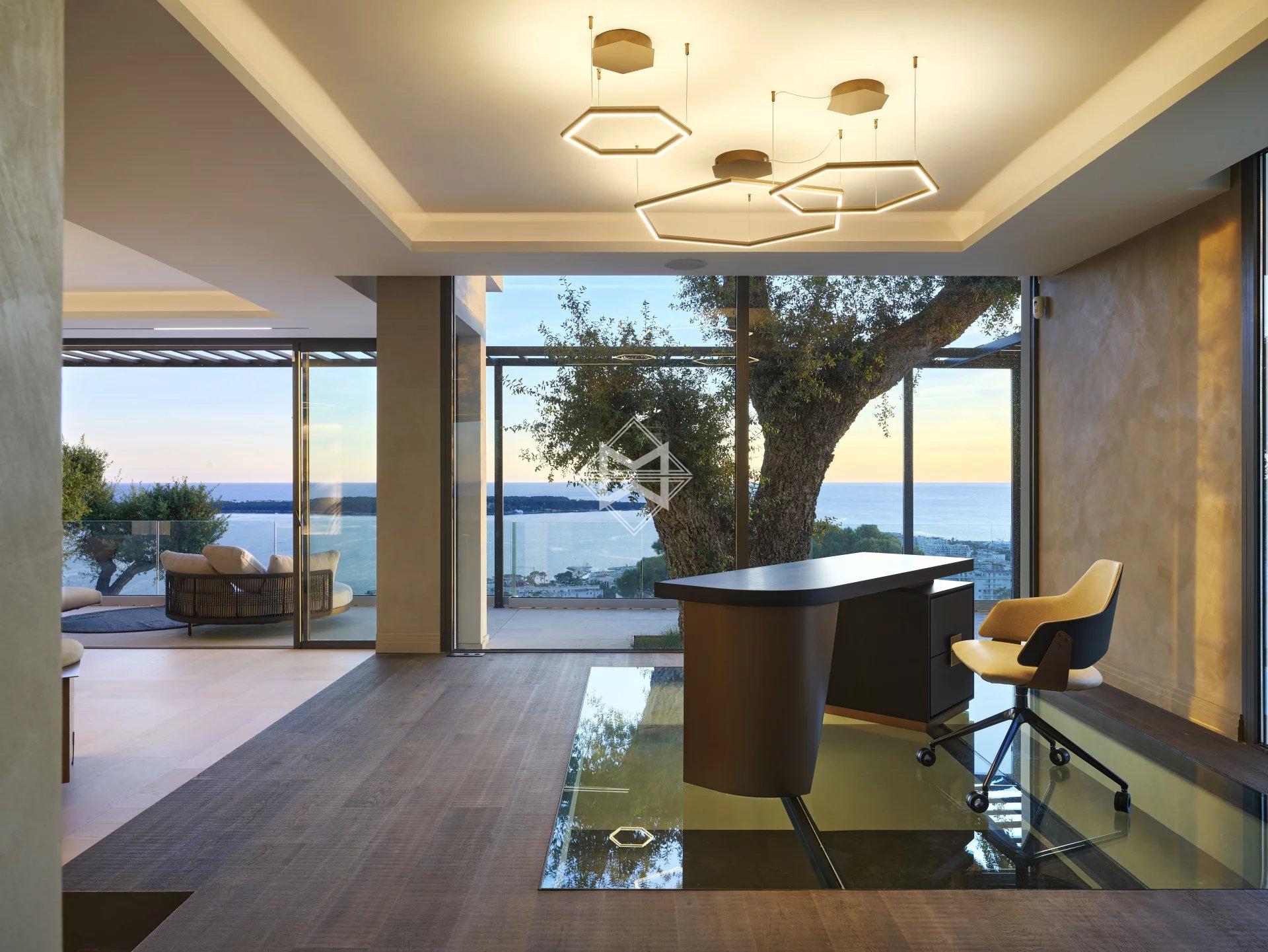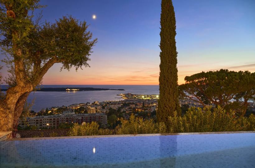 Outside, an infinity pool overlooks the Lérins islands as far as Le Suquet and Theoule.