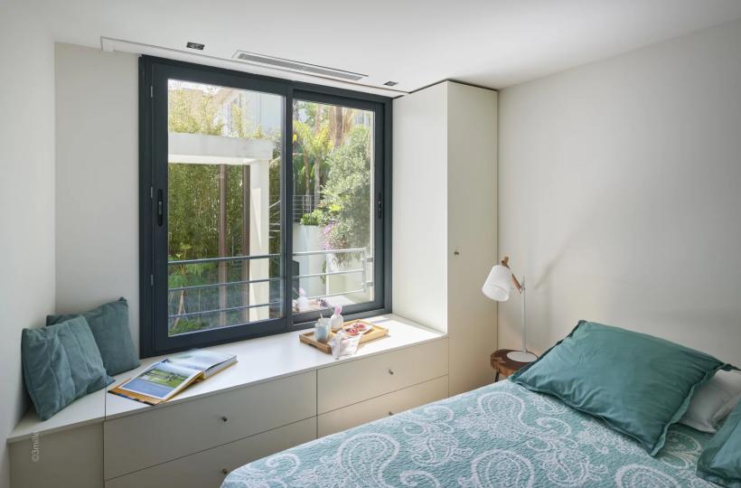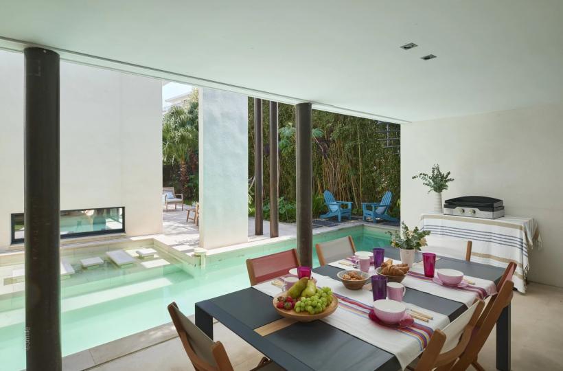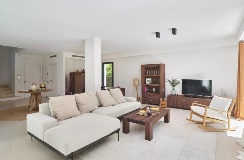 Featuring bold, modern architecture, the villa combines contemporary design with top-of-the-range comfort. The light-filled living spaces open out generously onto the garden, creating a perfect harmony between indoors and out. The garden offers a private, leafy setting, ideal for moments of relaxation.