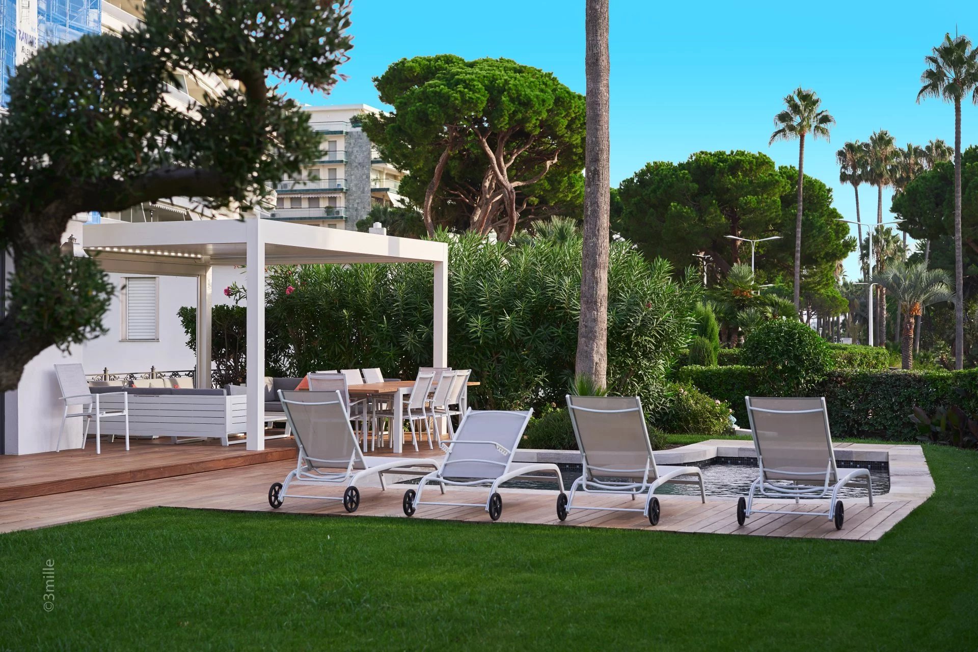 It offers 5 superb full suites, as well as 2 living rooms, 2 dining rooms and 2 kitchens, and opens onto splendid terraces.