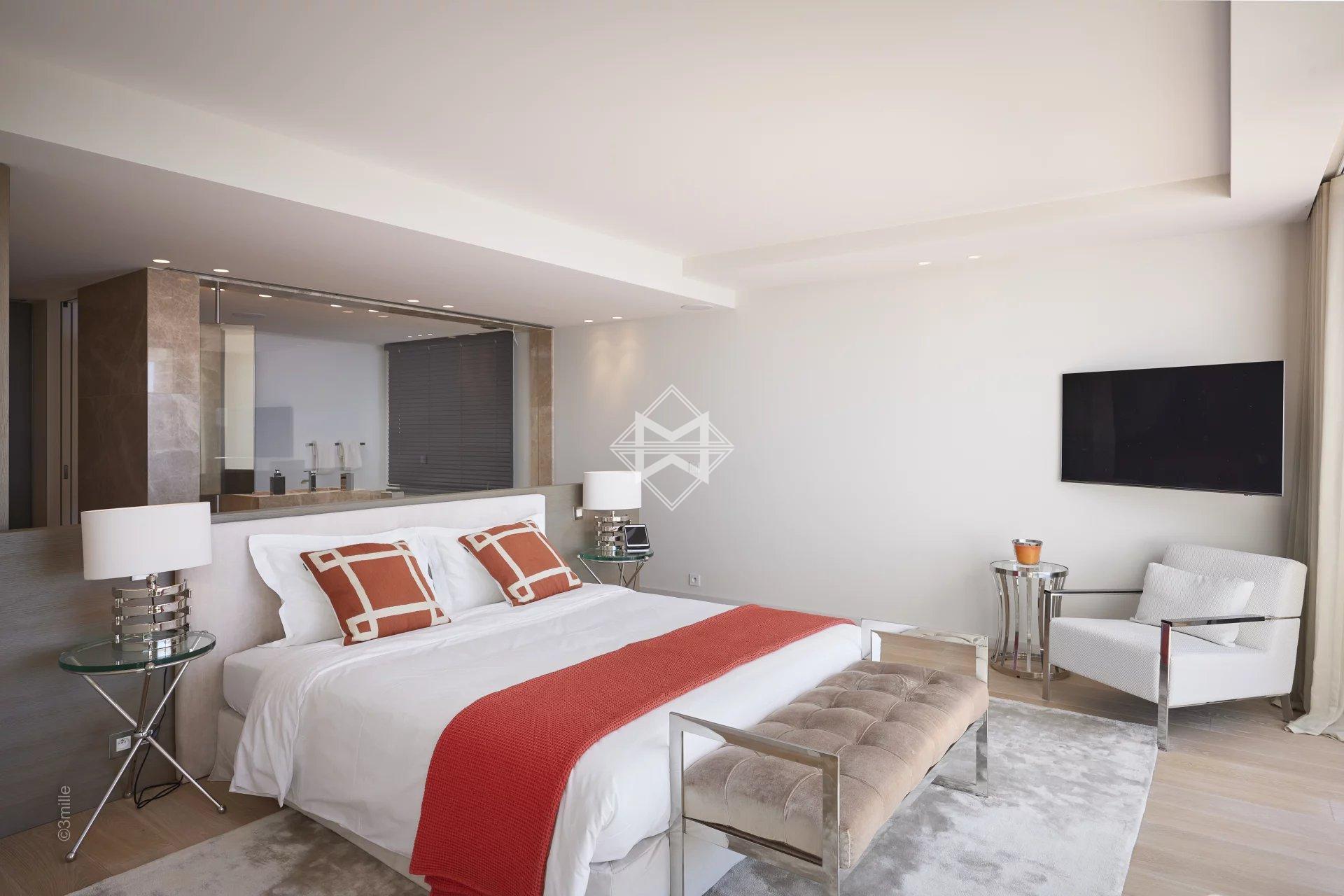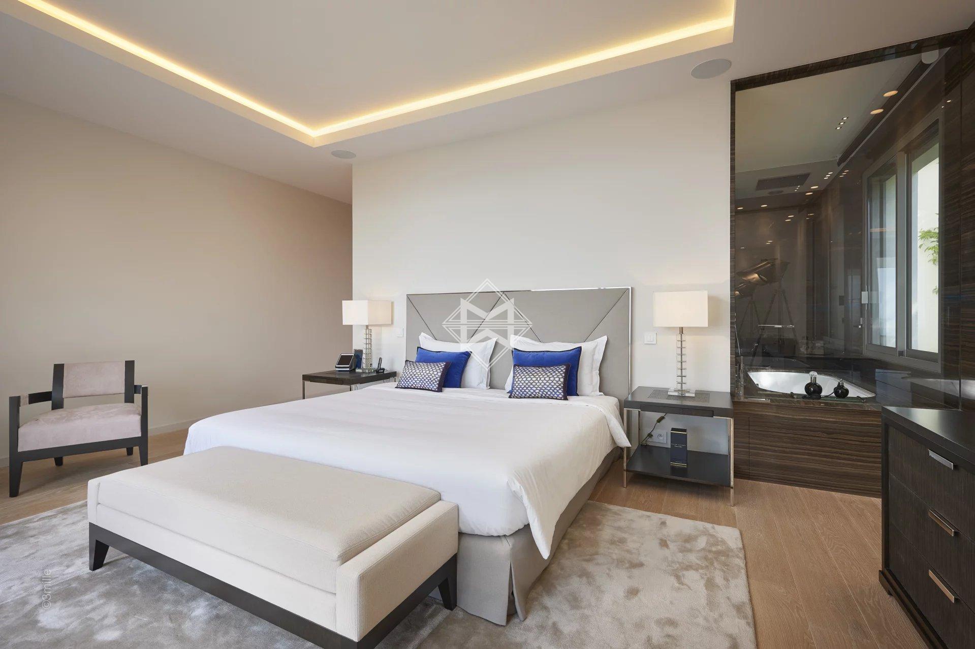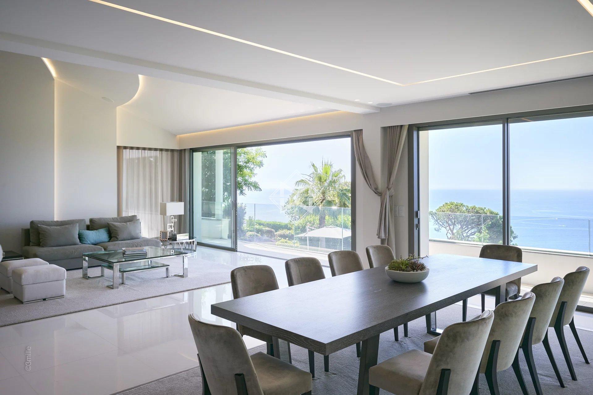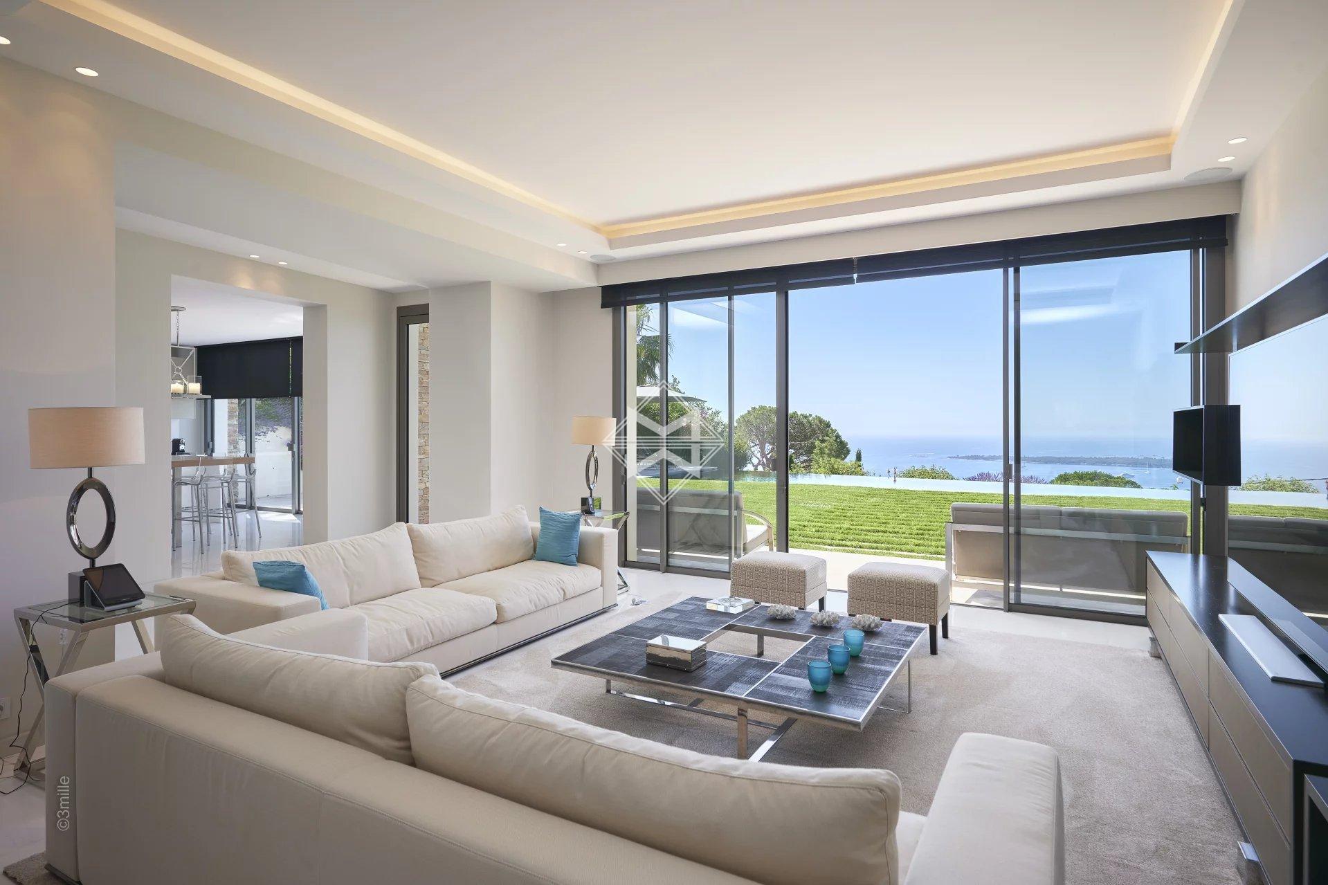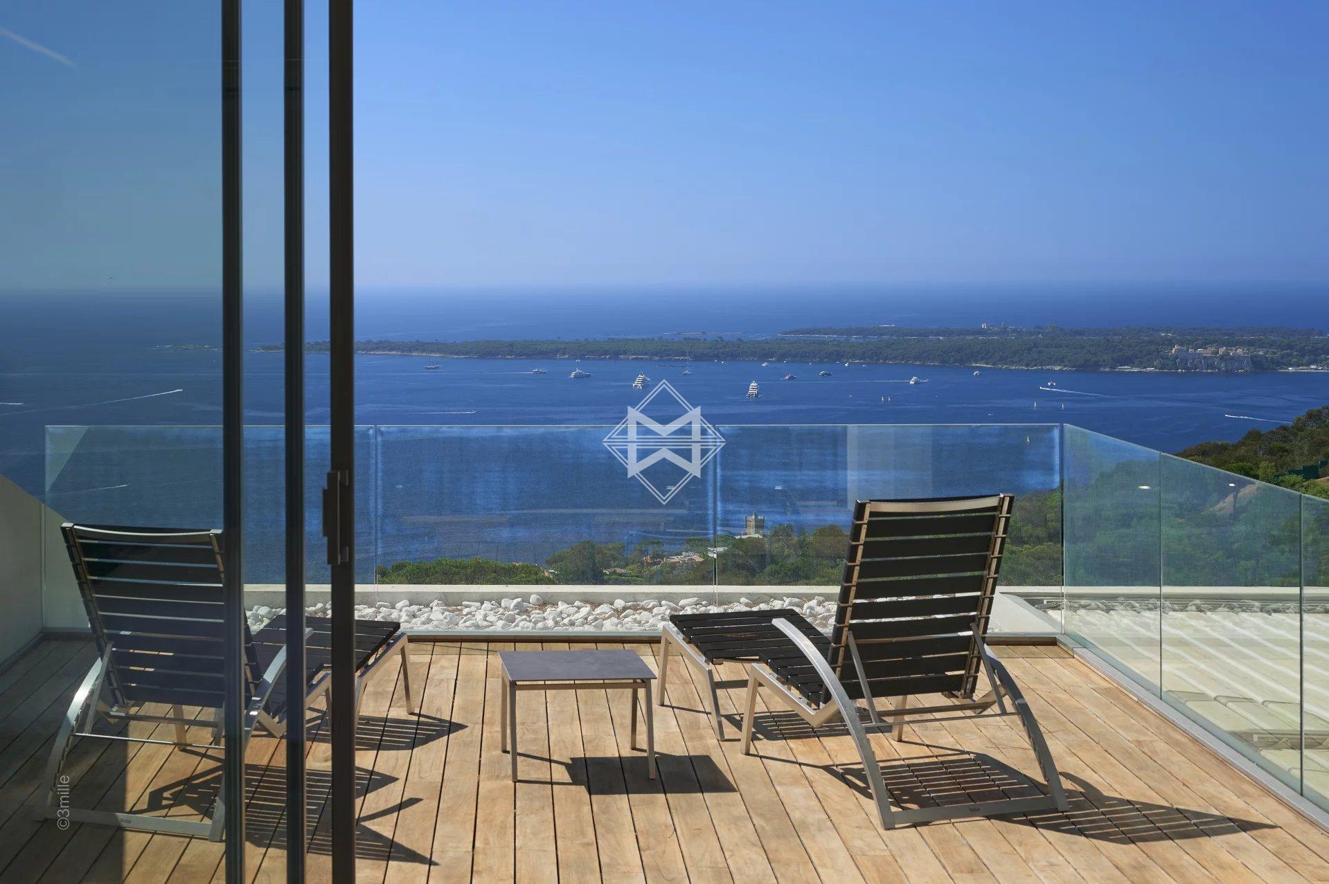 Located just a few minutes from the centre, this magnificent new contemporary villa of approximately 650 sqm on a plot of almost 2,000 sqm, benefits from a heated swimming pool and offers a breathtaking panoramic sea view.