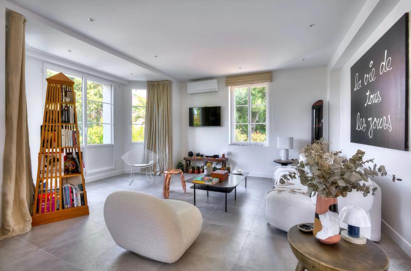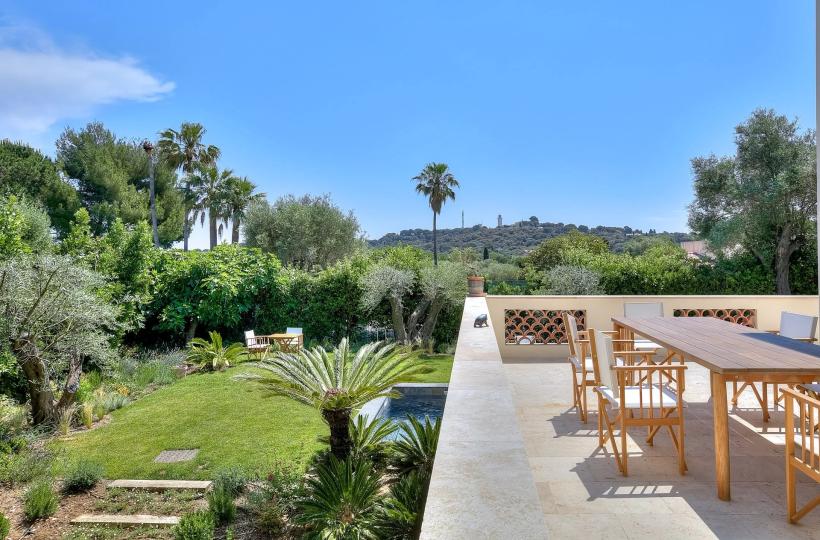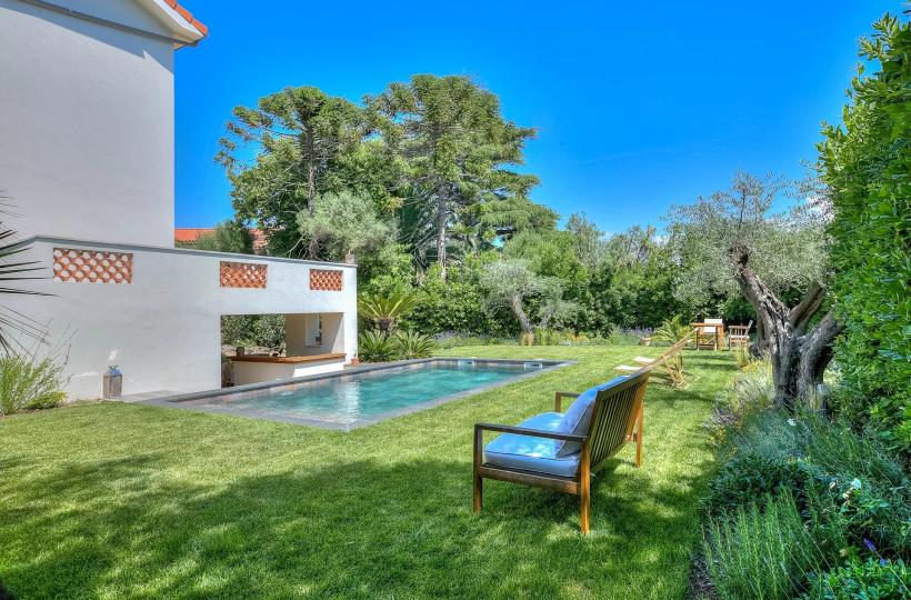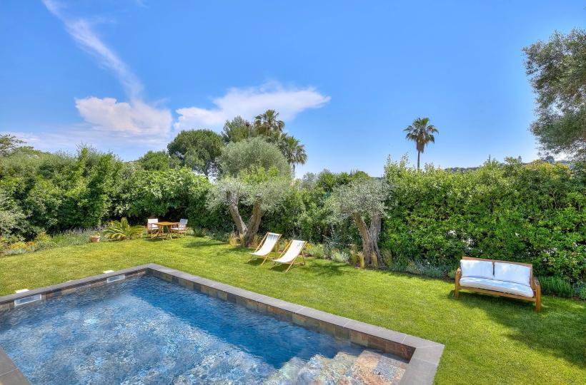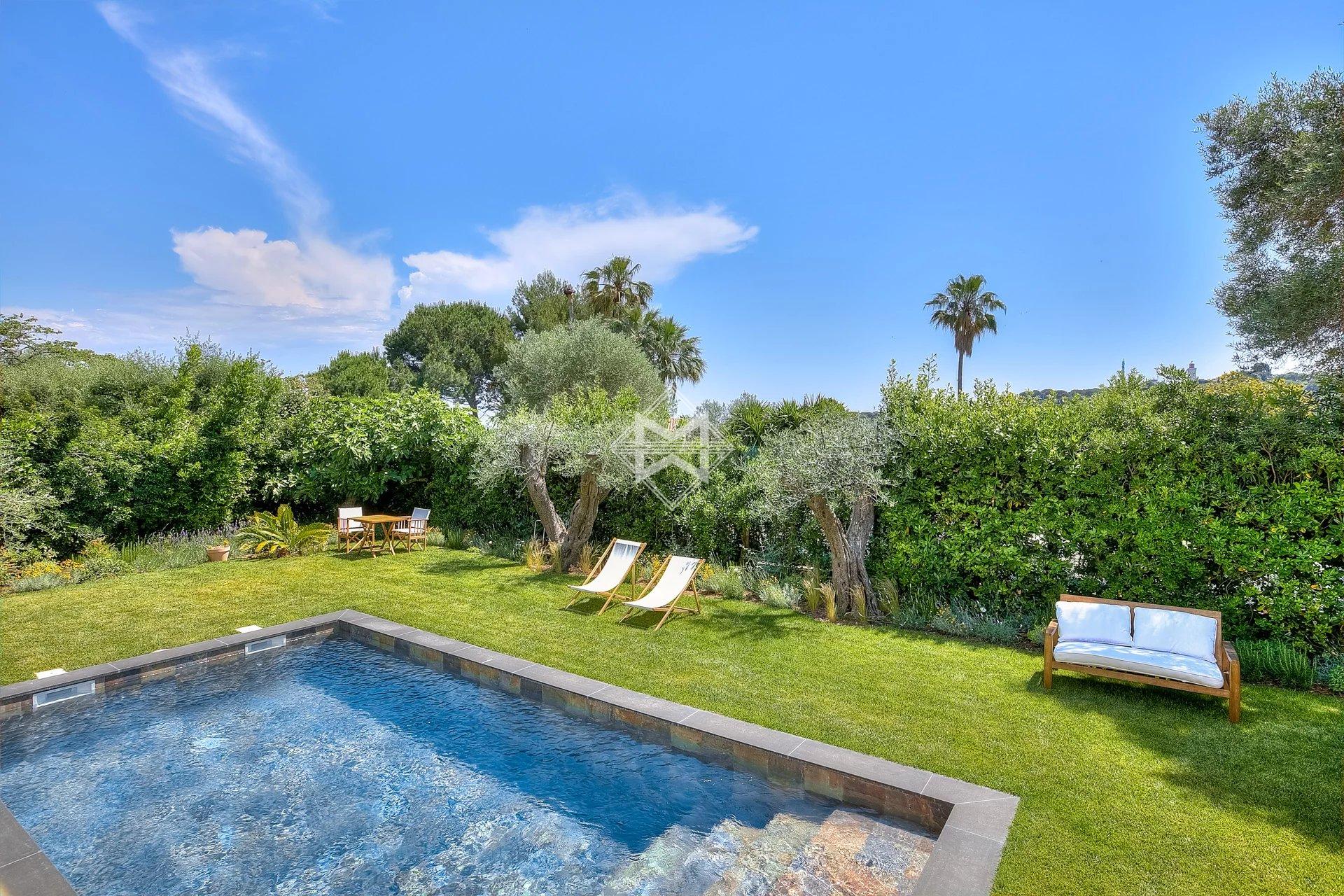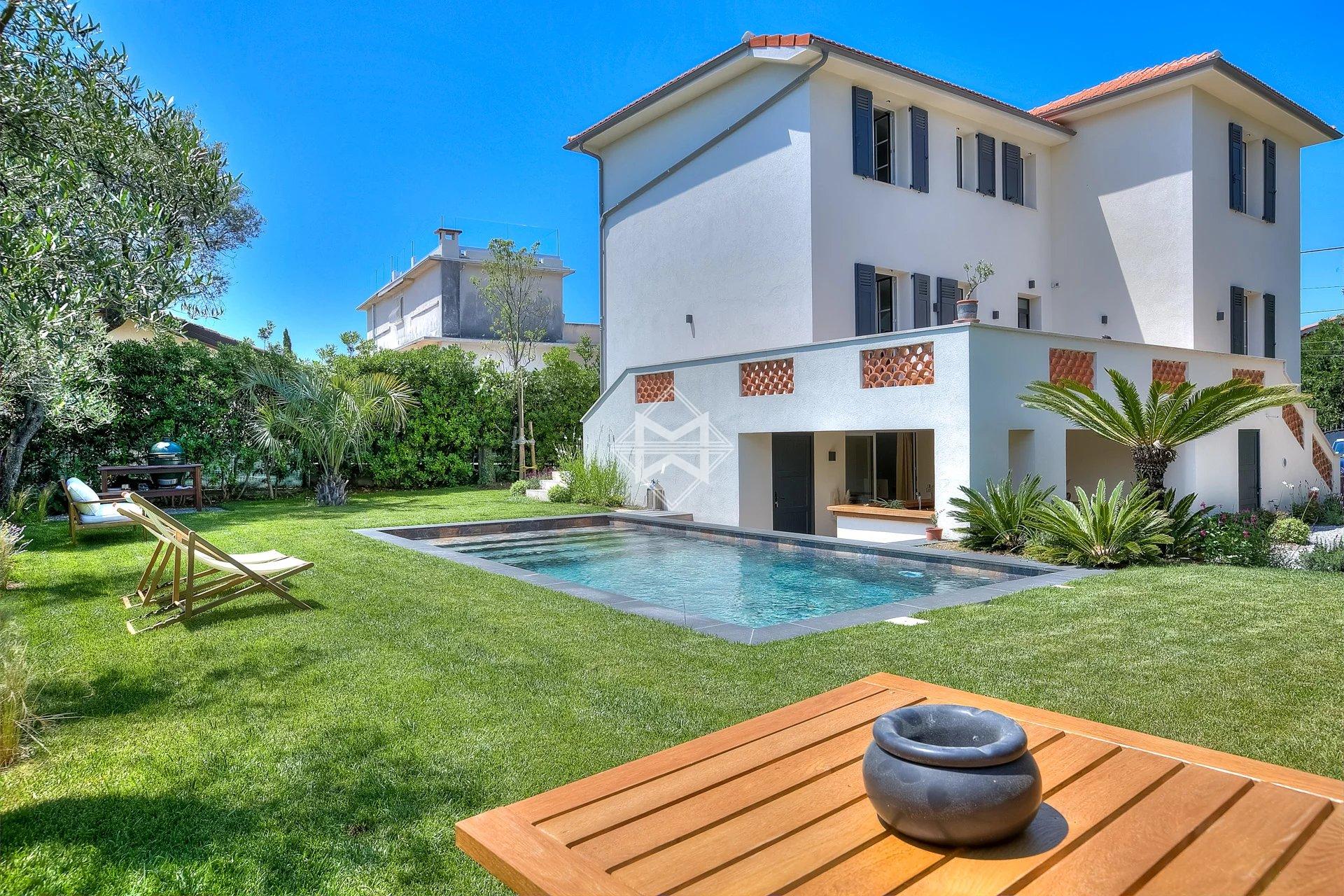 Entirely renovated villa of 200 sqm with a swimming pool and pool house on a flat garden of 700 sqm. Great location, a short walk to the beach and Juan les Pins.