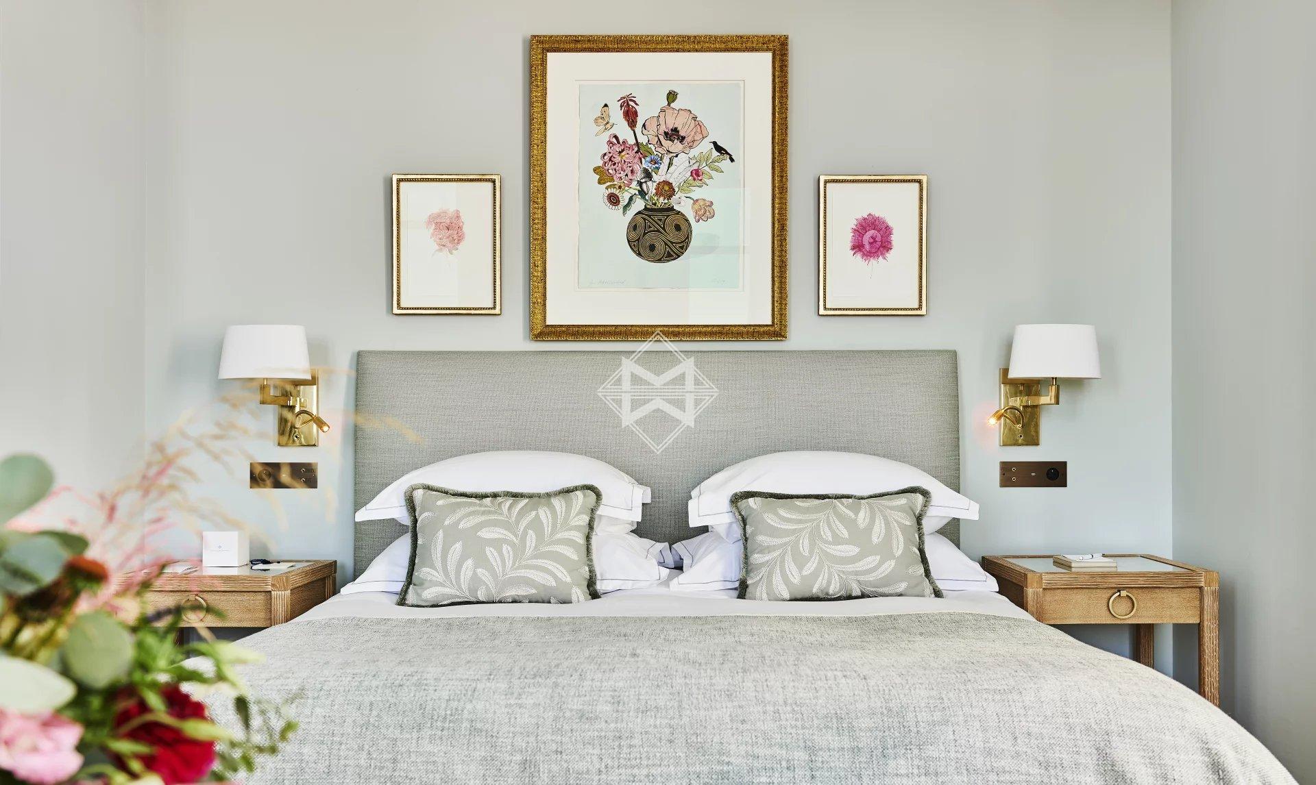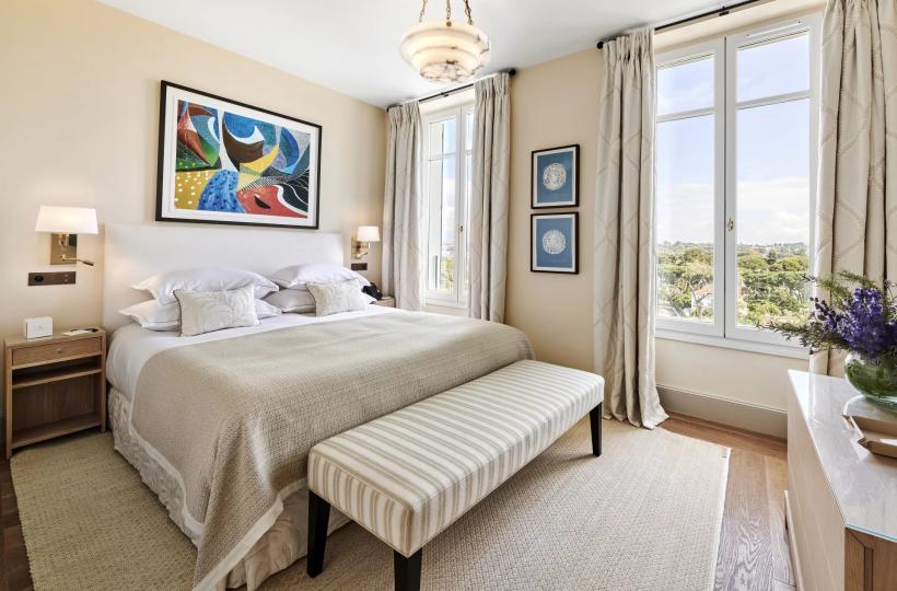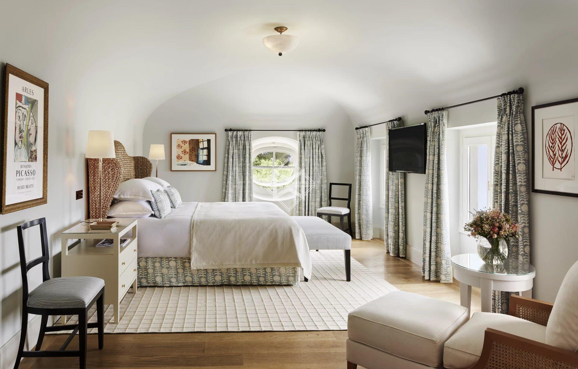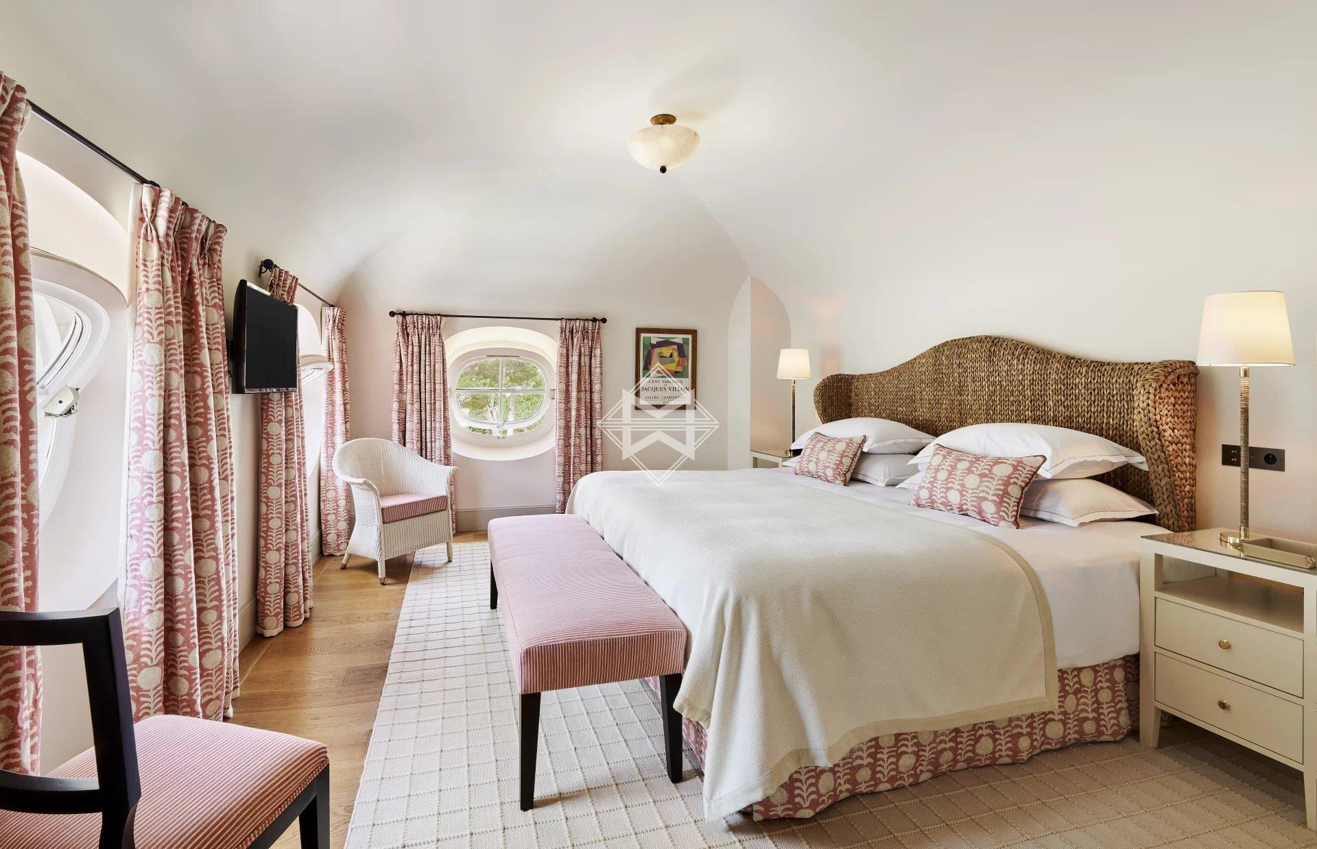 Housing a sumptuous garden and a shaded terrace, it also reveals breathtaking views of the bay of Juan-les-Pins. Inside, it includes five suites, all with a dressing room, as well as a spa with sauna, hammam and gym. It also provides all the necessary staff, including a driver and a vehicle available five hours a day and also allows you to accommodate your own team in the dedicated annex.