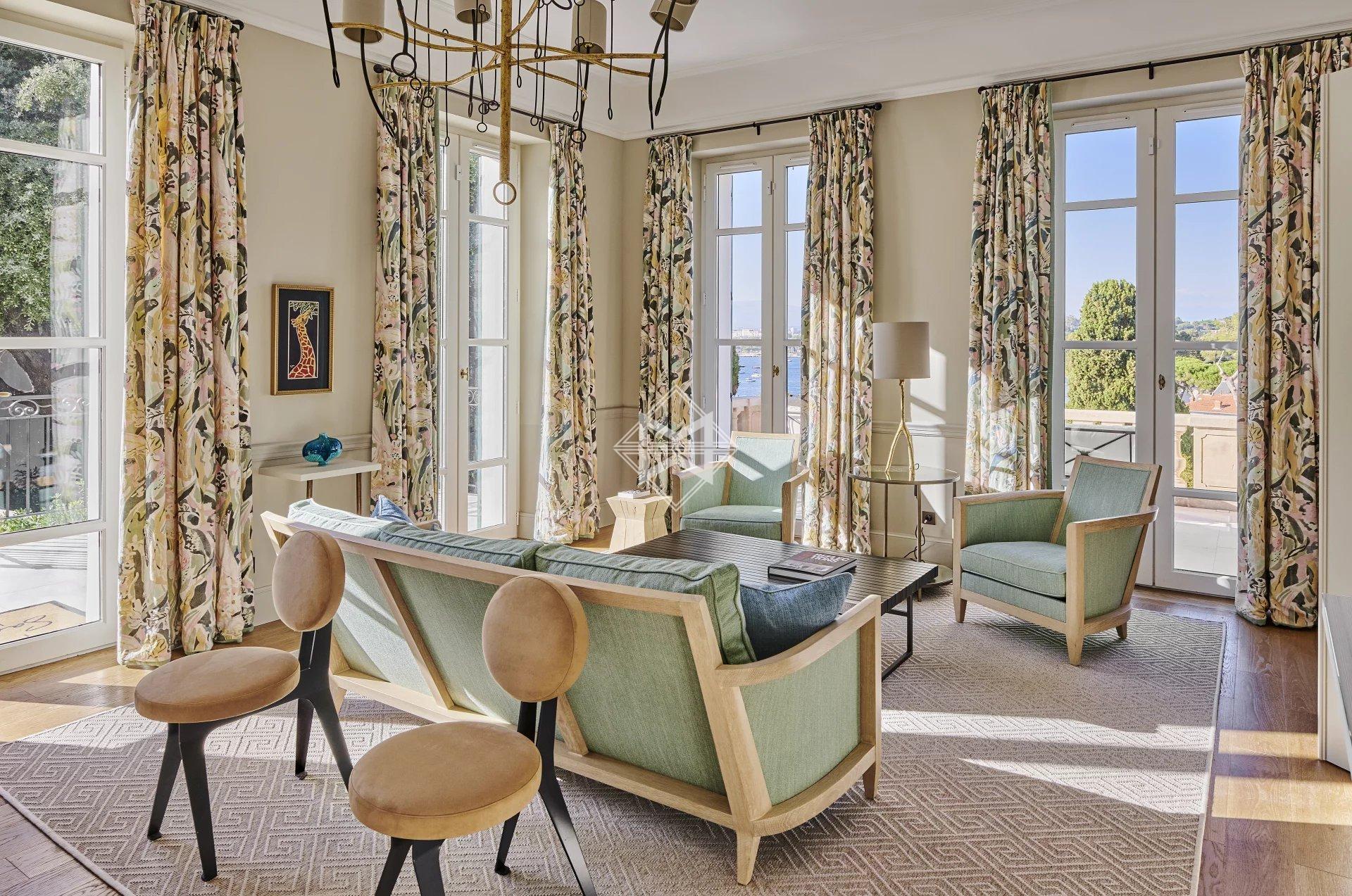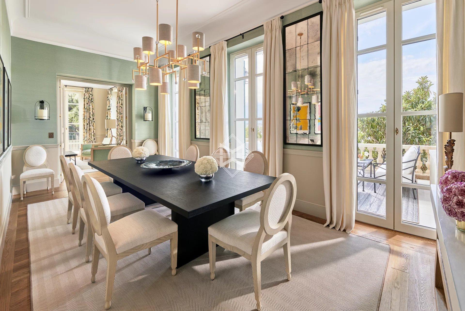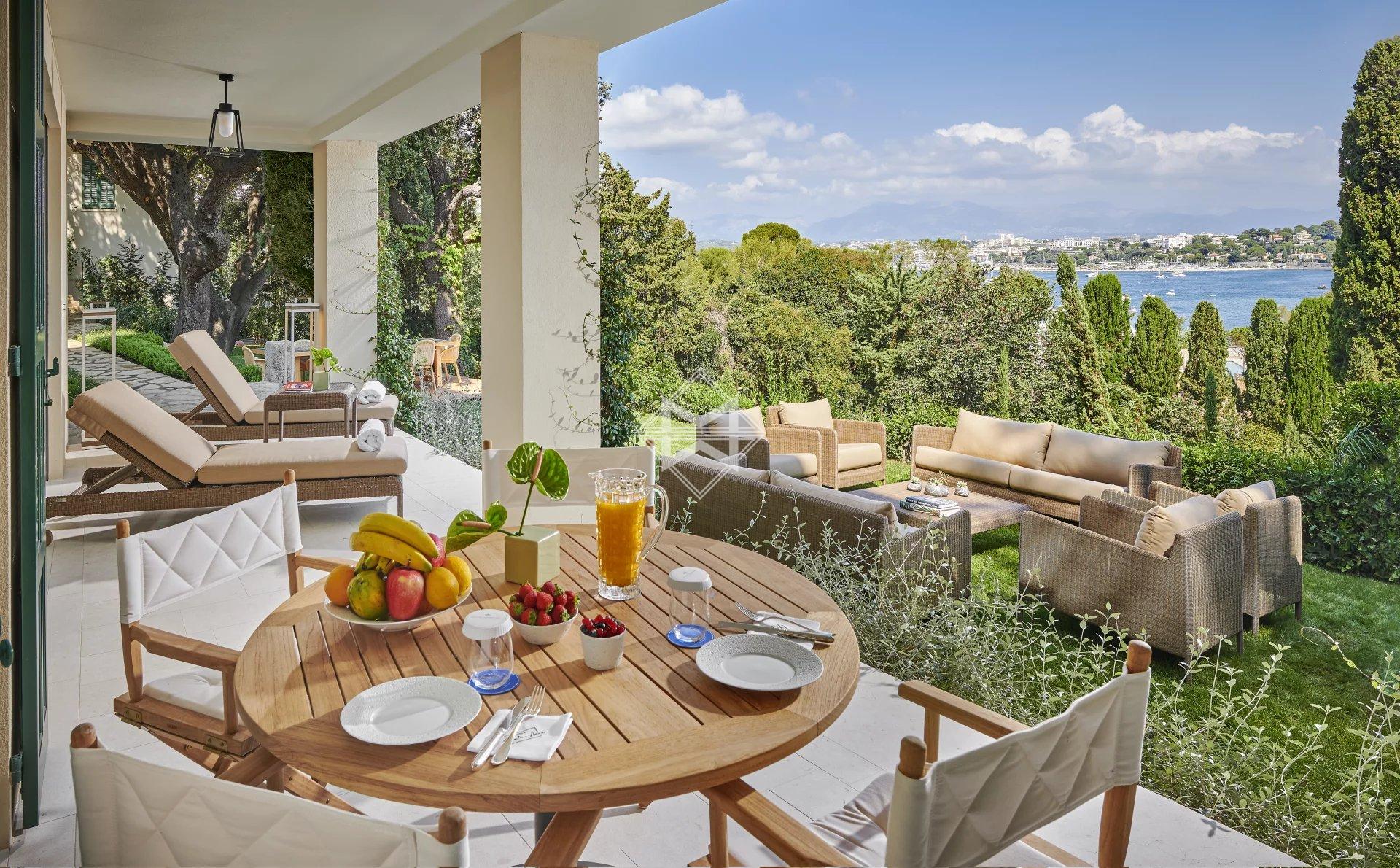 A new setting on the Cap d’Antibes. Elegant and distinguished, the Villa, dating from the beginning of the 20th century and of Italian inspiration, offers a majestic private garden and a splendid view of the Mediterranean Sea.