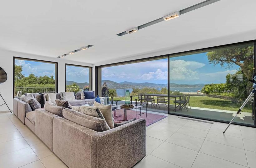 Ideal location on the doorstep of Saint-Tropez, in an ultra dominant position in the heart of a sought-after estate, beautiful modern villa with high-end amenities and an exceptional panoramic view over the sea and the village of Saint-Tropez.