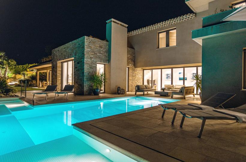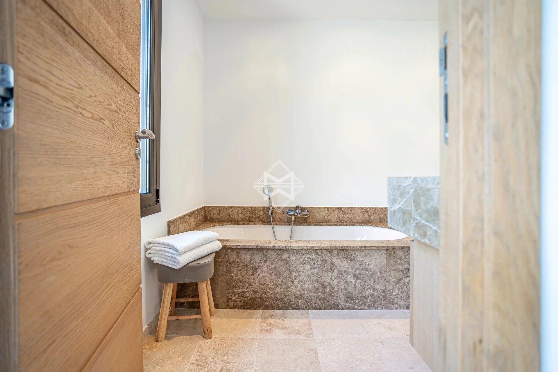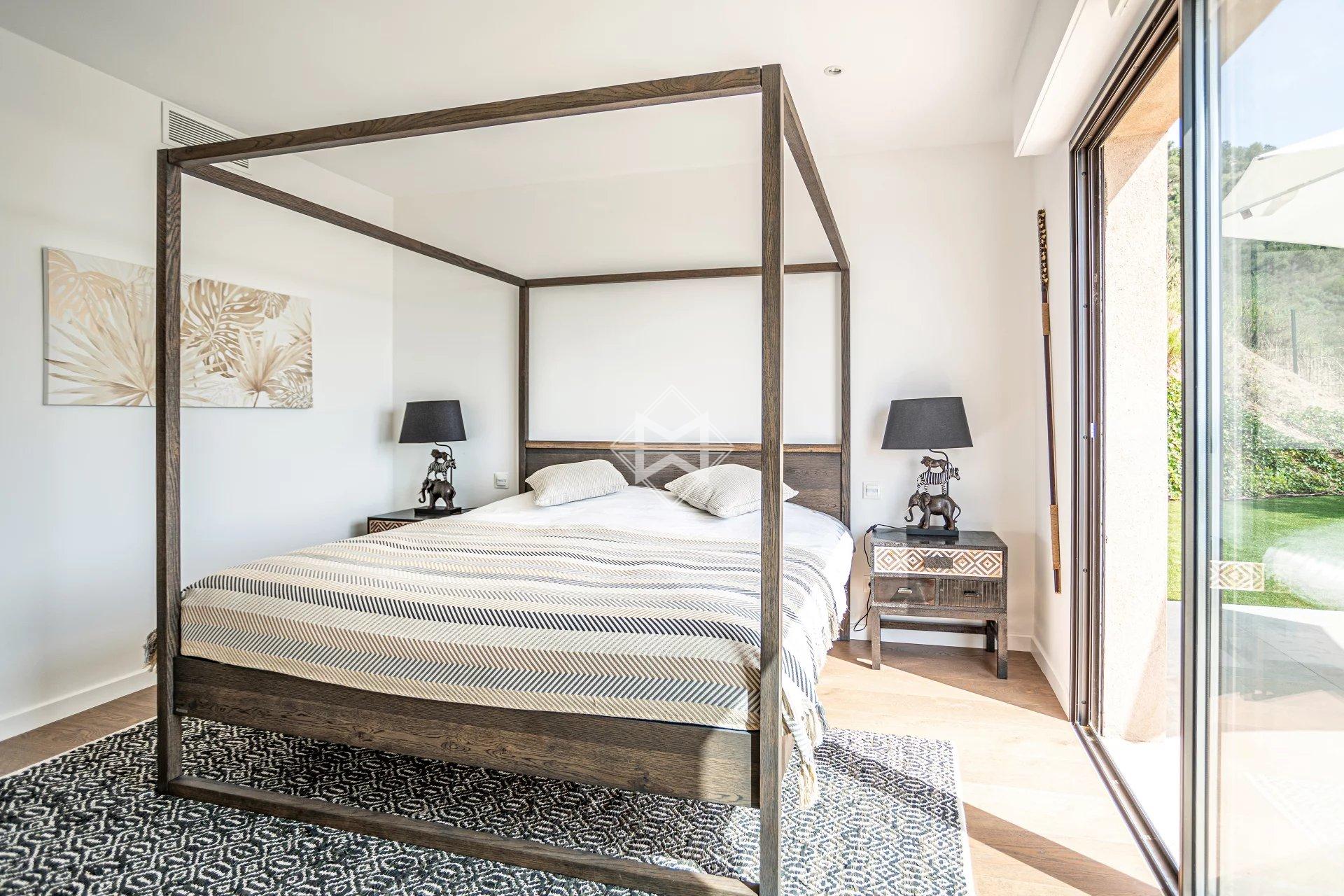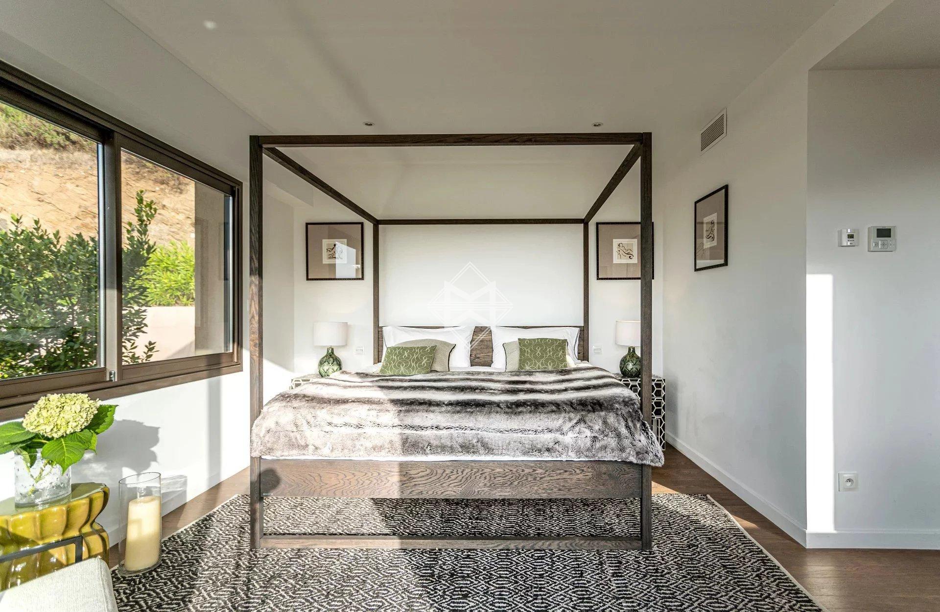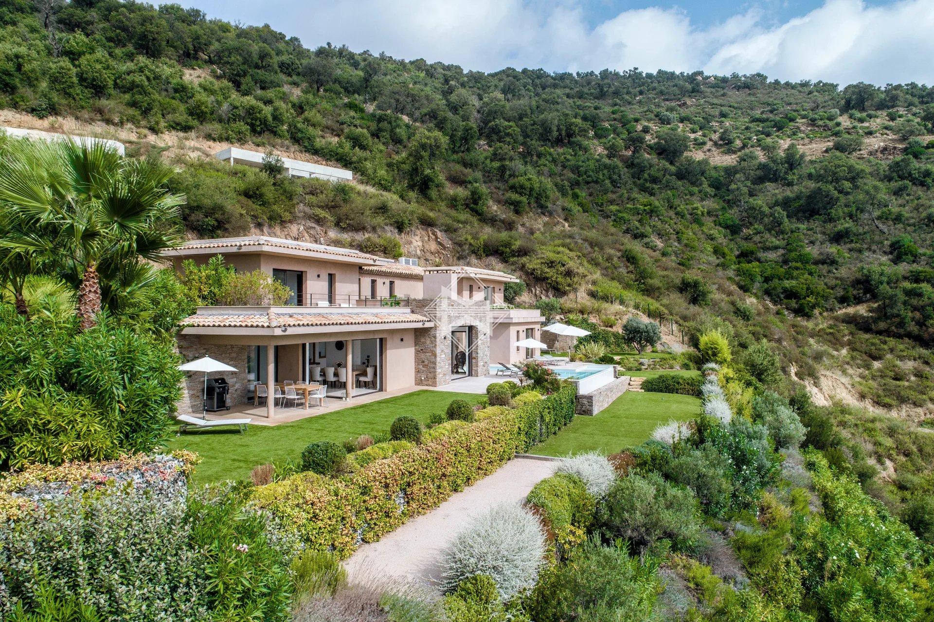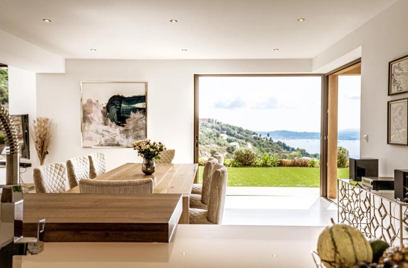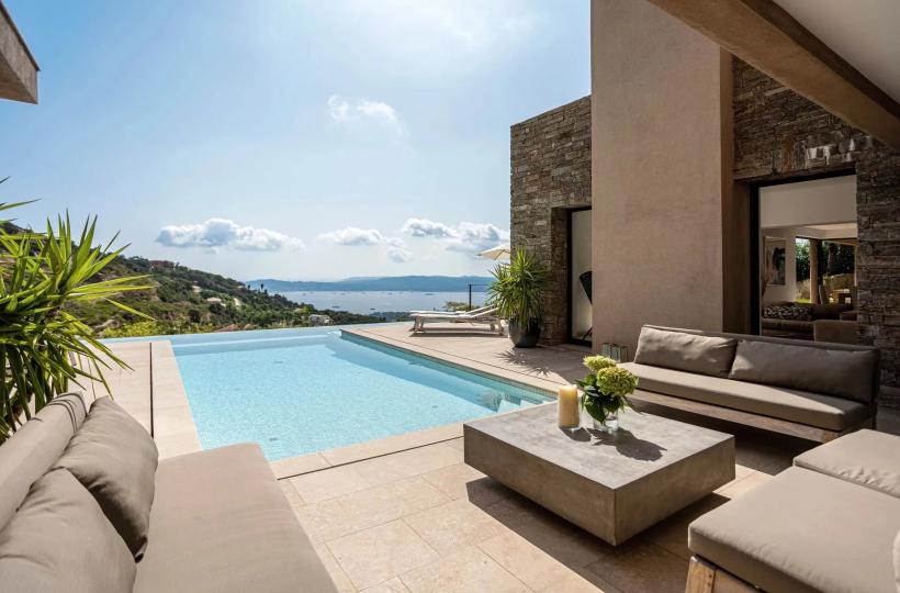 At the peak of a completely preserved hill, in a small exclusive domain of 5 prestigious villas, this splendid architect’s property, built in 2015, offers a breathtaking view of the Gulf of Saint-Tropez and the sea