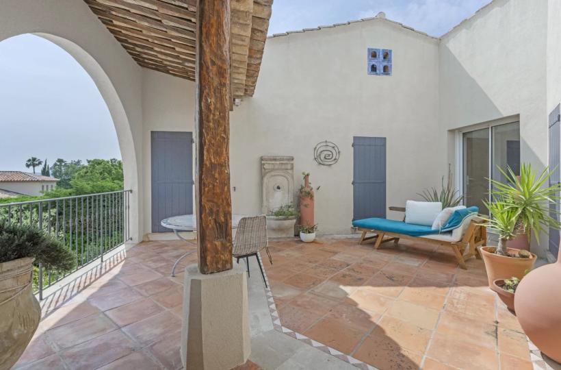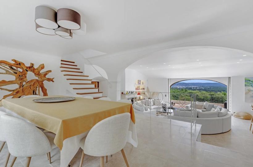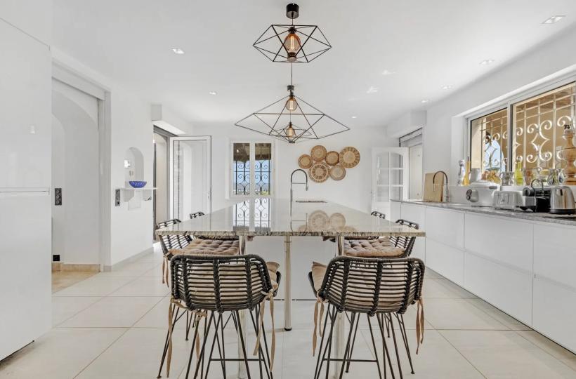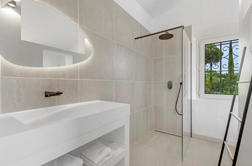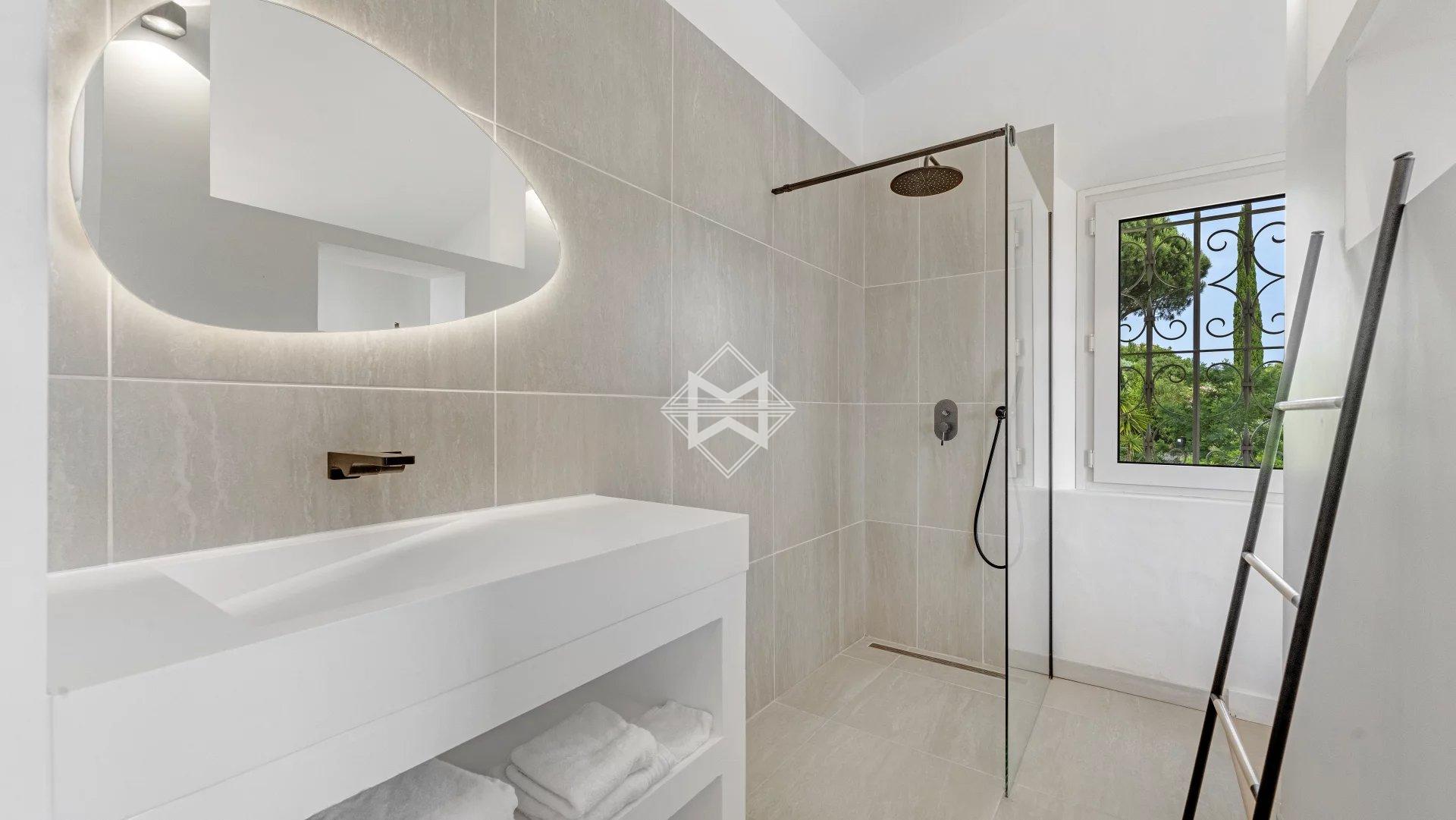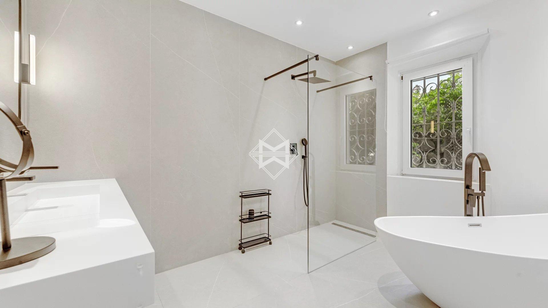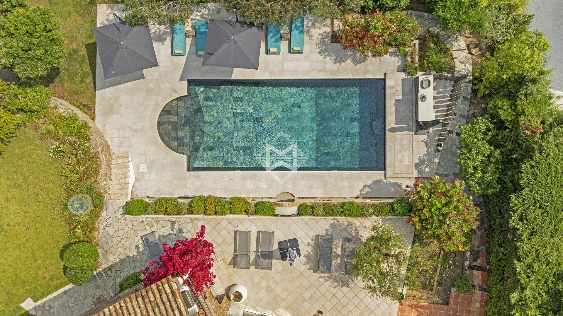 Fully renovated with high-end materials, it perfectly blends contemporary elegance with Mediterranean charm. The bright interior opens onto a spacious, clean-lined living room that extends to a shaded terrace with a spectacular view. The sleek, functional kitchen is paired with a generous dining area. On the night side, 5 comfortable en suite bedrooms — some with private terraces — offer privacy and tranquility.