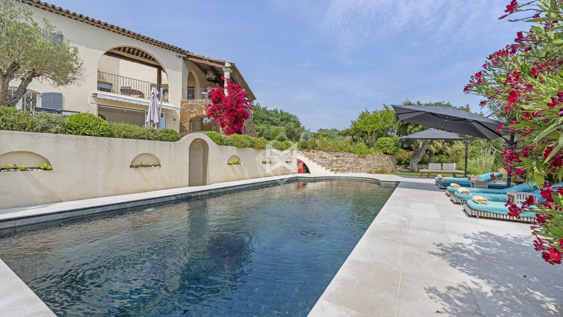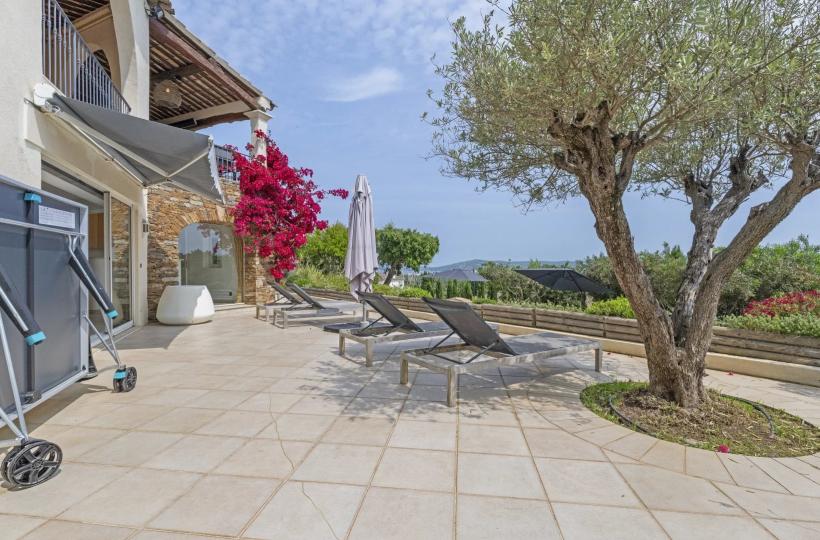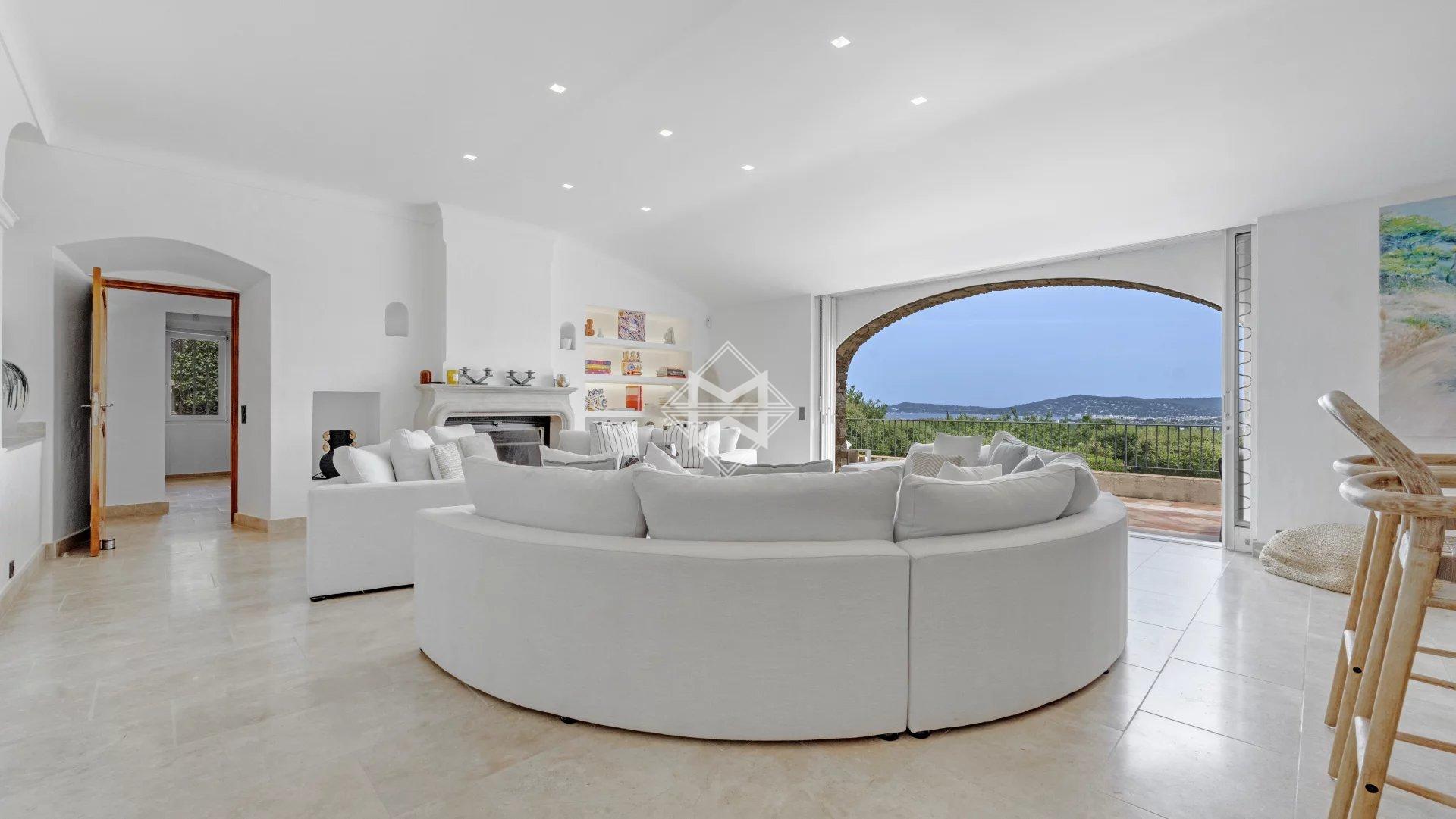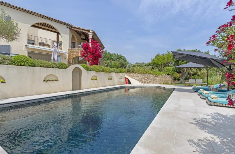 Nestled in lush greenery, this stunning Provençal villa offers a breathtaking panoramic view of the Gulf of Saint-Tropez.