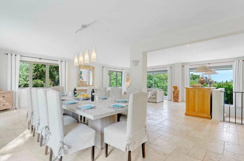 Ideally located in the Domaine de Beauvallon Bartole, this villa features six double bedrooms, each with a private bathroom, set on a beautifully landscaped 4,400 m² plot. Spread over two levels, the house offers two fully equipped kitchens, a spacious dining room surrounded by large bay windows, and two charming living rooms.