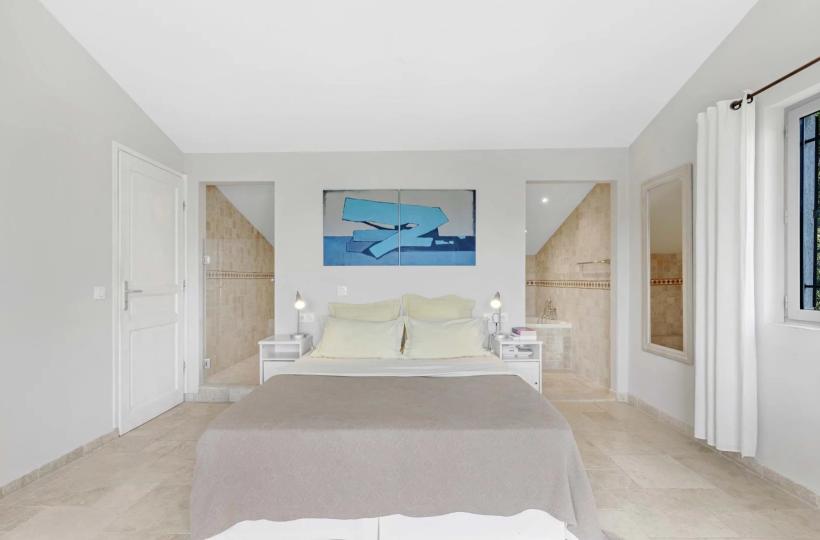 Elegantly decorated in a style that blends Provençal charm with modern comfort, the villa is equipped with air conditioning in all bedrooms. Facing east, the house is bathed in natural light throughout the day thanks to its expansive bay windows.