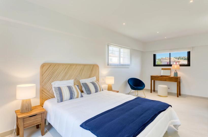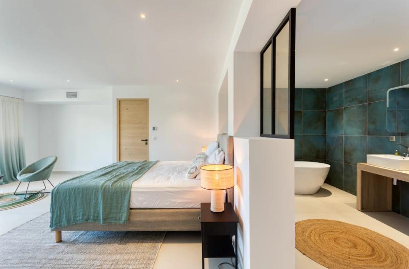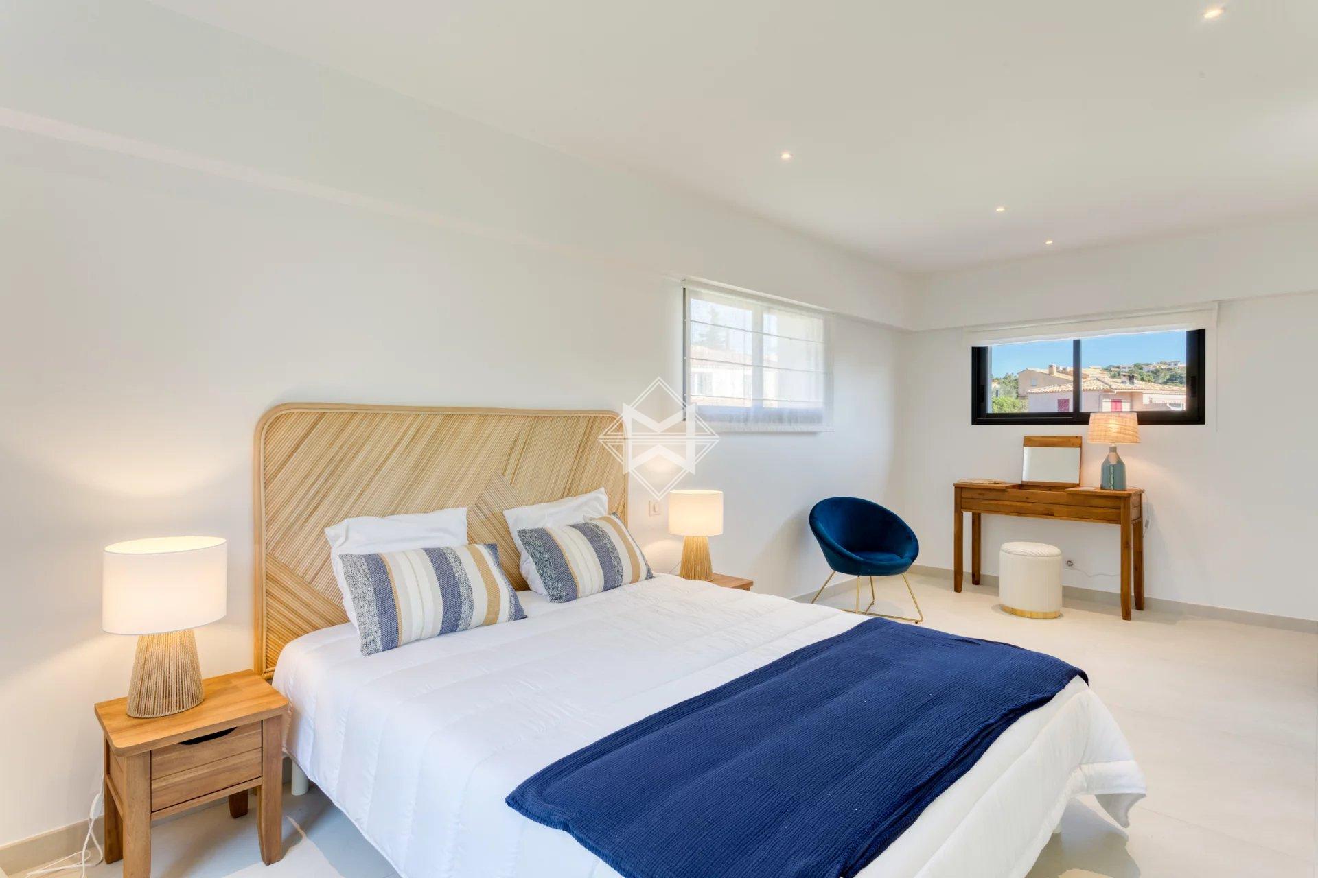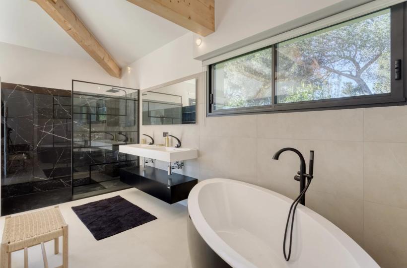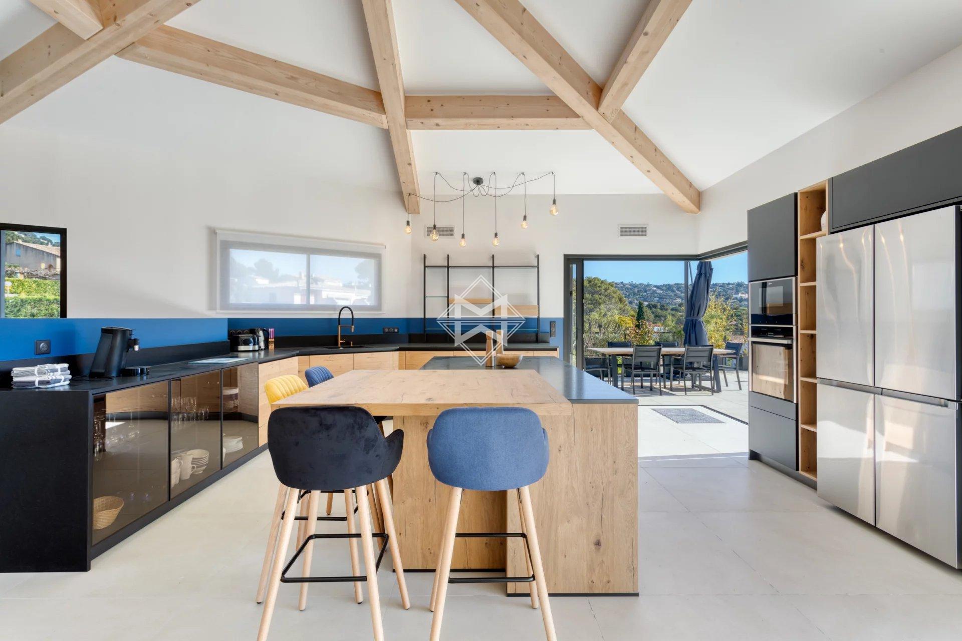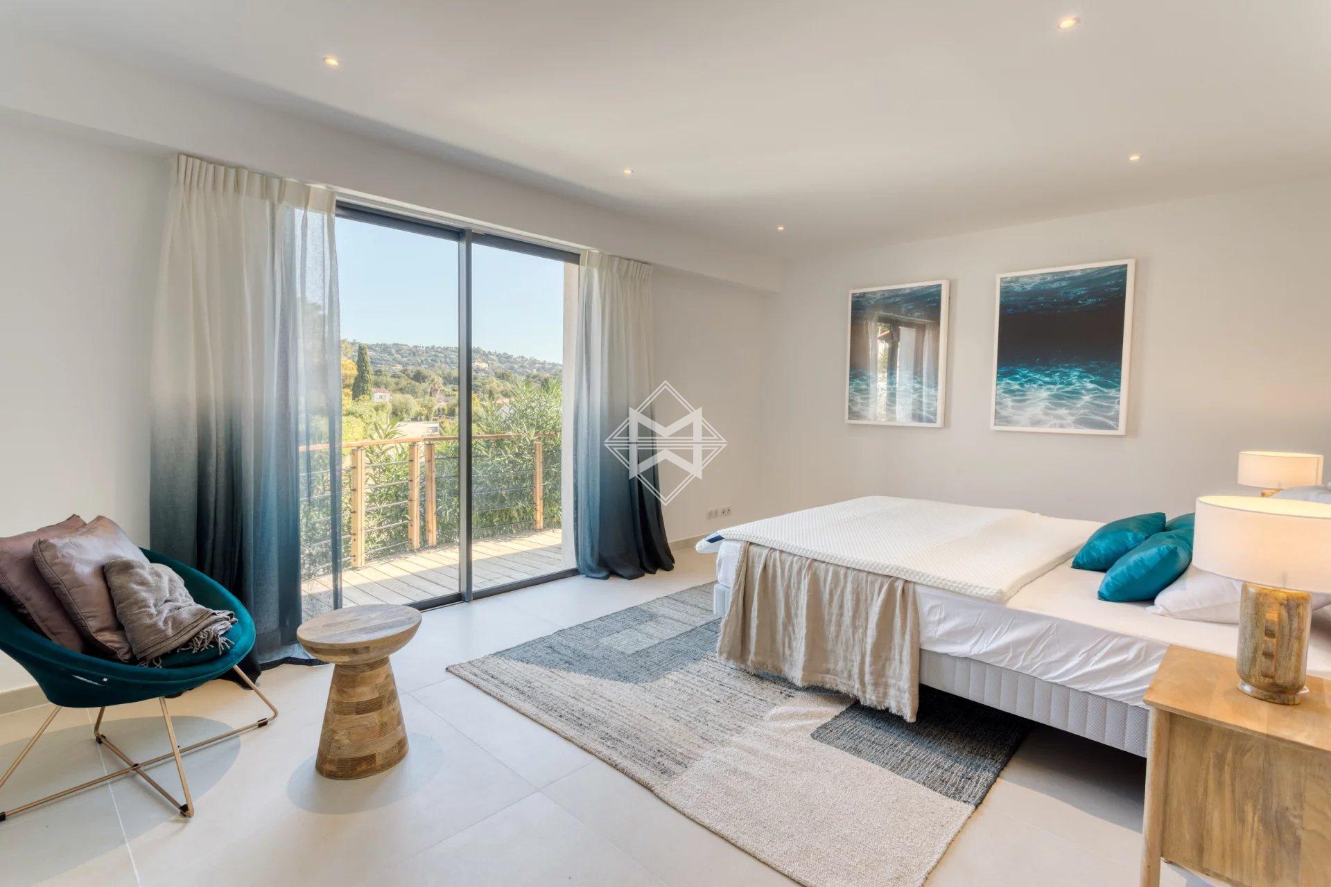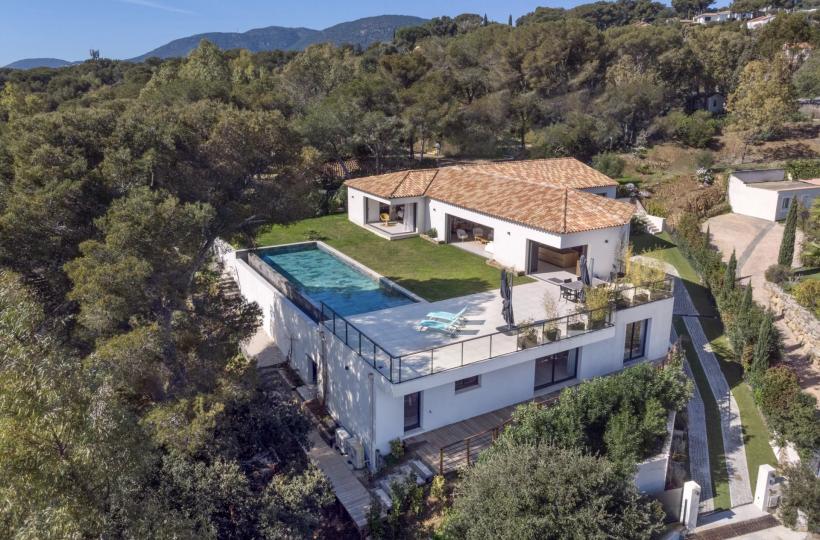 In the heart of a small, quiet estate in la Croix-Valmer, close to the beaches, modern architect-designed property enjoying a view of the sea and the vineyards.