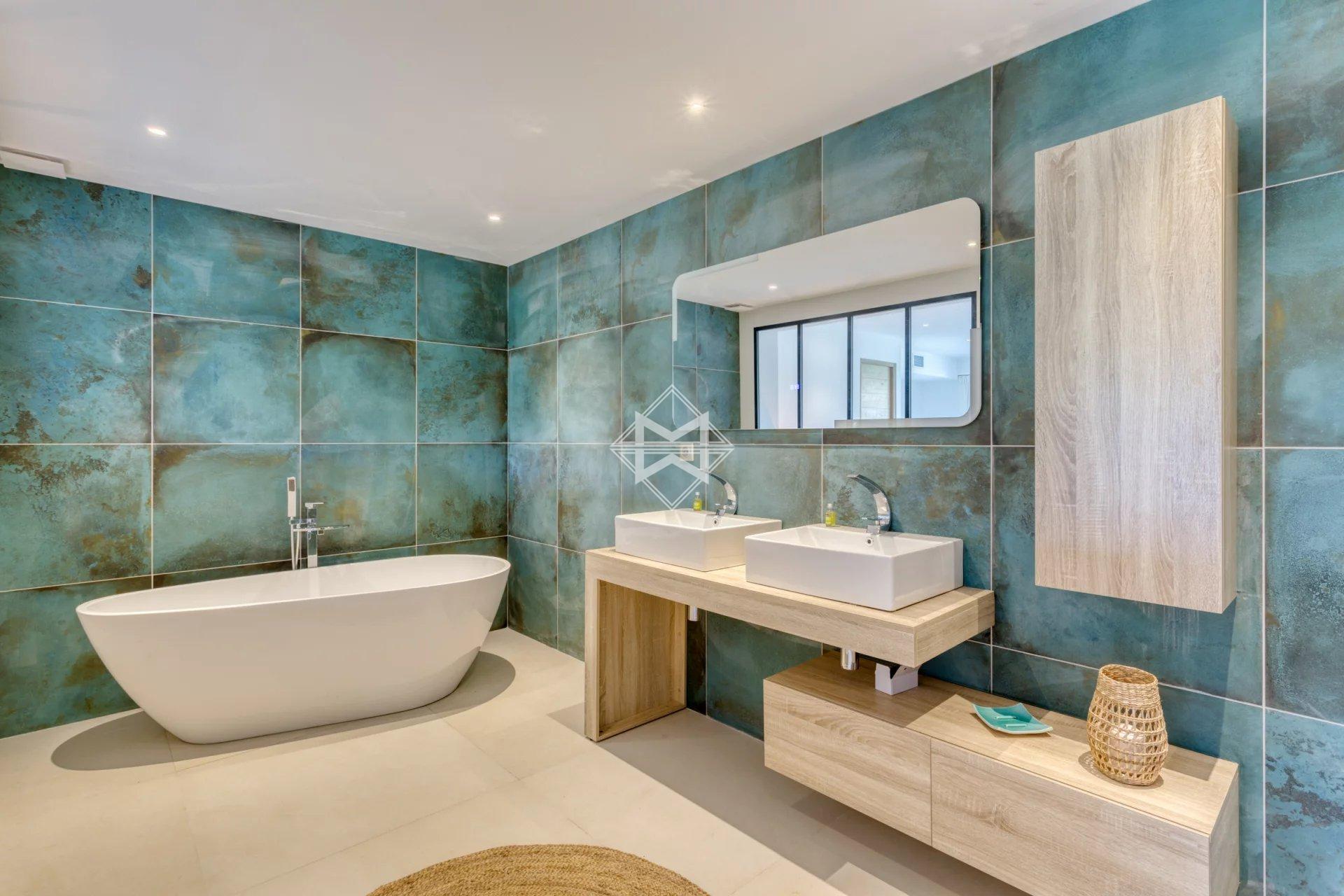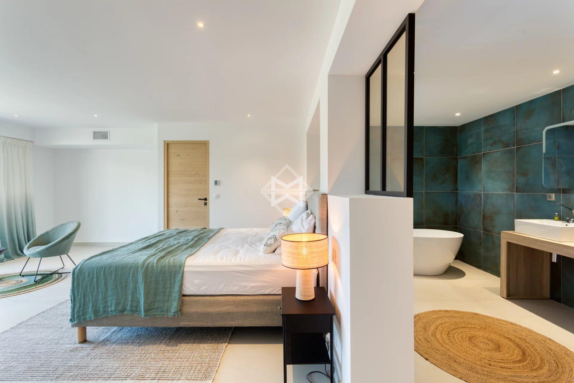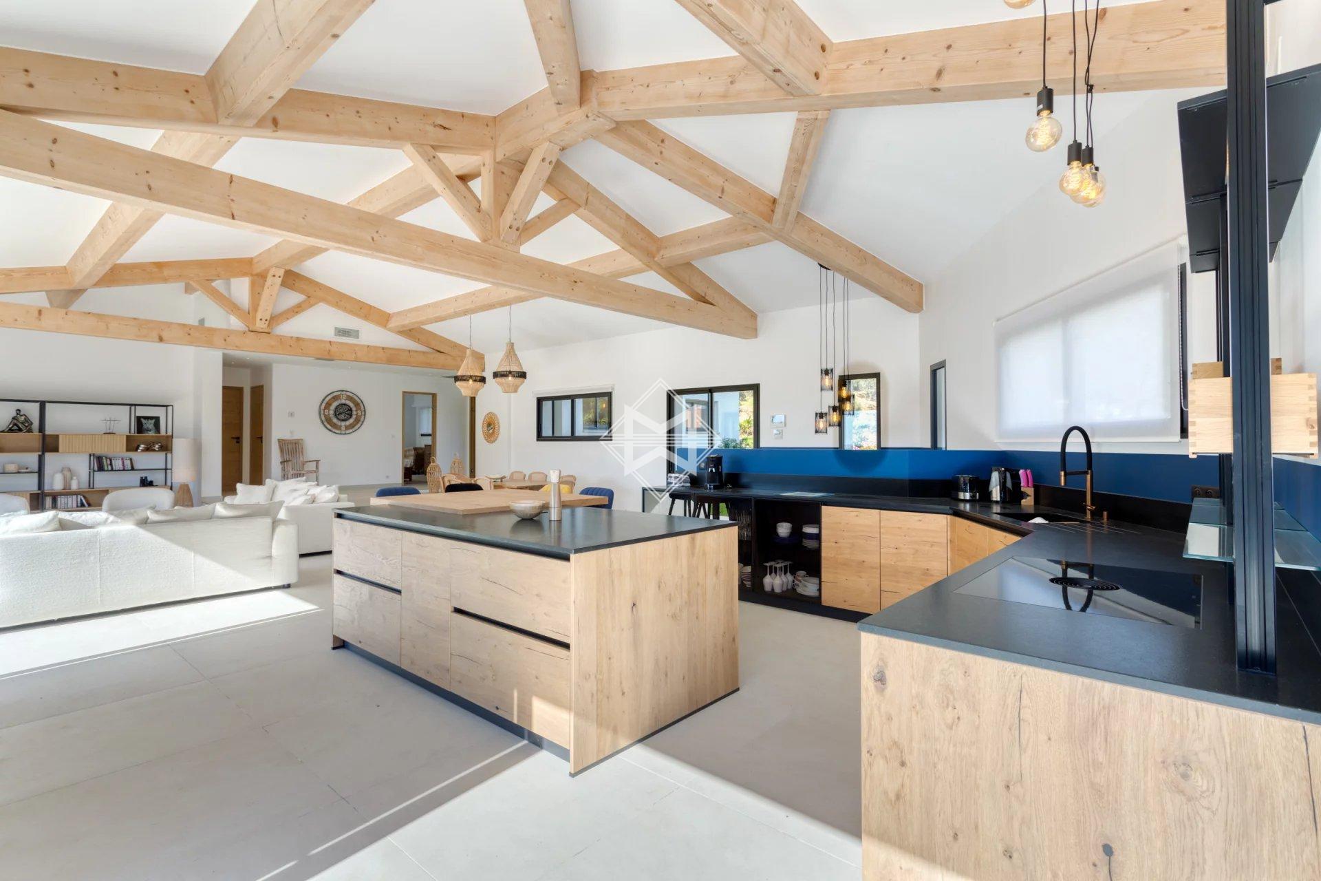 This high-end achievement has a living area of approximately 350m2 distributed as follows: on the ground floor a large and bright cathedral living room and its American kitchen opening onto the garden, 3 suites including 1 large and magnificent master bedroom.