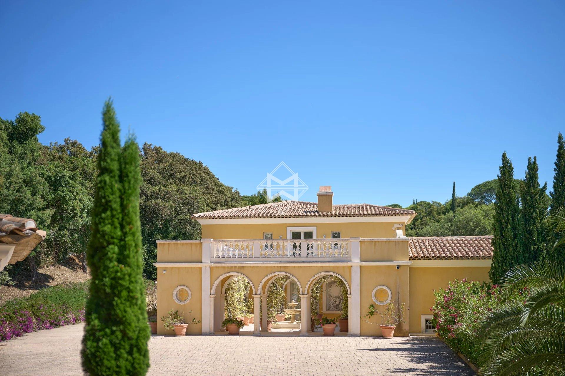 Come and experience the charm of Italian architecture in this luxurious 400m² property. Nestled on a beautifully landscaped 6 500 m² plot, this home offers absolute tranquility and stunning views of the Gigaro Bay. Ideally located, it is just a 15-minute drive from Saint-Tropez and Pampelonne beaches, with easy access to Gigaro Beach and only a 5-minute walk from Sylvabelle Beach.