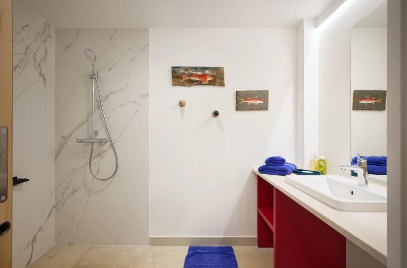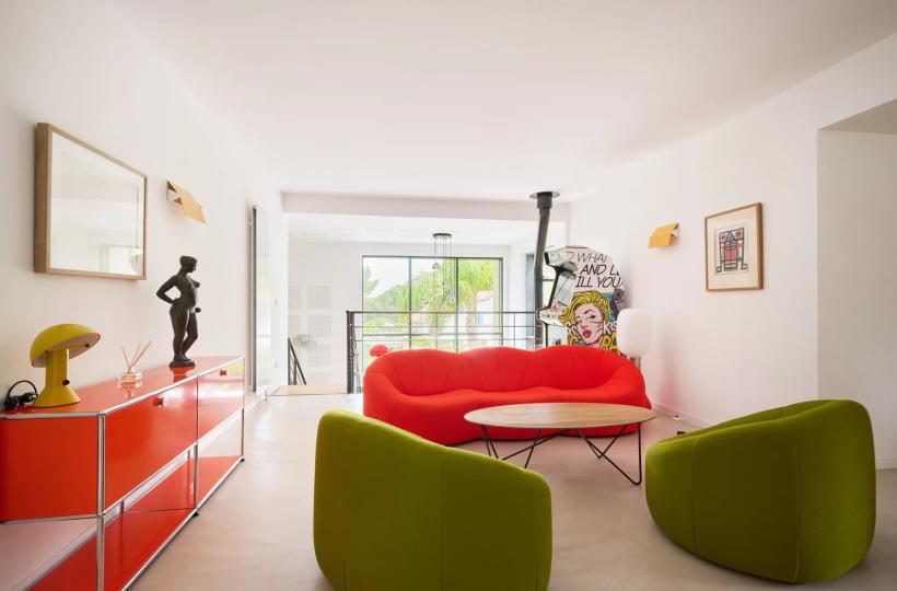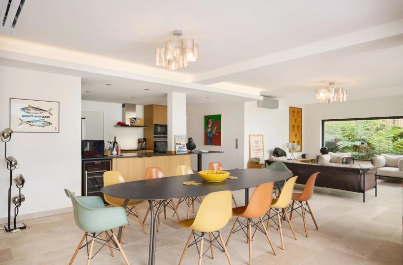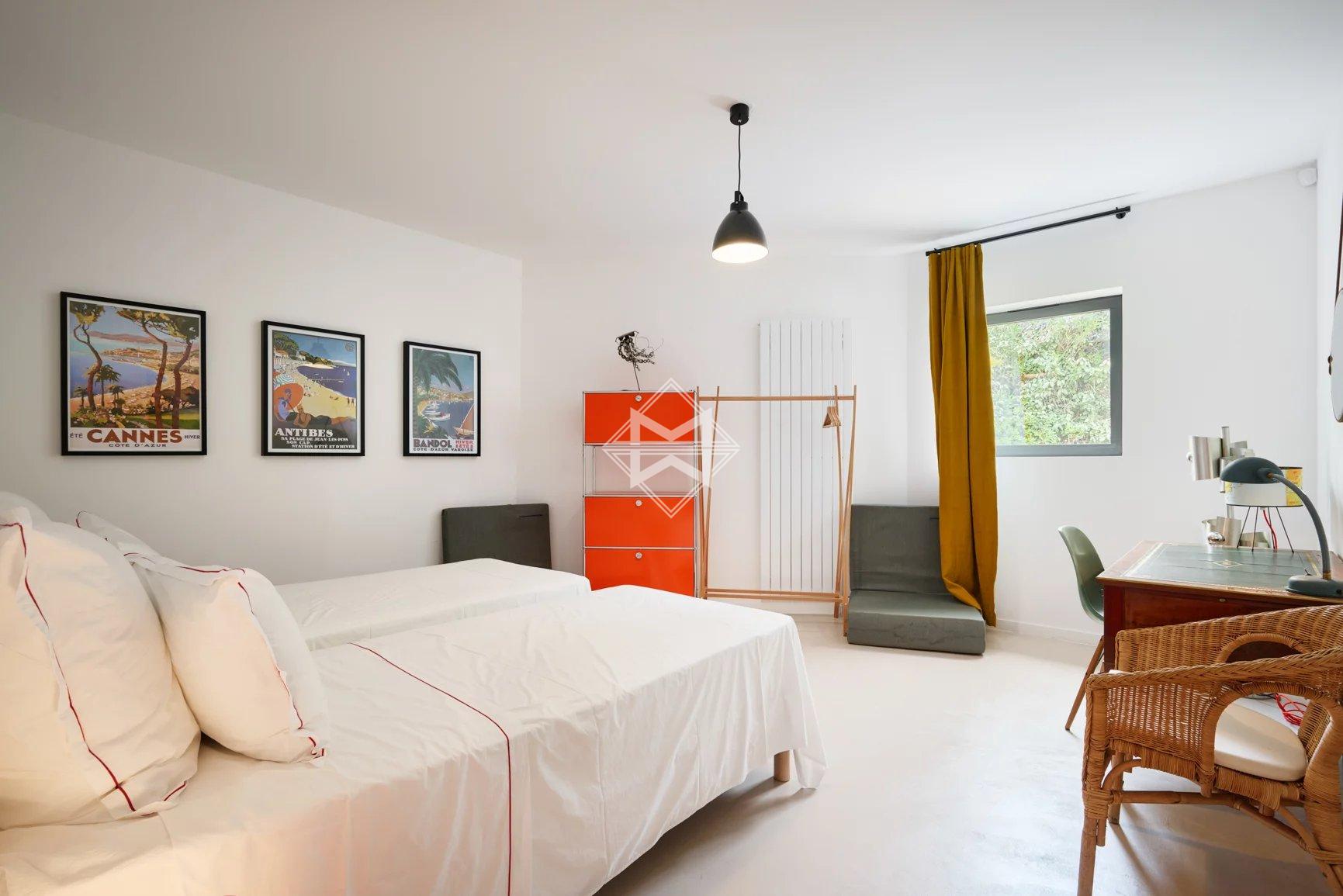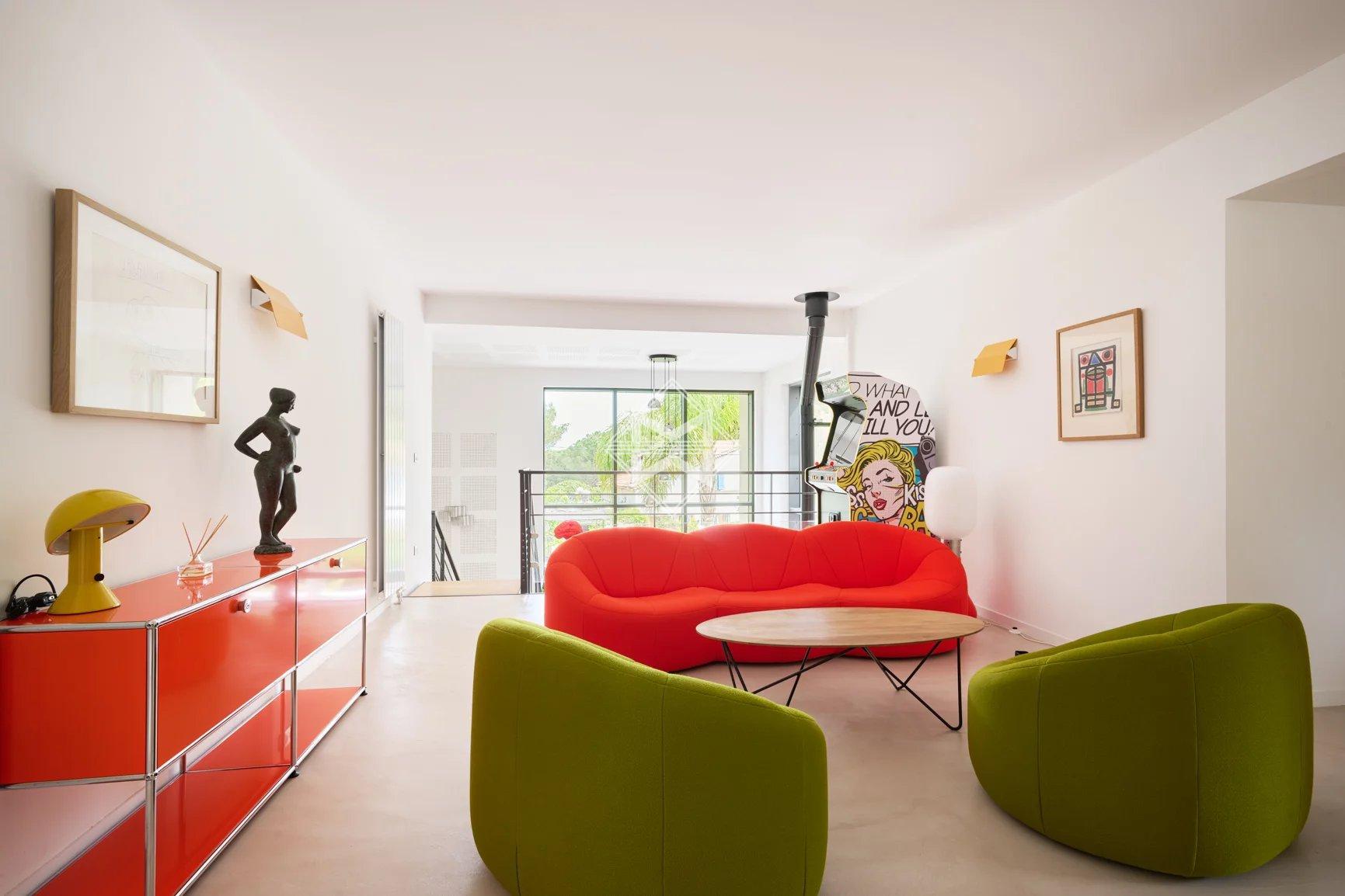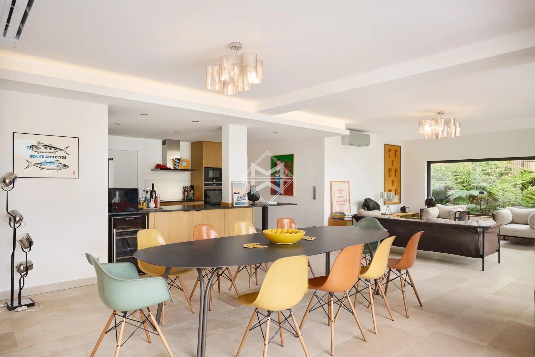 This contemporary villa, elegantly decorated, offers high-end amenities. It notably comprises 5 bedrooms upstairs, including one on the ground floor with access for reduced mobility individuals. Its spacious, light-filled living areas open onto a sunny terrace.