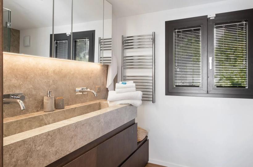 - Bedroom 5: master suite with dressing room, bathroom and shower, WC, sea-view lounge and private terrace