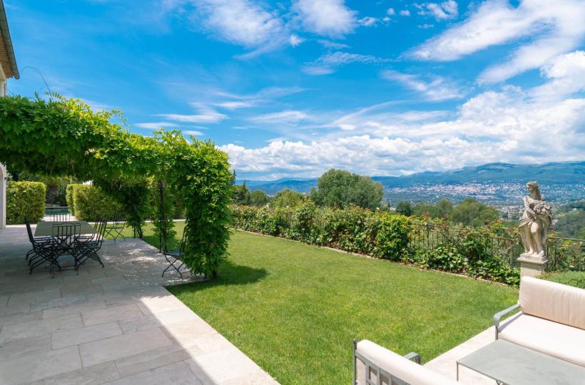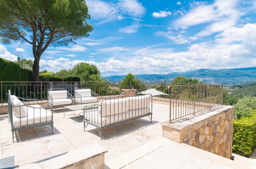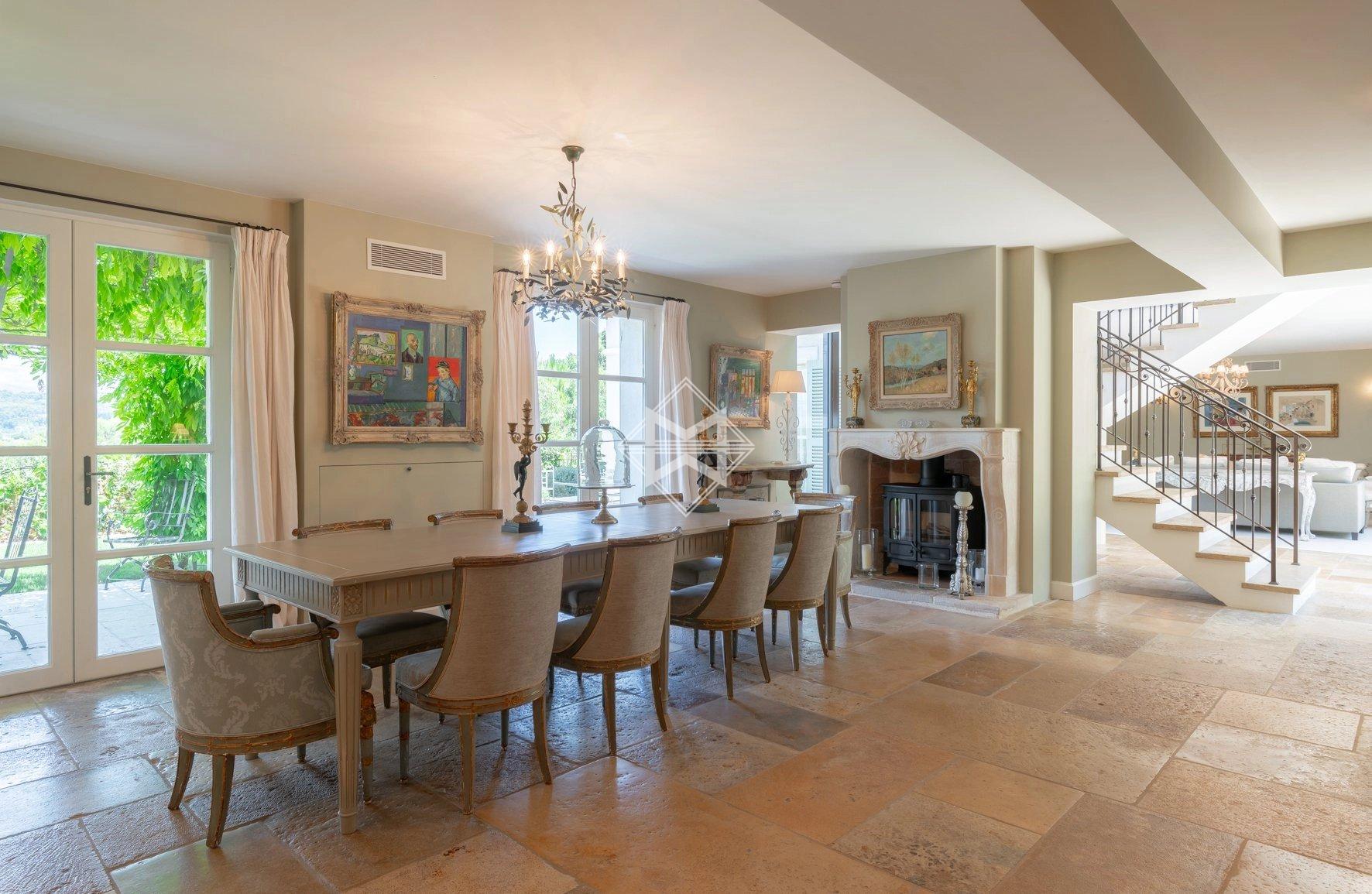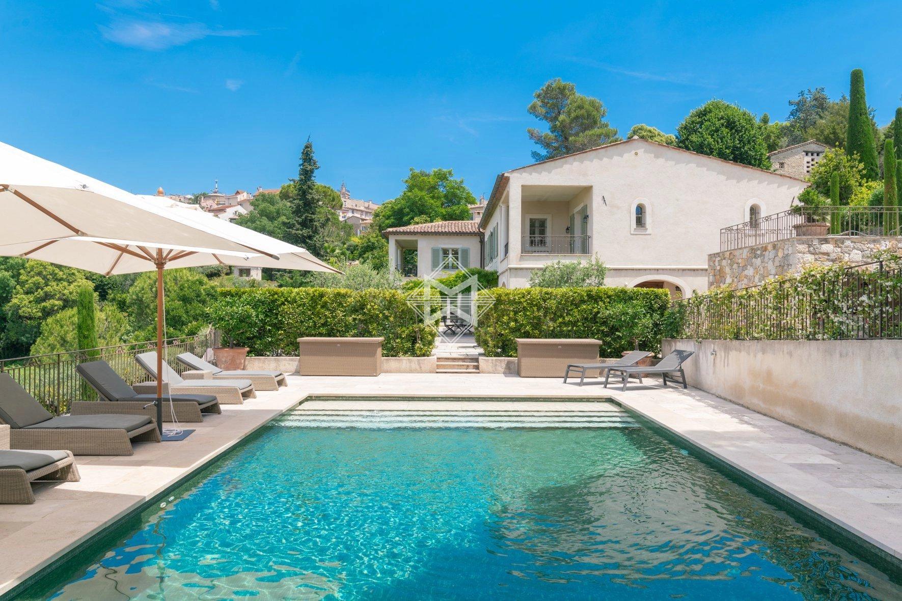 Situated only a few minutes from the famous village of Mougins, this superb villa of approx. 450sqm is tastefully decorated in a modern Provencal style and offers a high level of comfort. The property benefits from a panoramic view of Grasse and its heights.