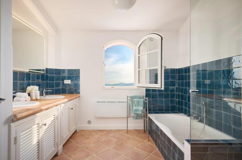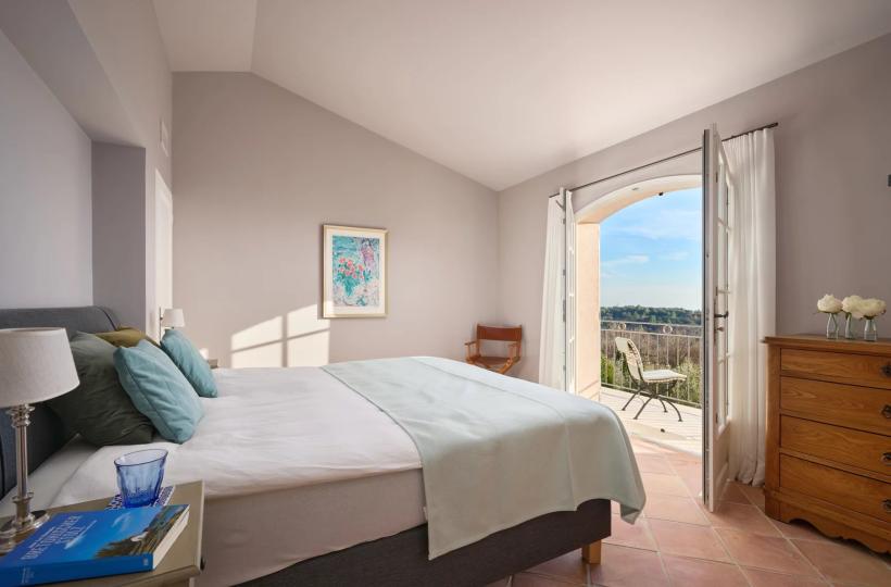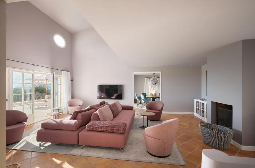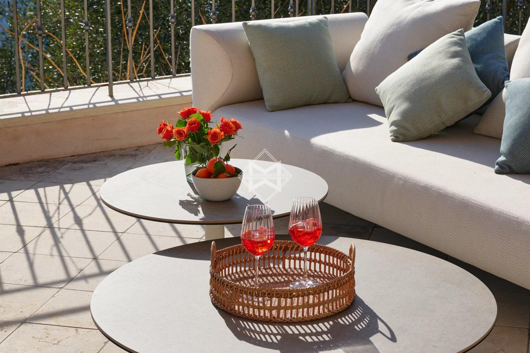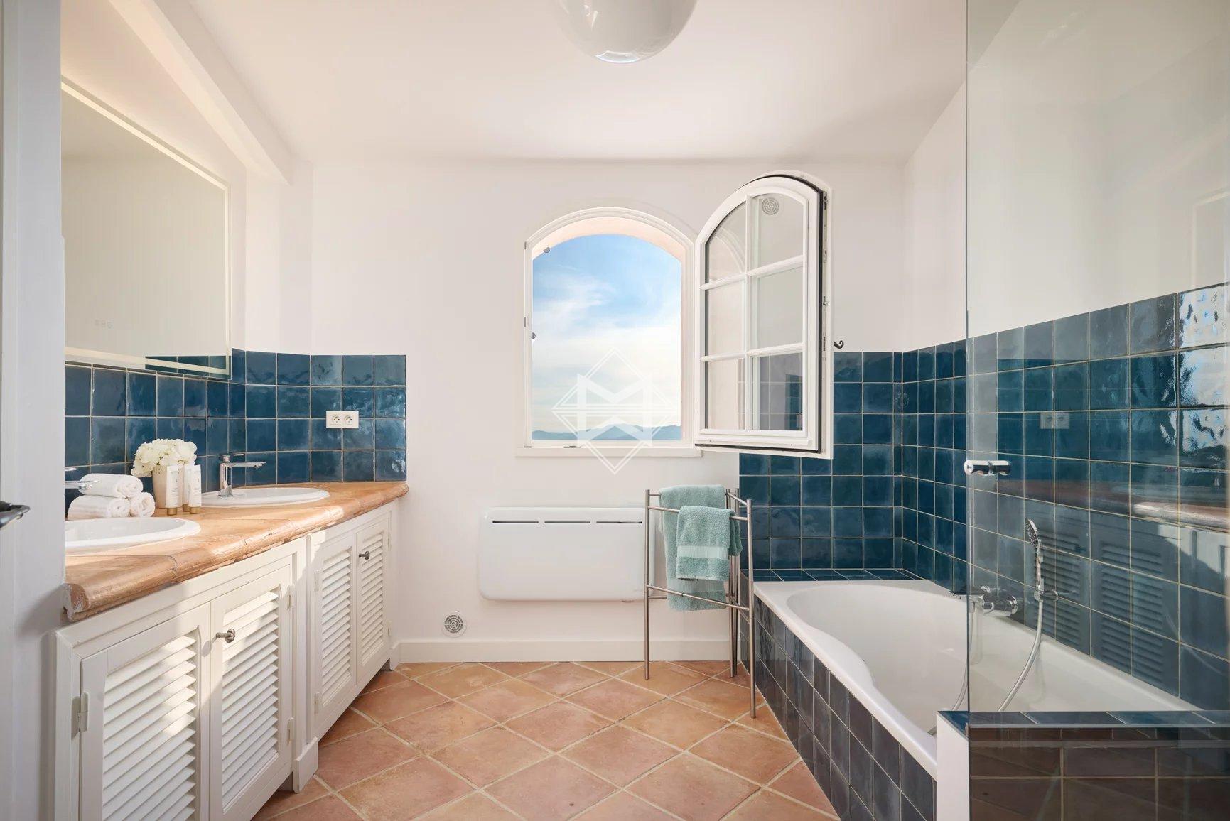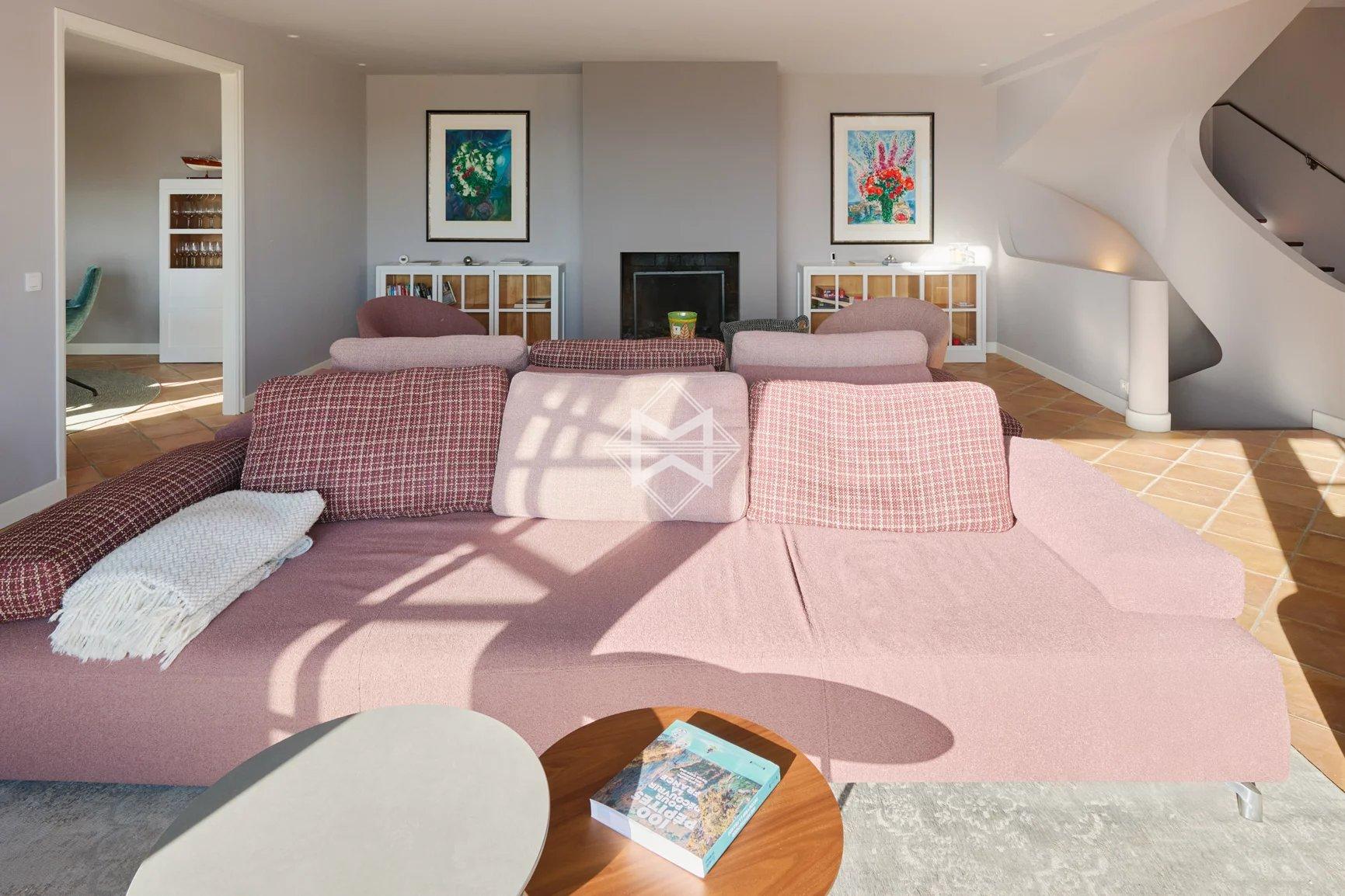Perched on the hills of Chateauneuf and facing full South, this delightful Provençal villa offers exceptional sea views from Cap d'Antibes to Théoule.