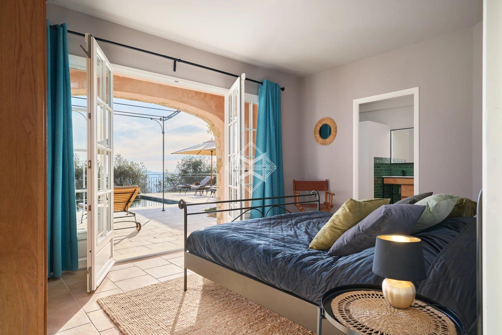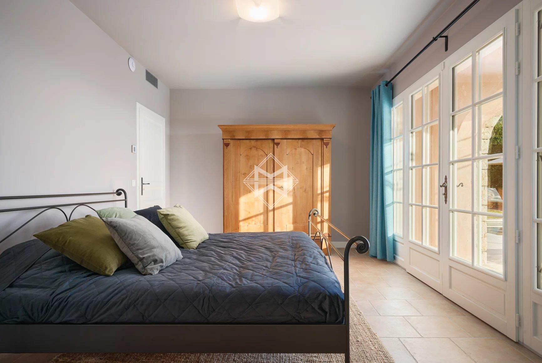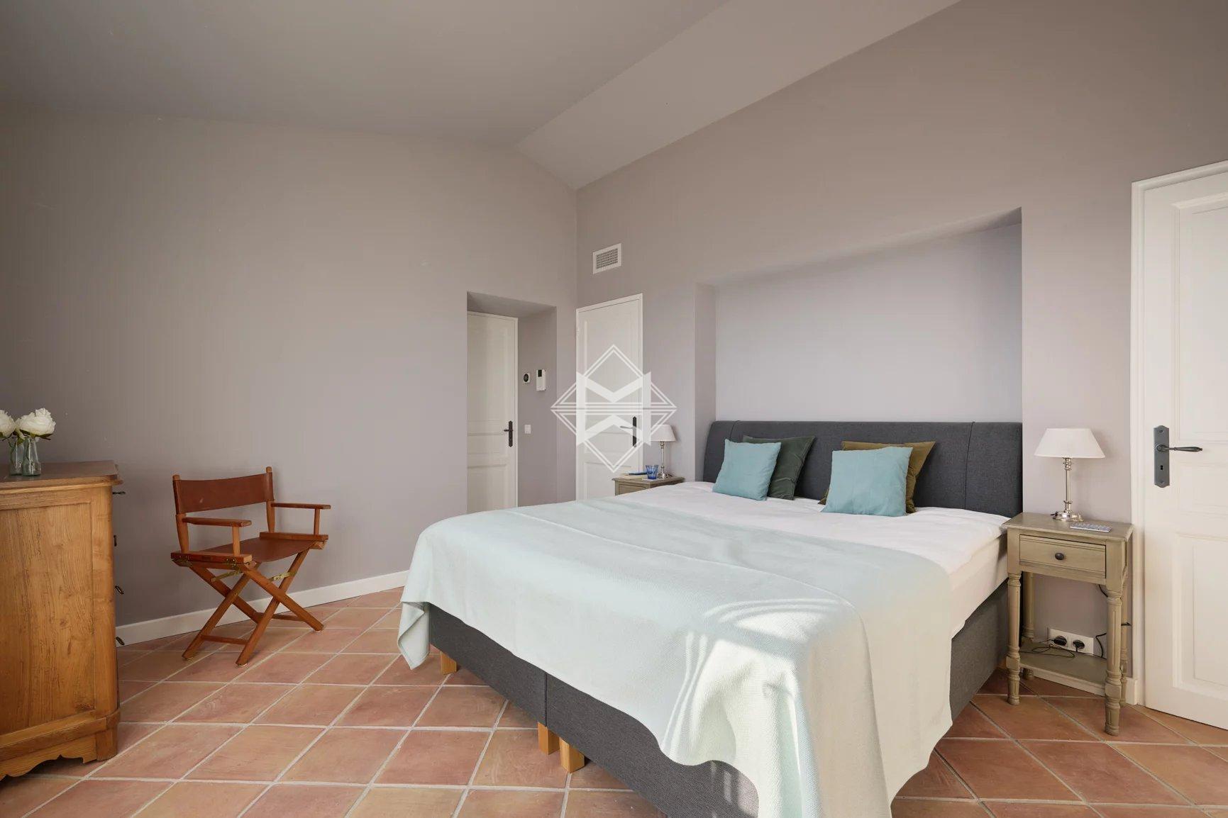 Freshly renovated, the property features everything you could imagine for an unforgettable holiday: 6 en suite bedrooms (3 bedrooms in the main villa, 1 independent bedroom, 2 large studio apartments in the annexe), a sports room, a very large living room with wide windows, a beautifully equipped kitchen extended by a covered terrace with barbecue for cosy evenings with friends, and a magnificent heated and cooled infinity pool with fitted pool house. The villa and the 2 outbuildings are fully air-conditioned and have an alarm system. Many parking spaces.