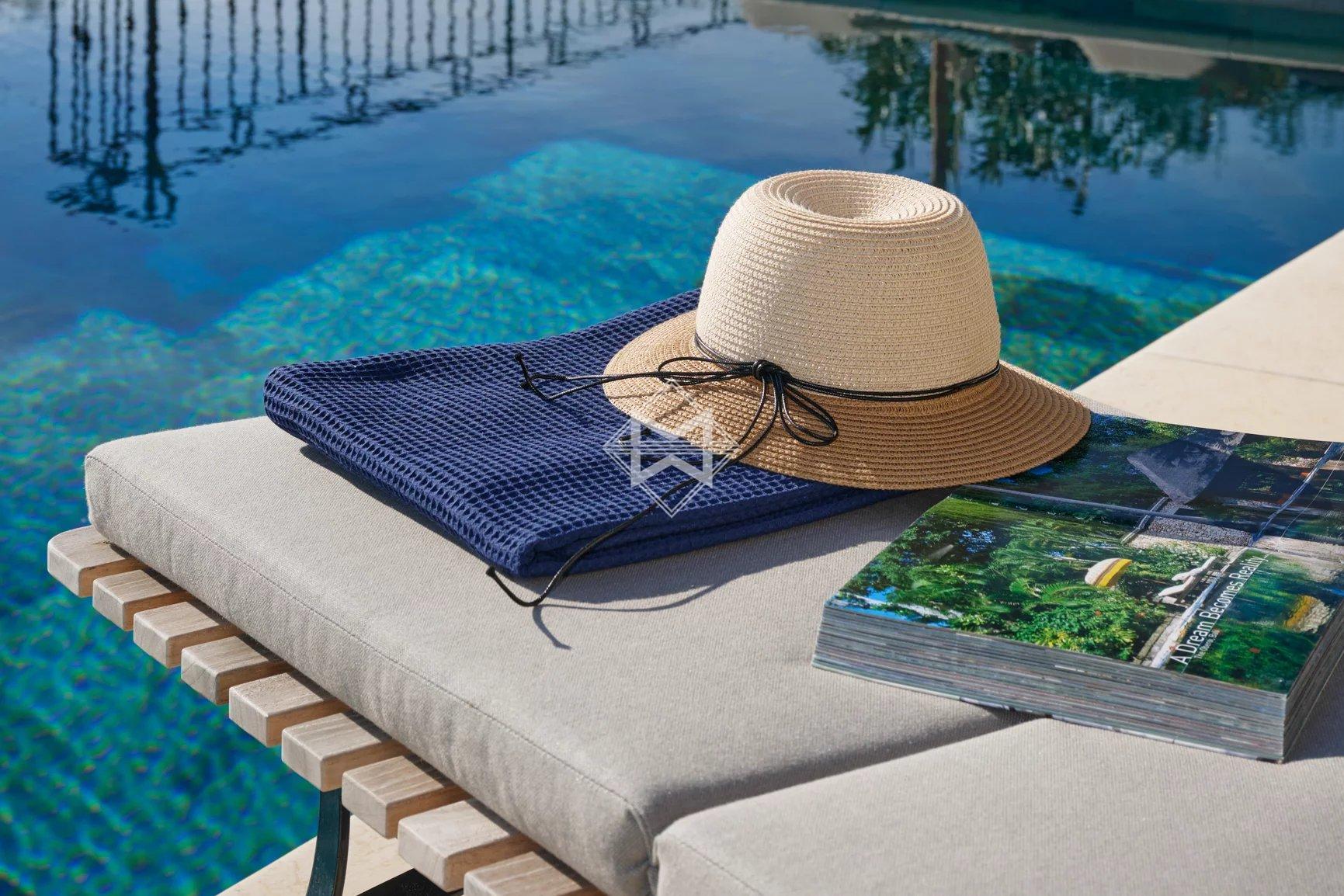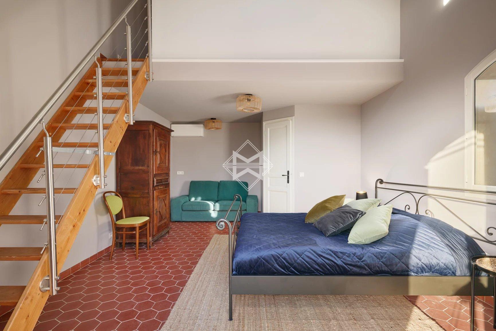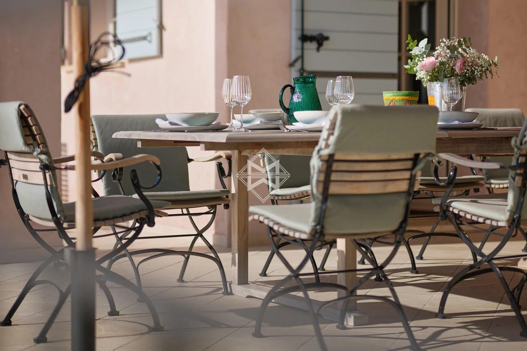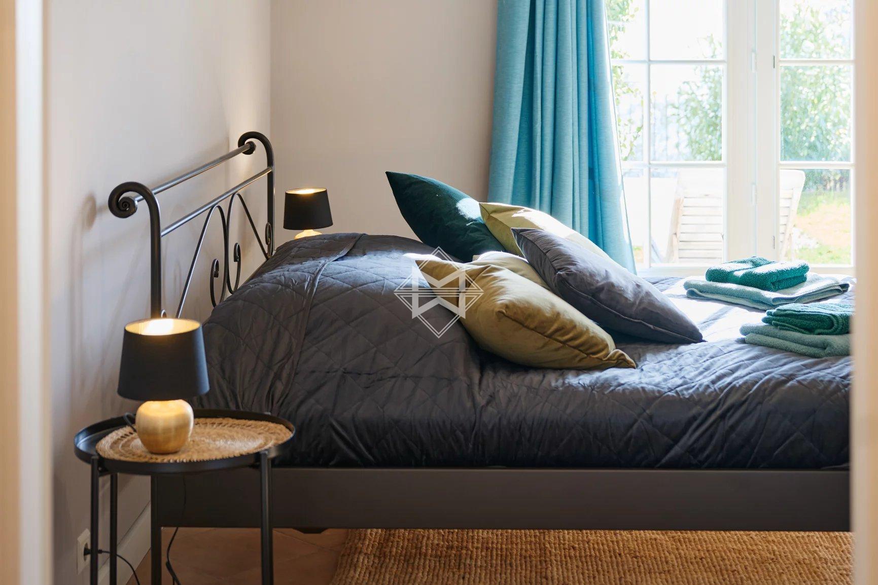 Freshly renovated, the property features everything you could imagine for an unforgettable holiday: 6 en suite bedrooms (3 bedrooms in the main villa, 1 independent bedroom, 2 large studio apartments in the annexe), a sports room, a very large living room with wide windows, a beautifully equipped kitchen extended by a covered terrace with barbecue for cosy evenings with friends, and a magnificent heated and cooled infinity pool with fitted pool house. The villa and the 2 outbuildings are fully air-conditioned and have an alarm system. Many parking spaces.