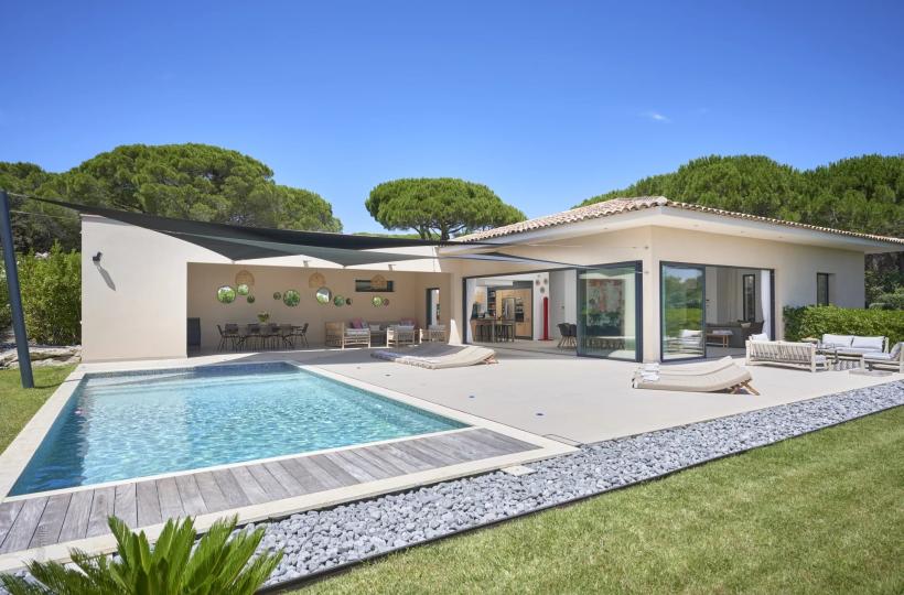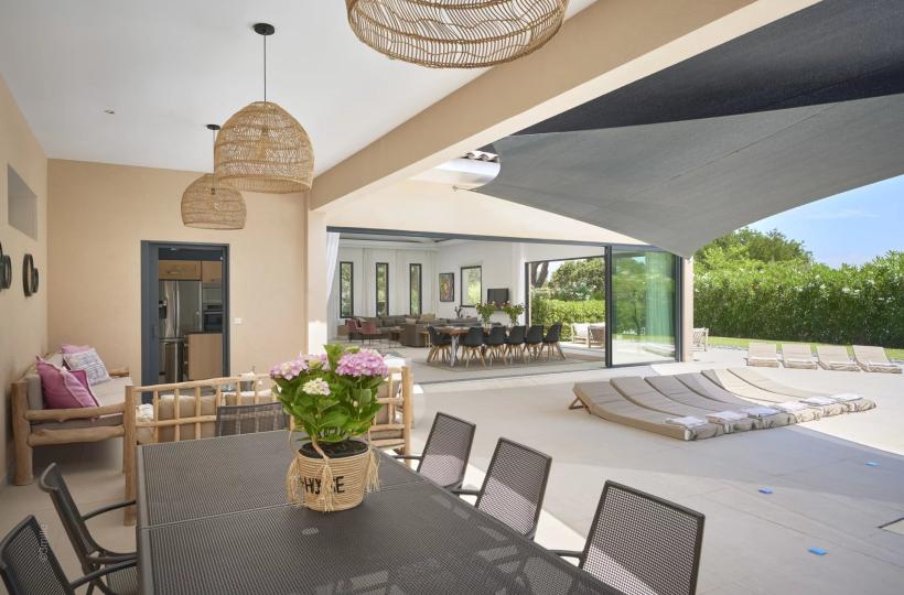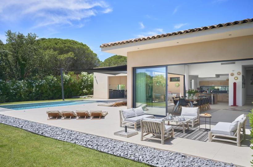 Open to the outside and easy to live in, the villa offers a very pleasant living environment between the village of Ramatuelle and the beaches of Pampelonne.