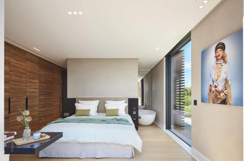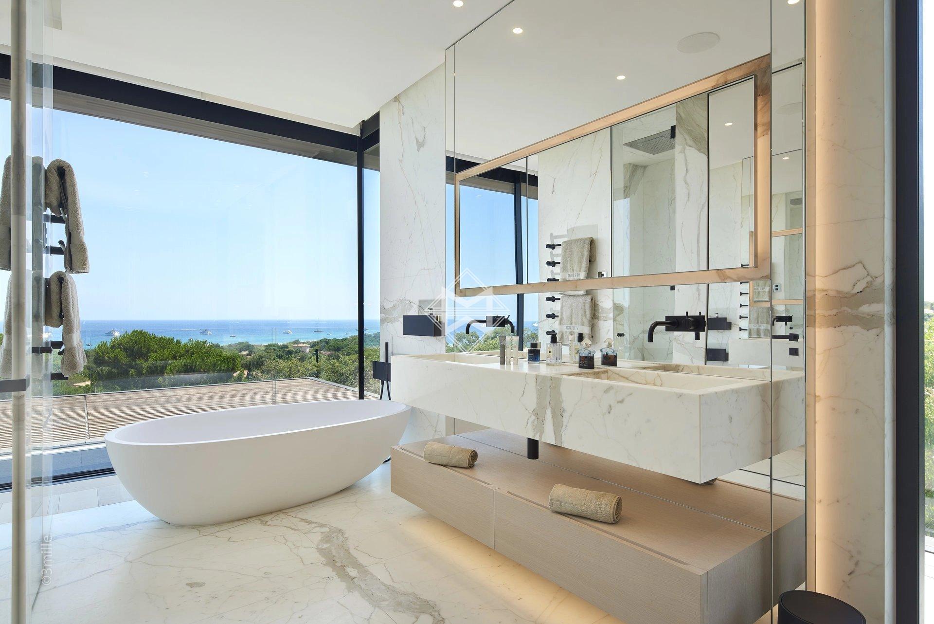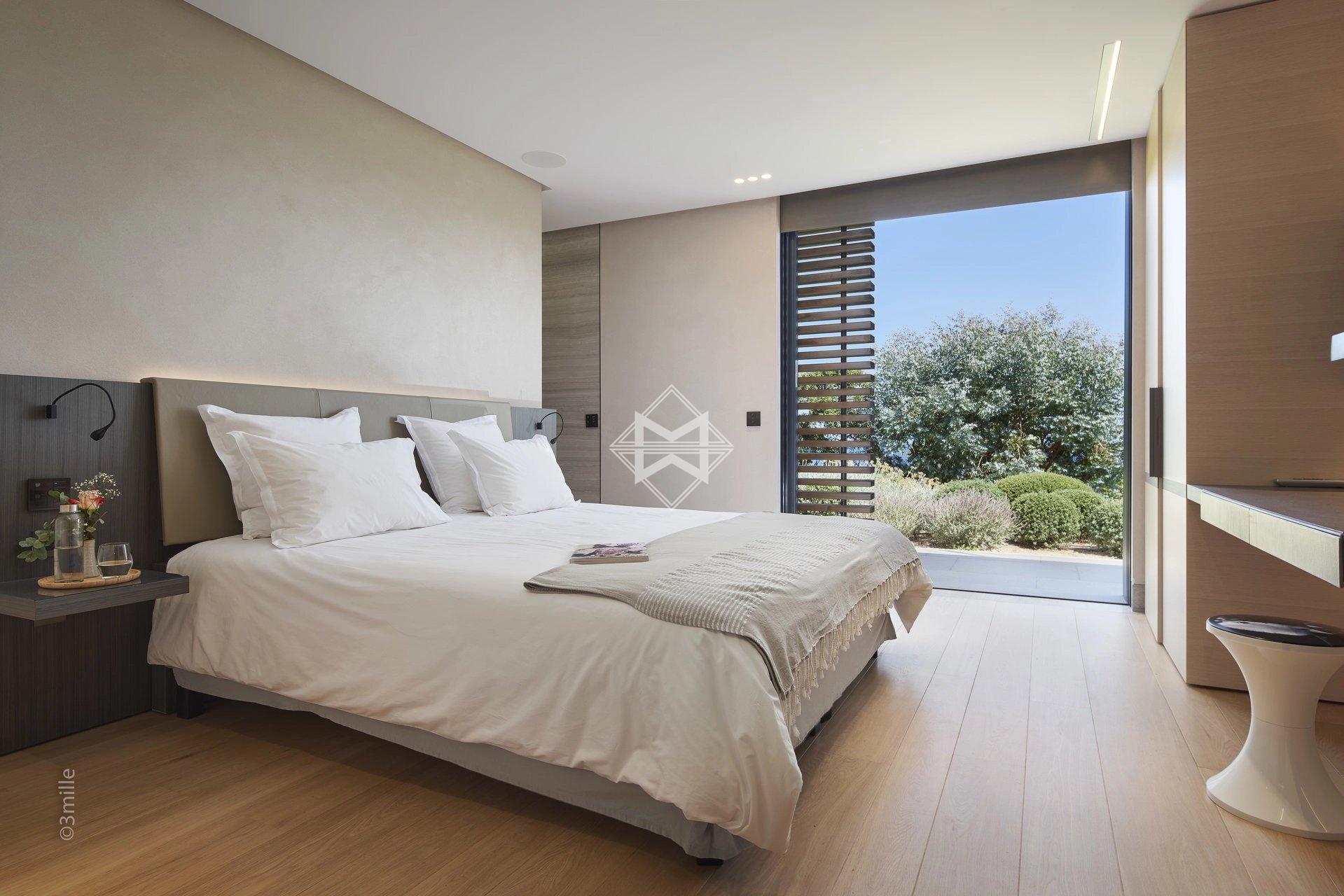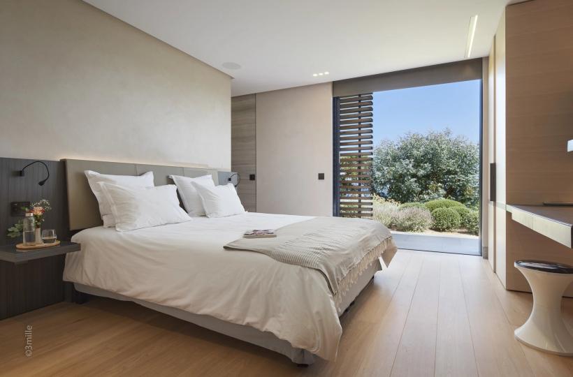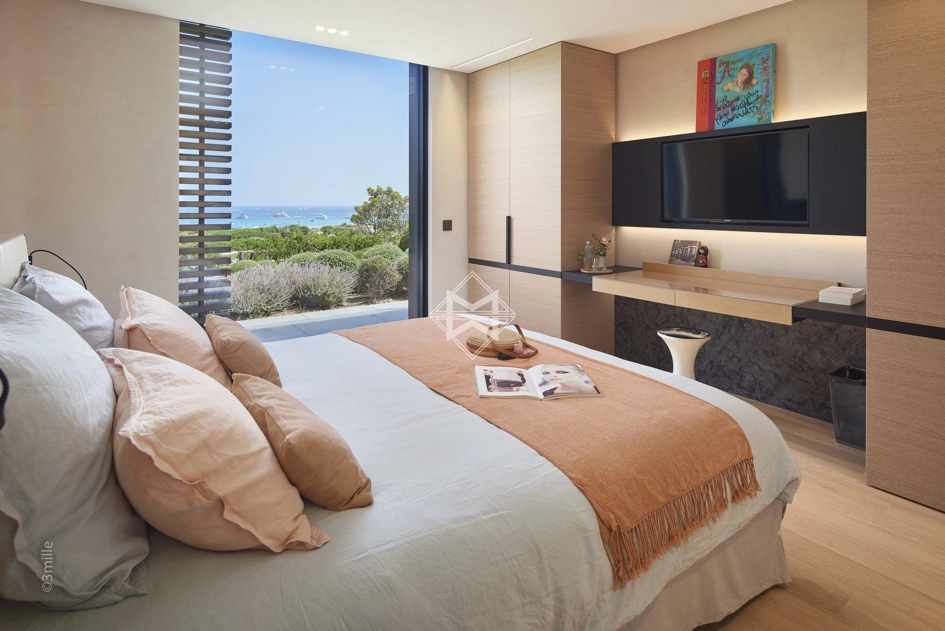 It develops an area of approximately 650 m2, with large living spaces open to the outdoors and the bay of Pampelonne, 6 suites, 2 service rooms and a caretaker's accommodation.