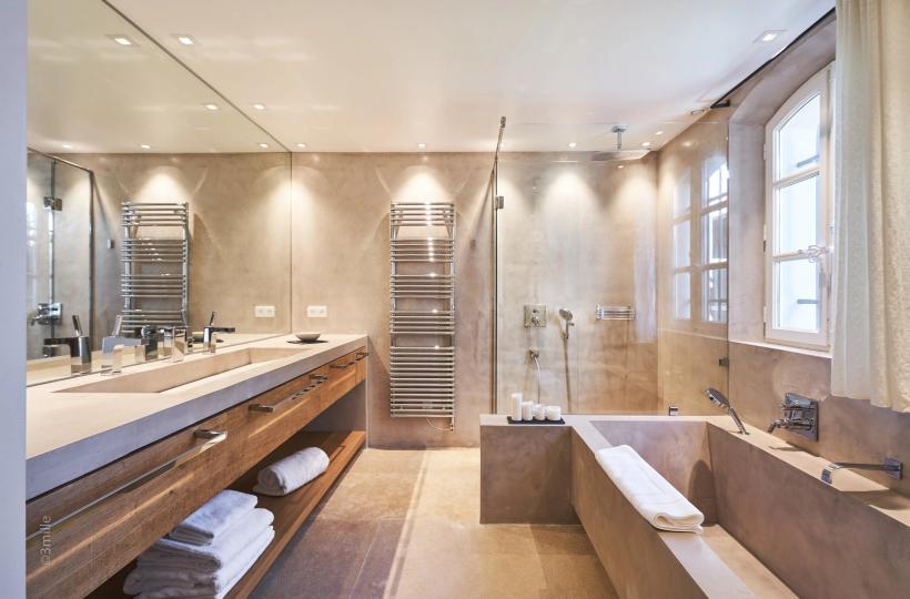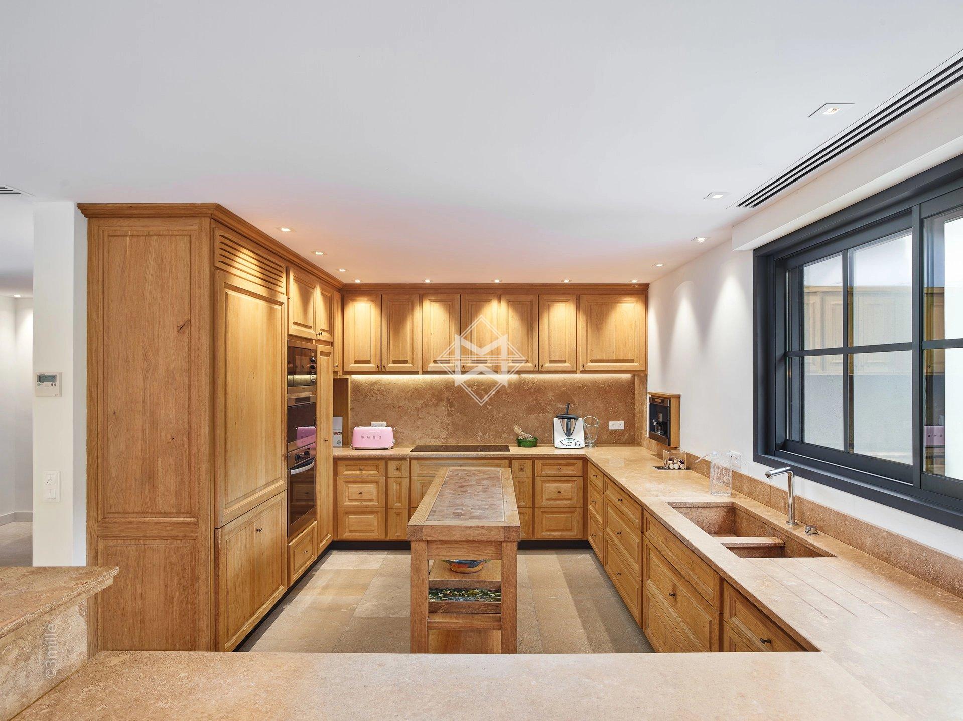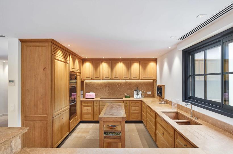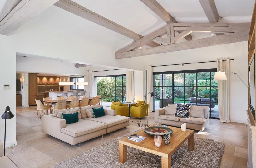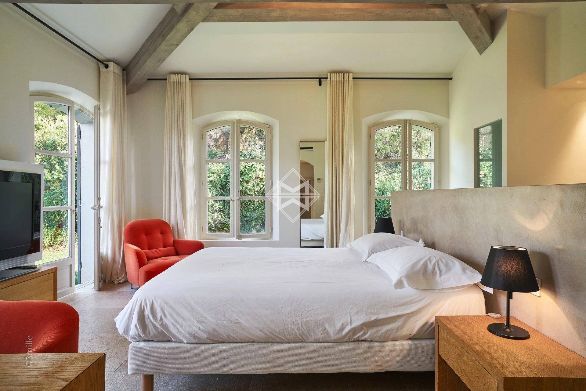 The villa includes a large living room with fireplace and dining room, fully equipped kitchen, summer dining room, 5 bedrooms each with its own bathroom opening onto the terrace and garden.