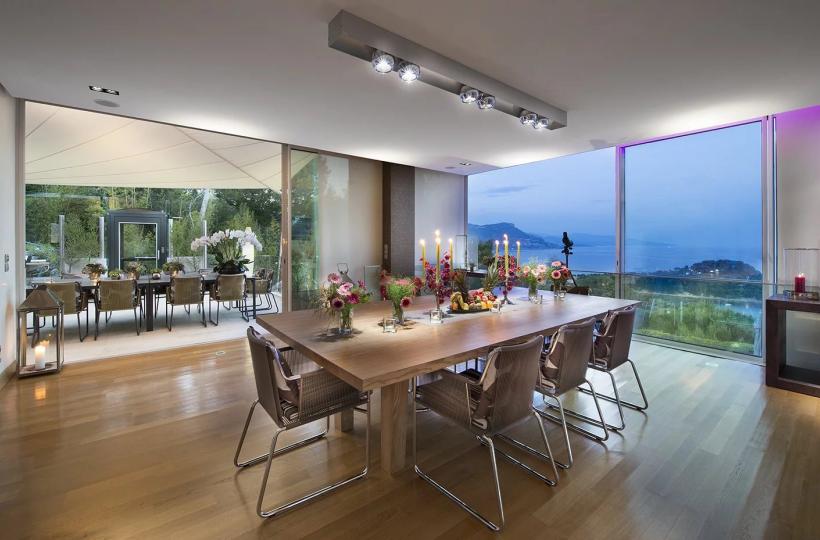 The elevated dinning area and salon have uninterrupted 180 degree sea views. Fully equipped Boffi kitchen. The property offers a Spa with Hammam, sauna, shower and massage room. Wine cellar featuring some of the finest wines for sale. Fully integrated security system. Outdoor and indoor swimming pool.