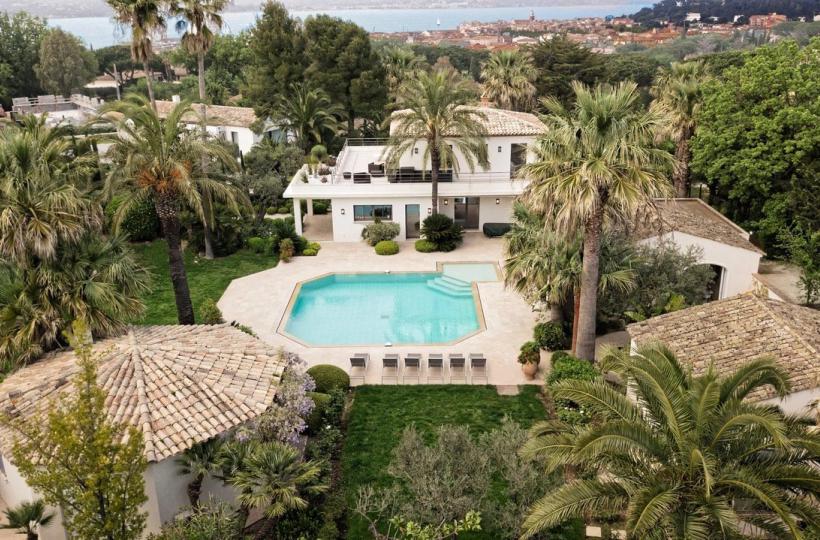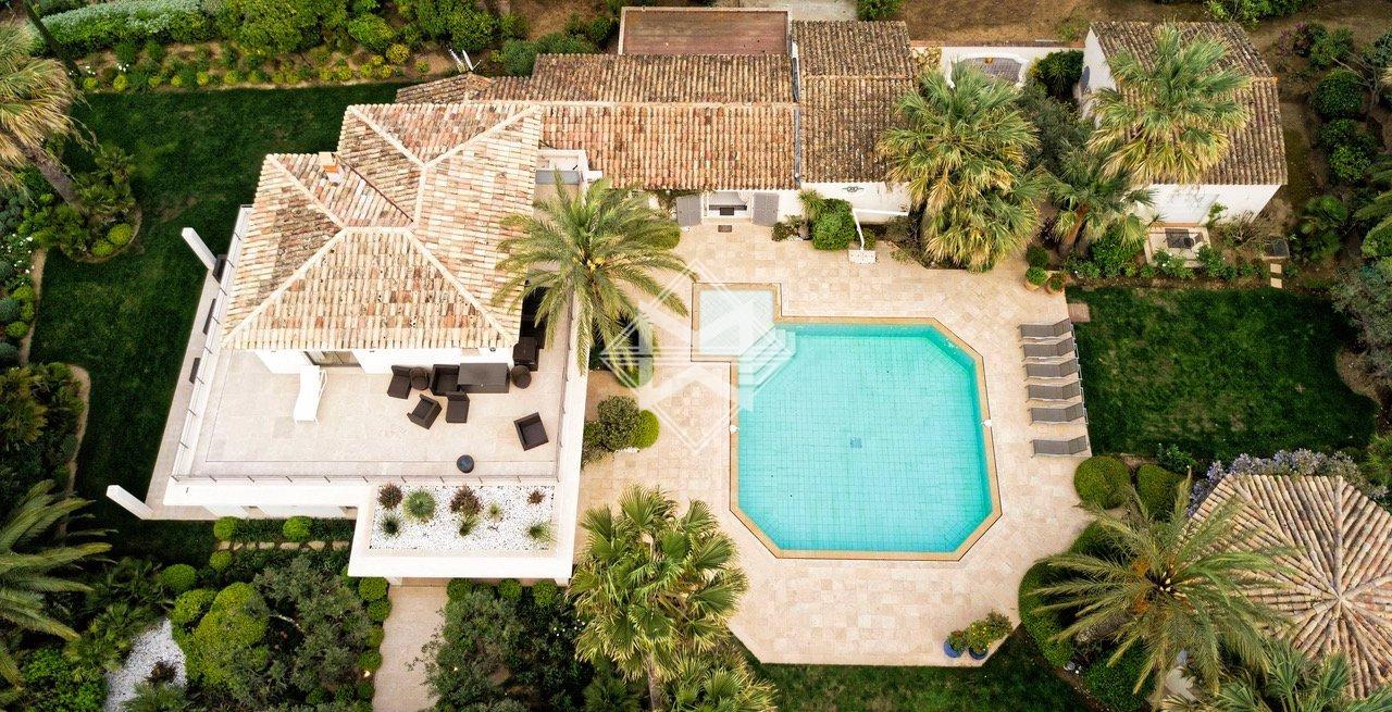The property is harmoniously blends in perfectly with the surrounding calm environment, and a park of more than 3600 m², manicured with taste (palm trees, olive trees, rose trees and other Mediterranean shrubs), with a large heated swimming pool, a fountain and terraces.
