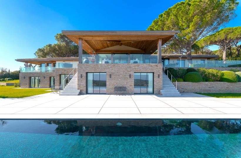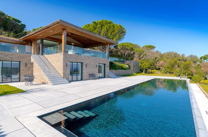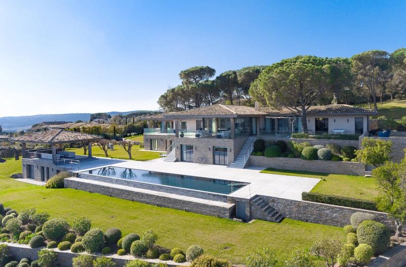 In the heart of a closed estate, in one of the most sought-after areas in Saint-Tropez, exceptional modern property offering a breathtaking sea view over the Cannebiers and Pampelonne.