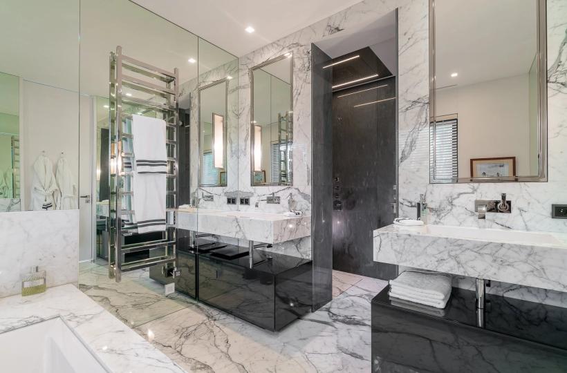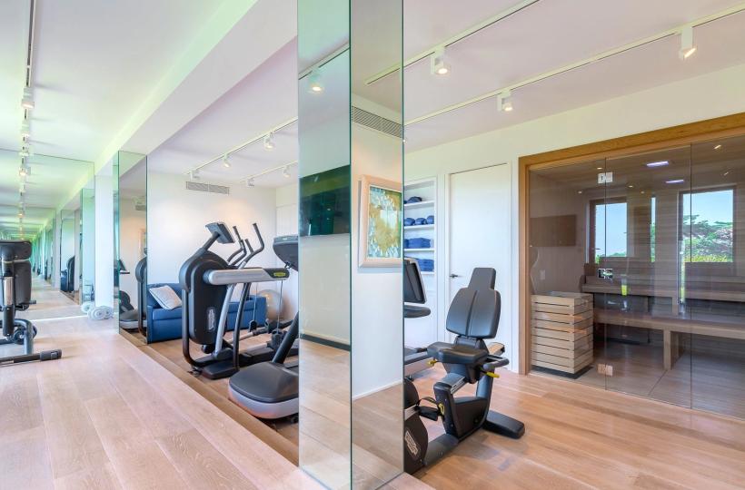 Very high end amenities, first quality materials (marble, natural stone, wood...), sports room, sauna and a beautiful patio.