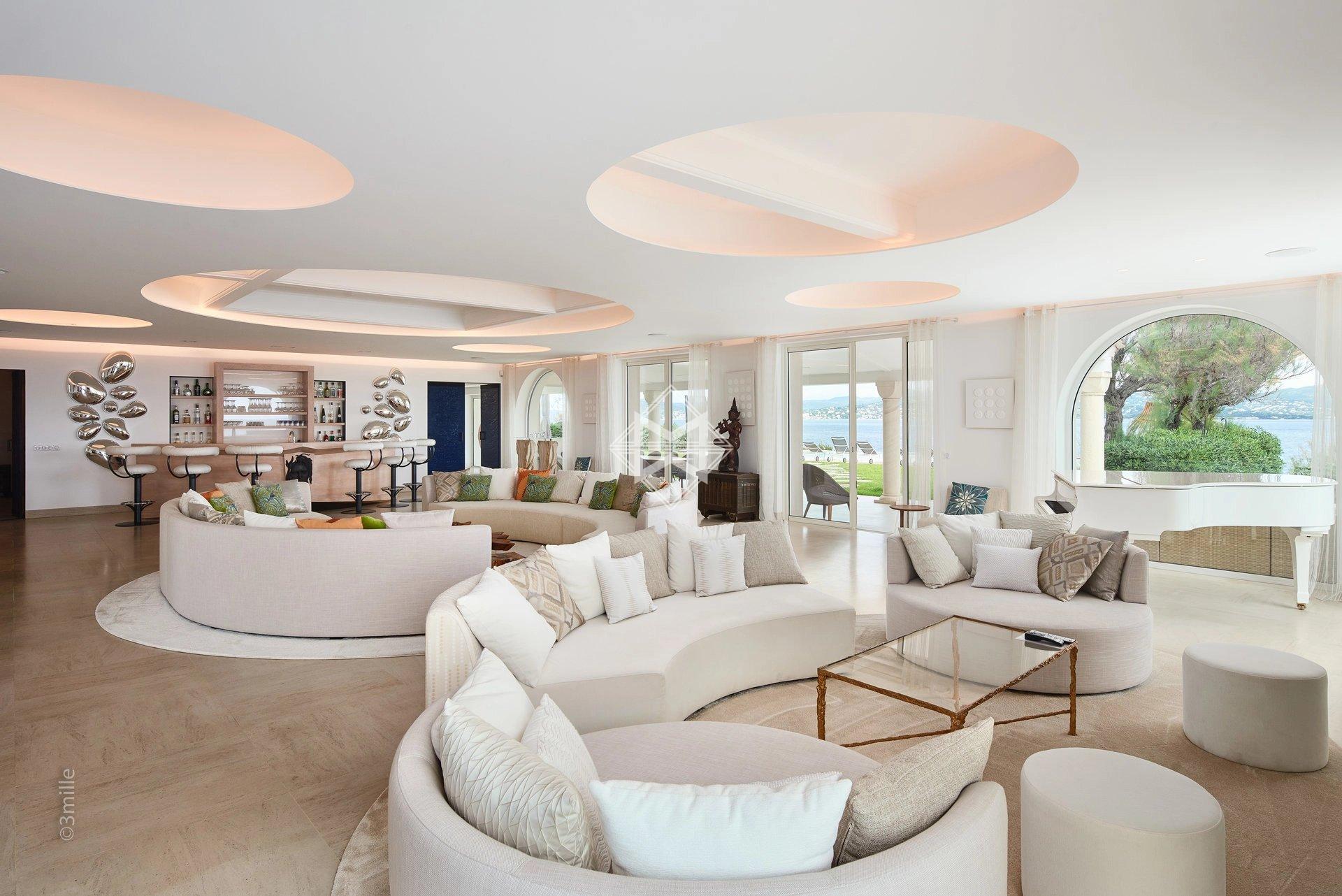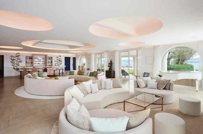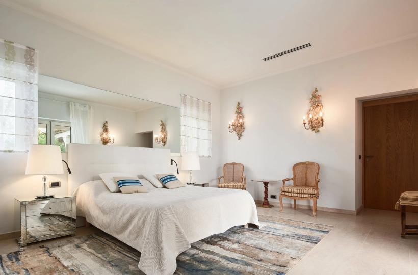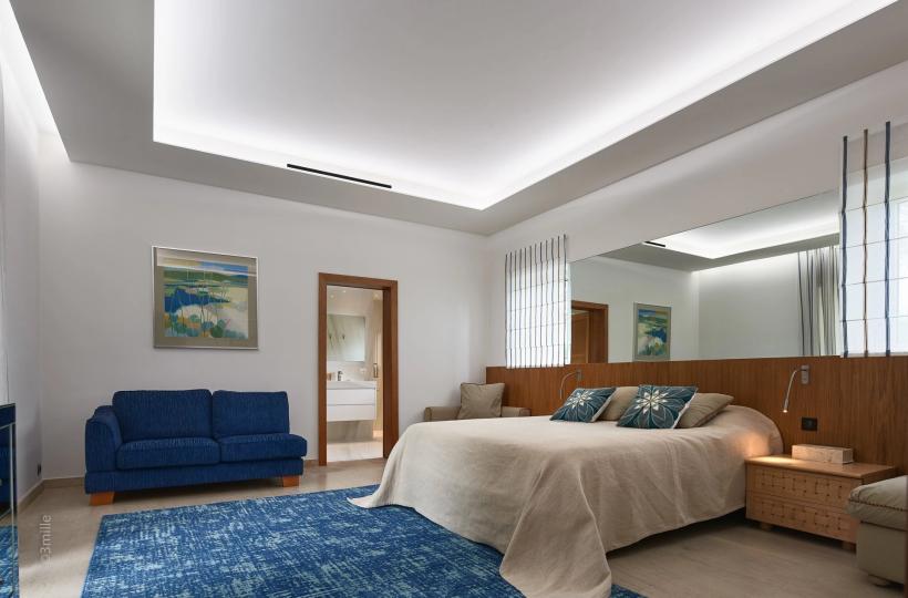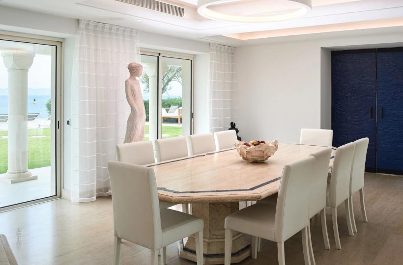 The villa, of a living surface of approx. 600 sqm, is composed of a double living room with bar area and a grand piano, a dining room, a fully fitted kitchen, 8beautiful suites and a study room with library