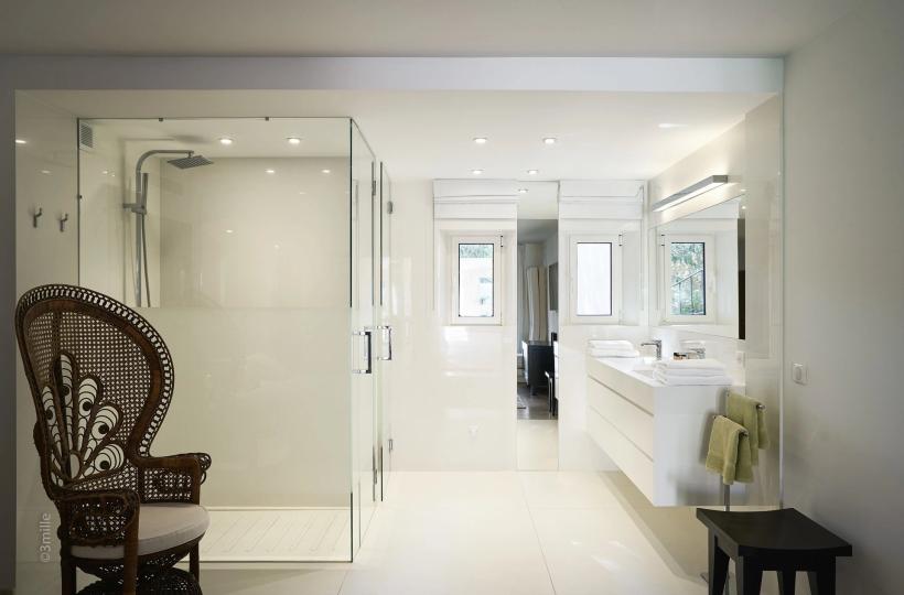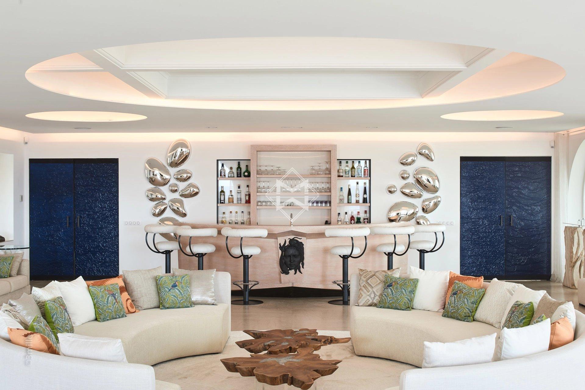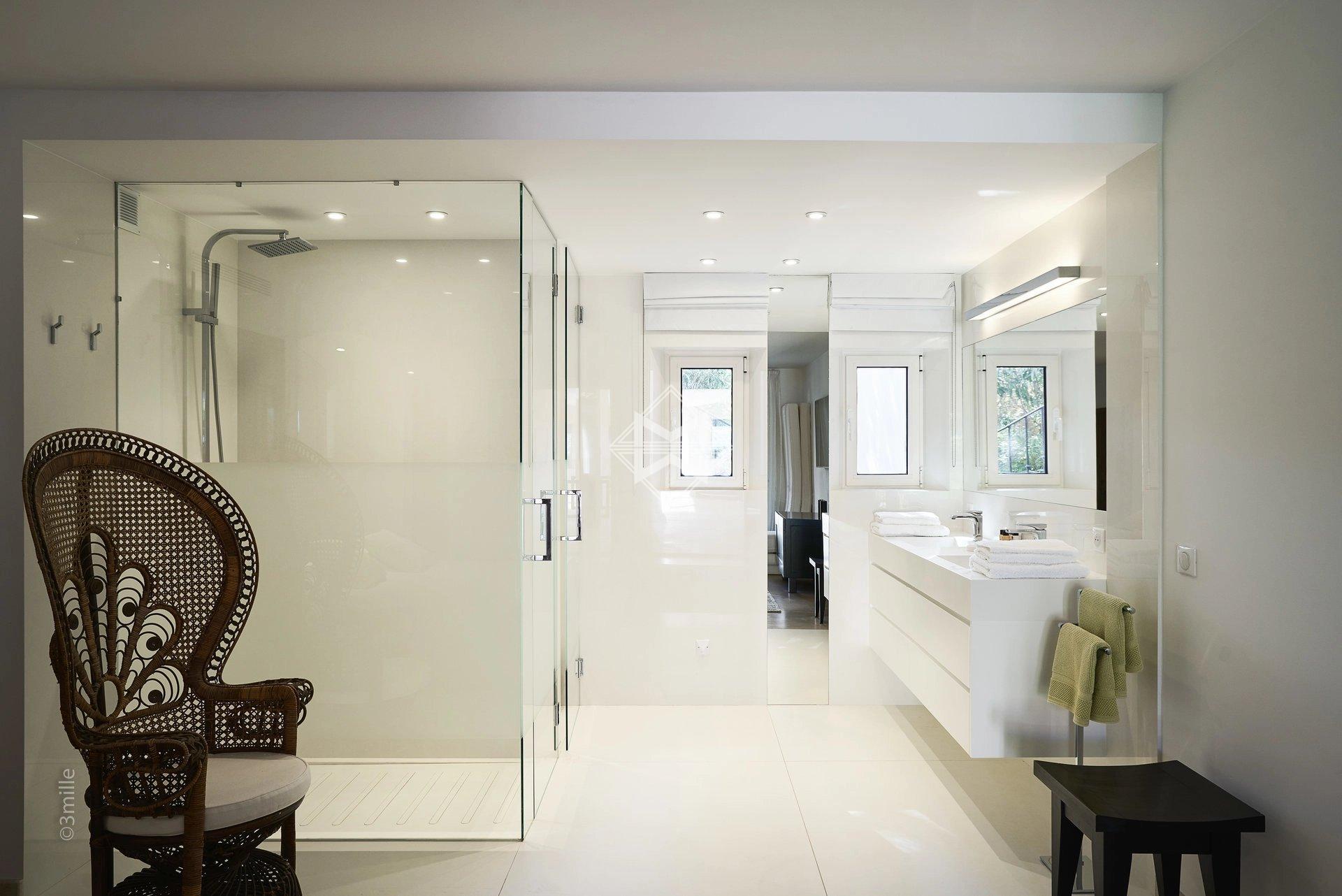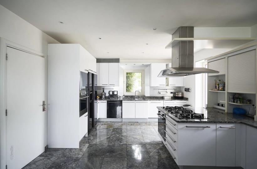 The villa, of a living surface of approx. 600 sqm, is composed of a double living room with bar area and a grand piano, a dining room, a fully fitted kitchen, 8beautiful suites and a study room with library