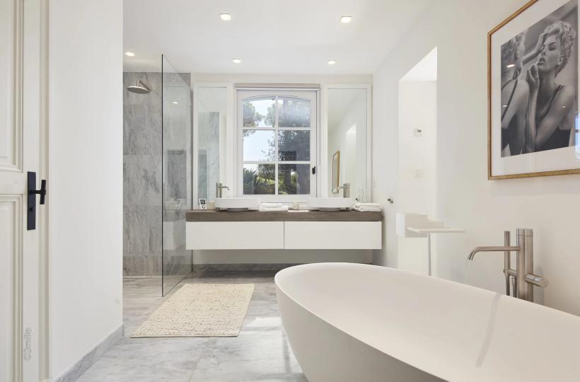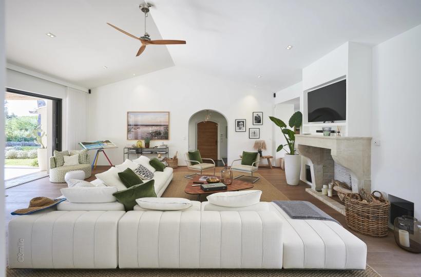 This elegant and warm villa with bohemian decoration and high-quality appointments, has an area of approximately 335 m2, including living areas facing the terraces, and 5 suites.
