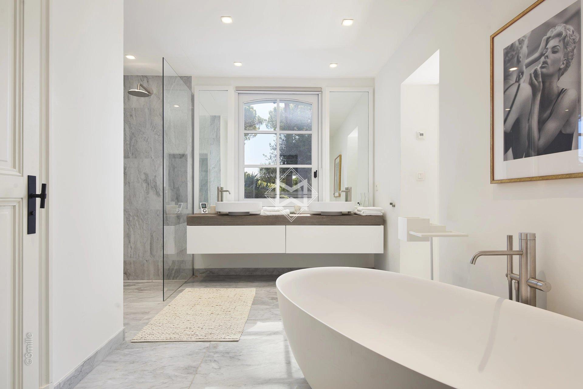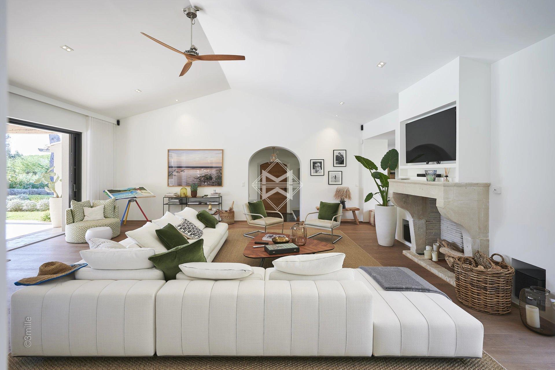 The house, facing south, benefits from superb flat landscaped grounds of 4960 m2, planted with majestic umbrella pines and Mediterranean species, and decorated with a beautiful heated swimming pool, several terraces, a pool-house and 'a pétanque court.