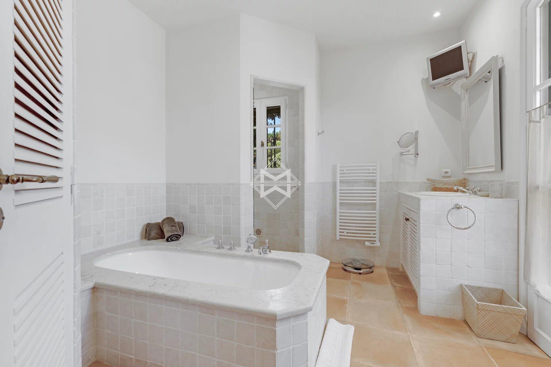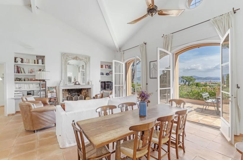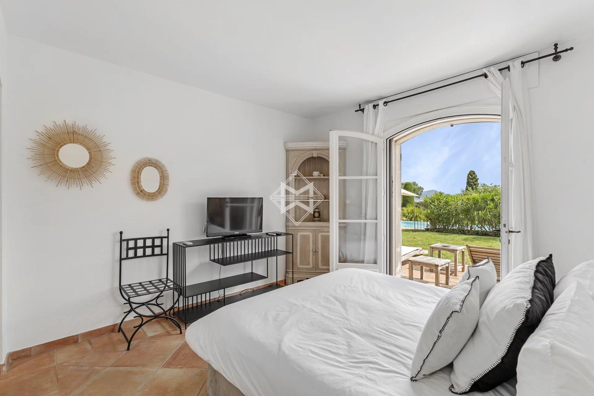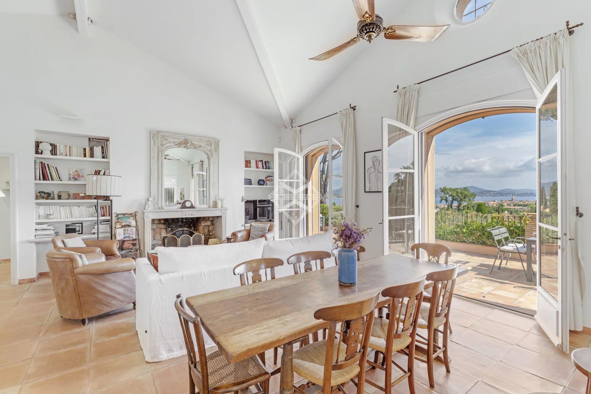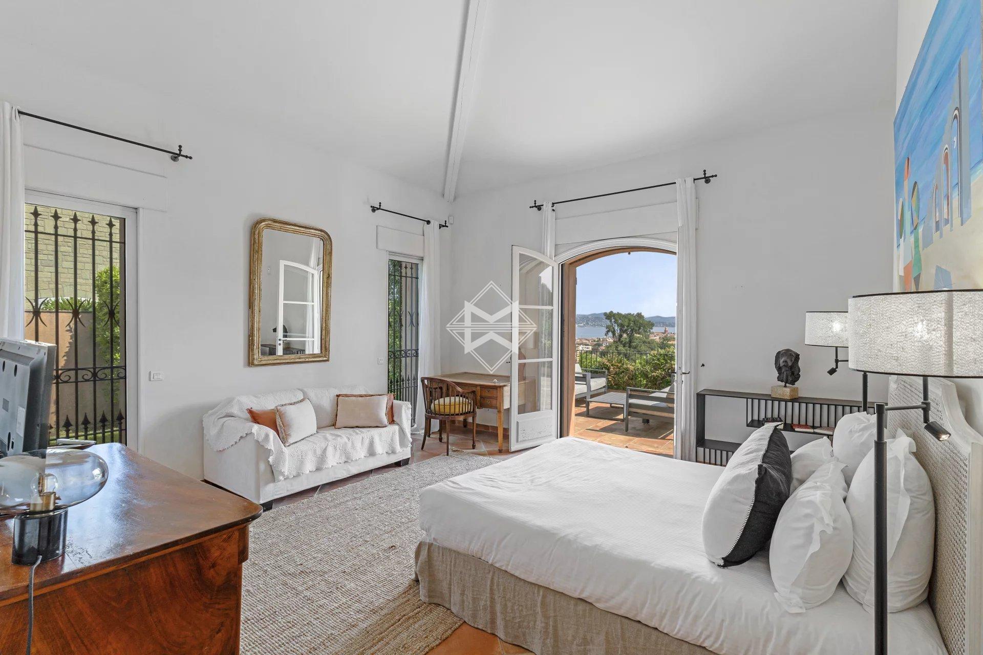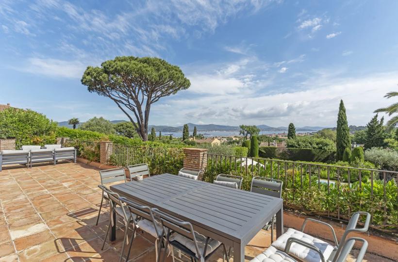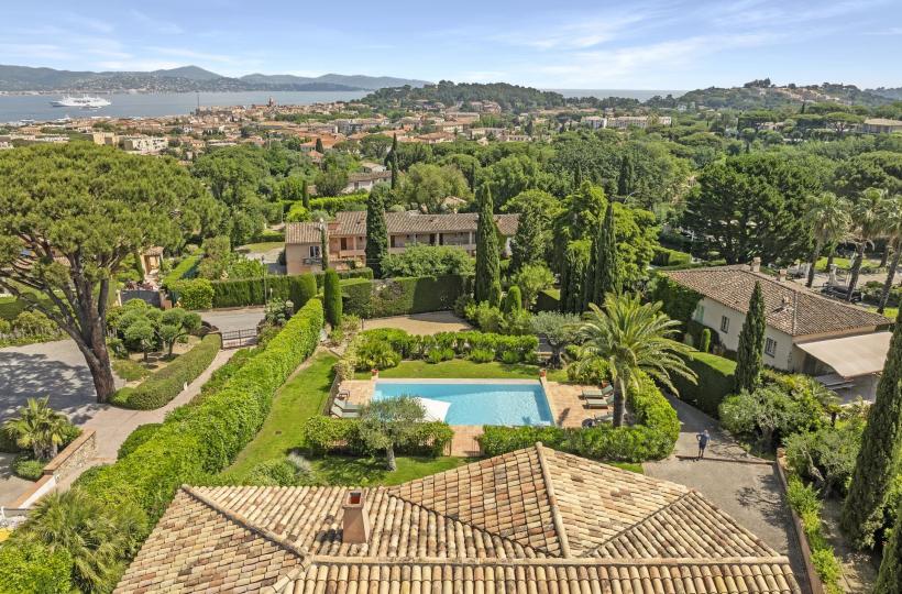 Ideally located in a closed domain just a few minutes walk from the Place des Lices, a sublime Provencal and modern villa overlooking the Gulf of Saint Tropez, on a pretty landscaped plot of 1980 m2.