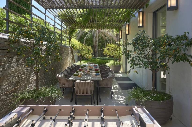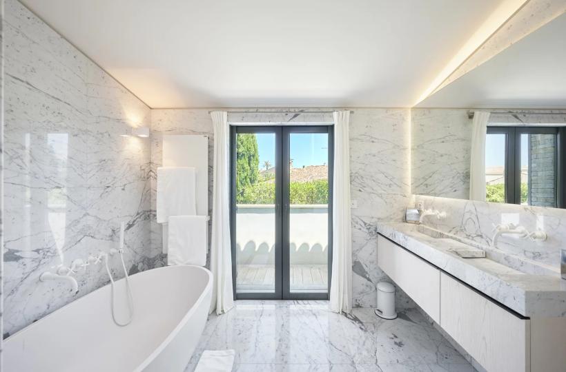 This villa is composed of a large living room opening onto a large terrace fully equipped to take advantage of the outdoor space, as well as a large equipped kitchen. It also has 5 beautiful suites all with their own bathroom/shower. You can also benefit from a relaxation and fitness room, as well as a hammam corner, plus an other bedroom for staff.