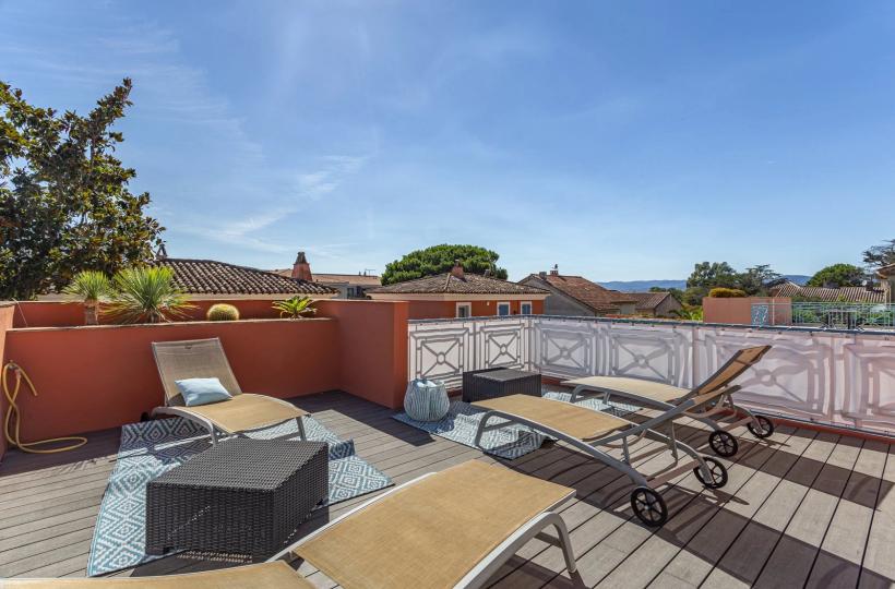 In a small building comprising 4 villas, ideally located close to Place des Lices, atypical house completely renovated with quality materials and benefiting from several terraces and a private garden.