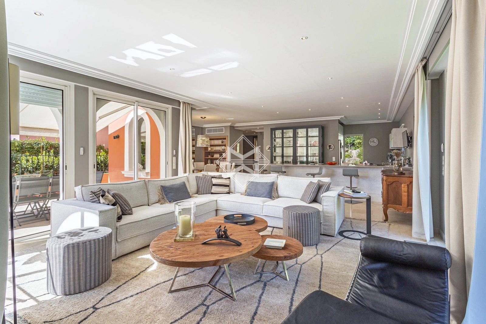 Built on 3 levels, the house, with an area of 262 m2, consists on the ground floor of a large living space with kitchen opening onto a pleasant terrace and a 280 m2 garden sheltered from looks. A mezzanine with 3 en-suite bedrooms and an upper floor with a beautiful and spacious master suite opening onto a terrace offering a lovely unobstructed view.