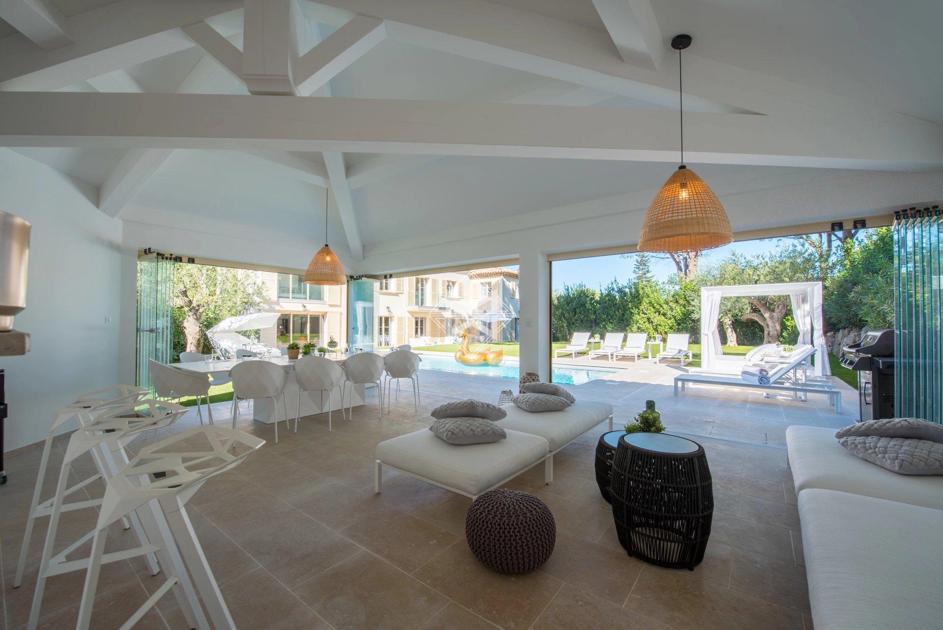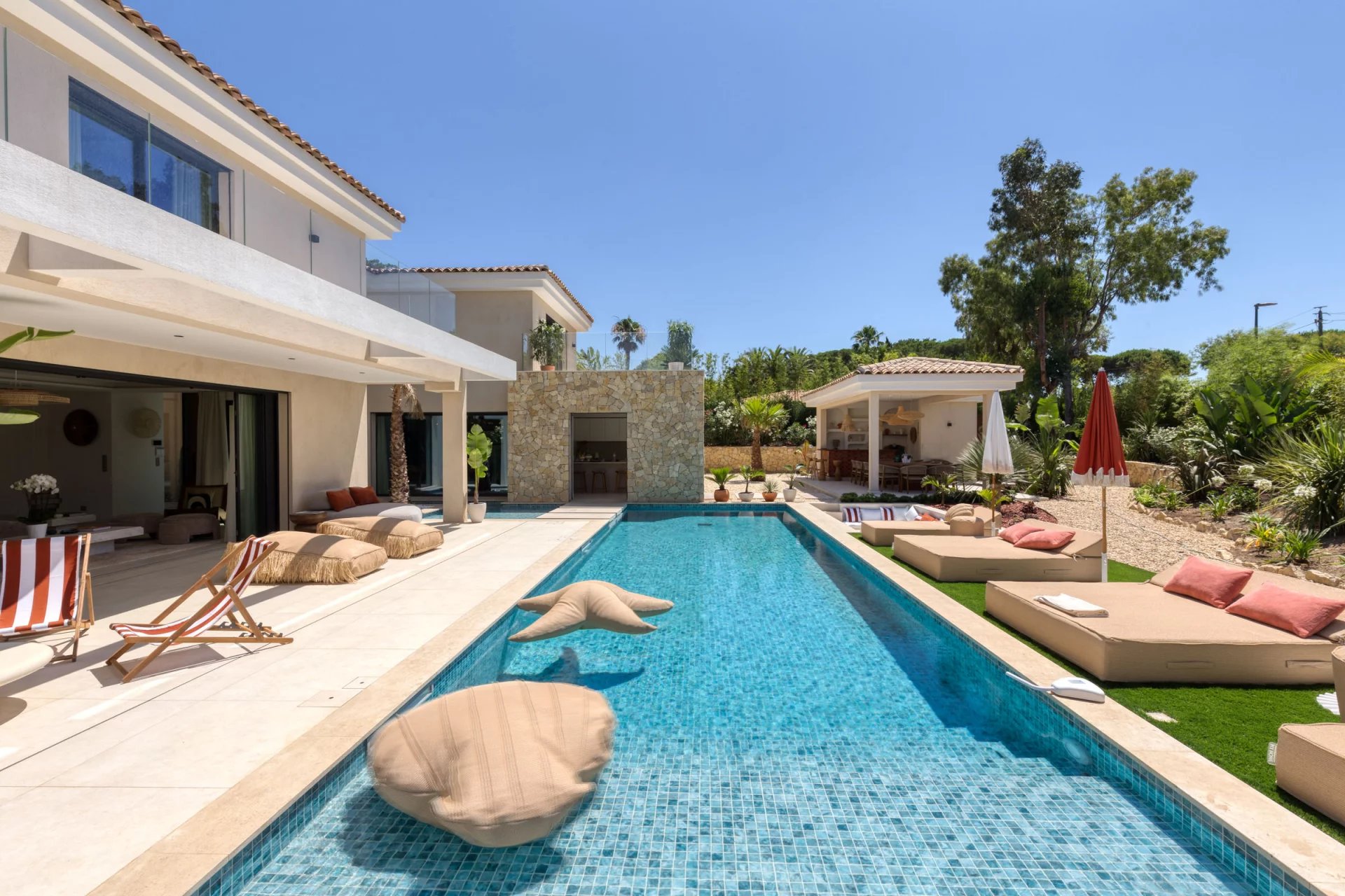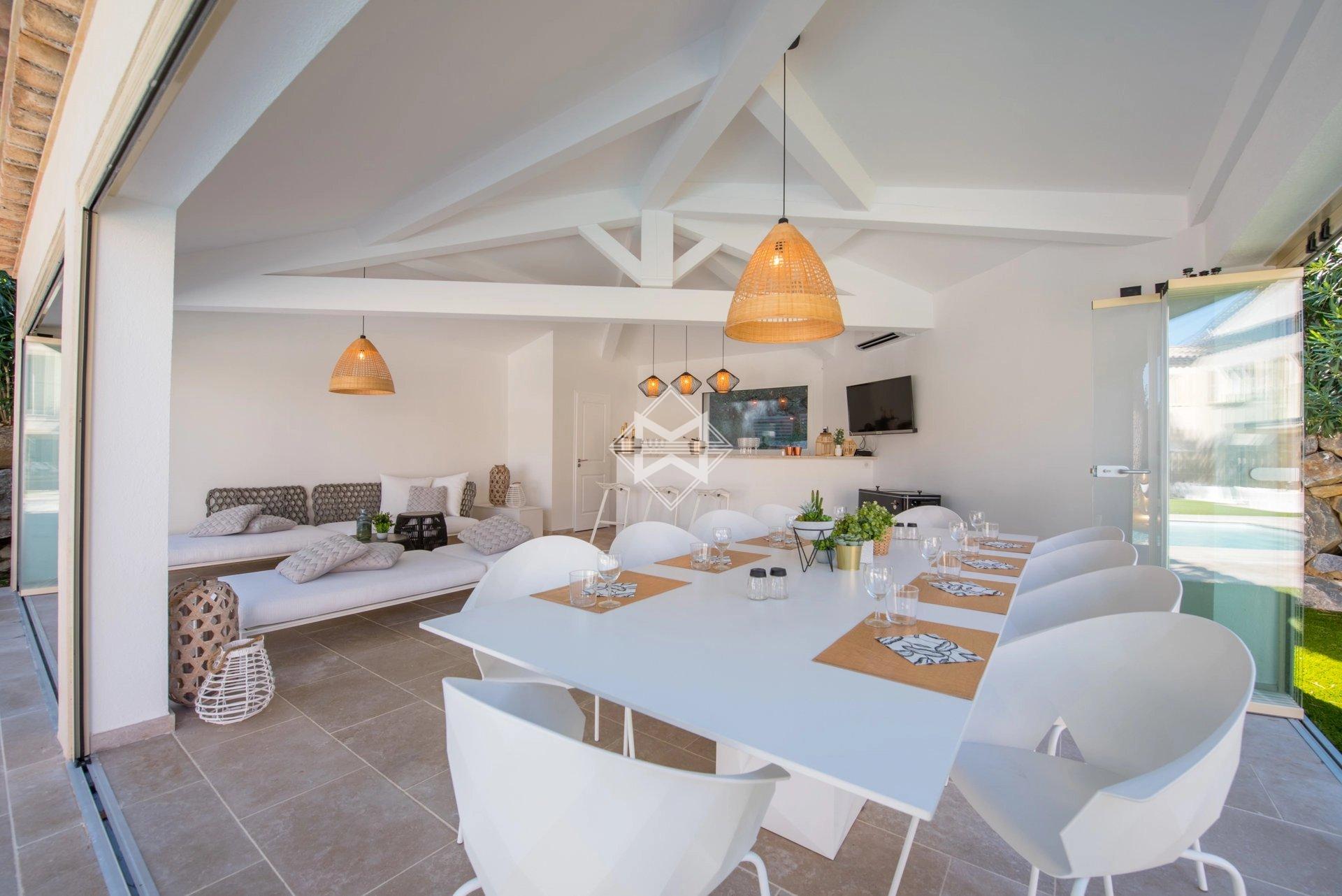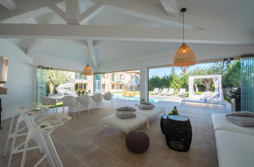 This villa will seduce you with its many facilities: gym, massage room, cinema room, heated swimming pool with equipped pool house (tv, air conditioning, kitchen) including a living / dining room, reception bar area, toilet and outdoor shower, outdoor lighting, alarm, video surveillance, automatic watering, air conditioning, parking for up to 10 vehicles.