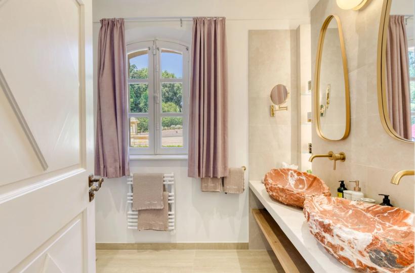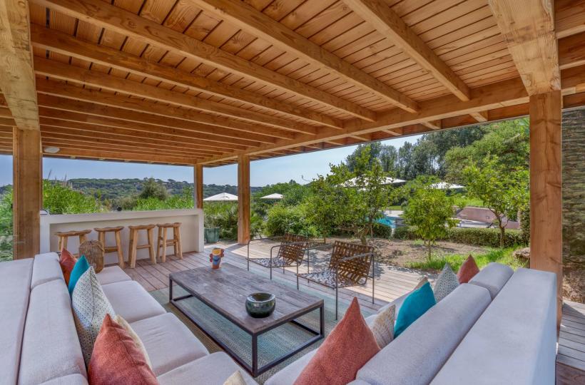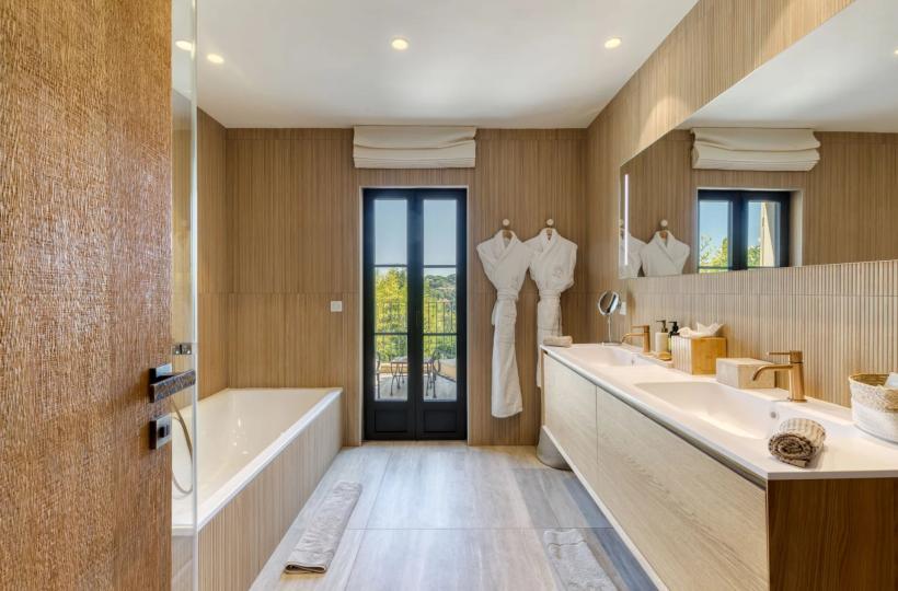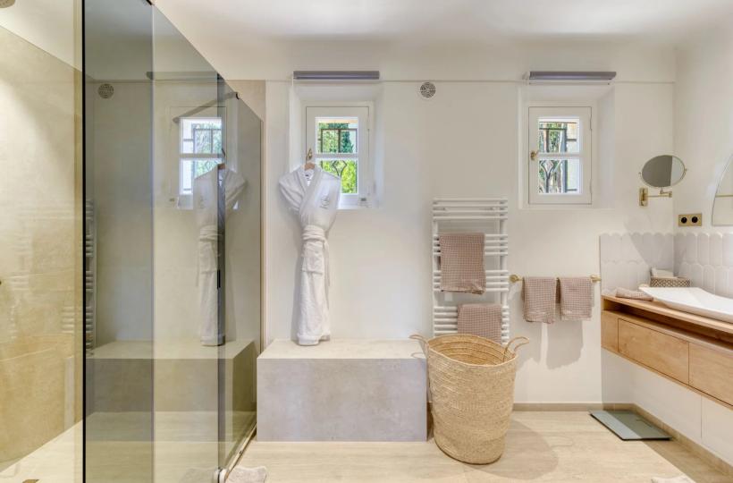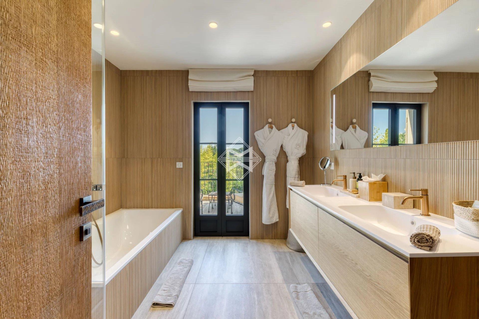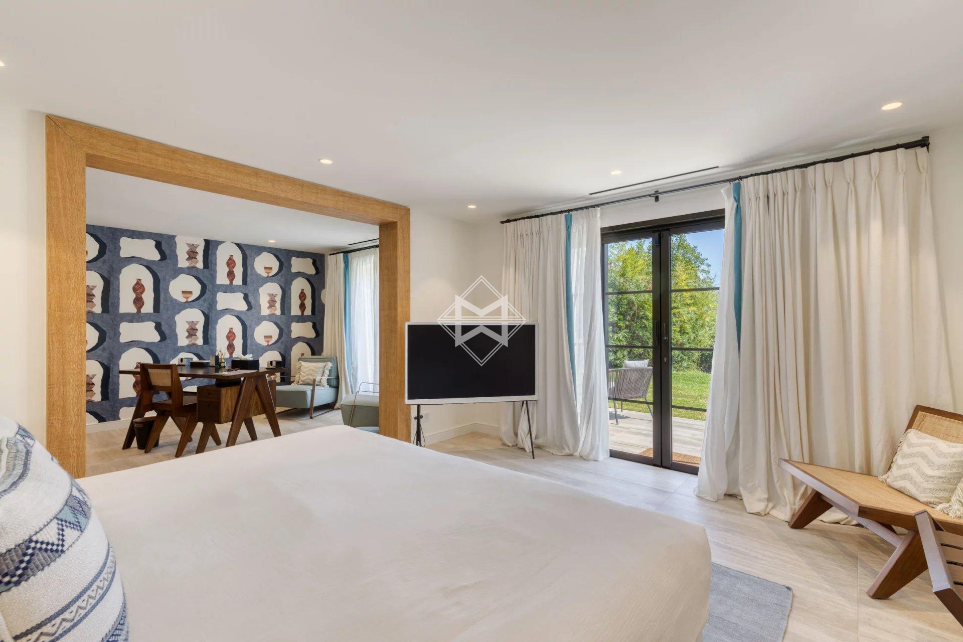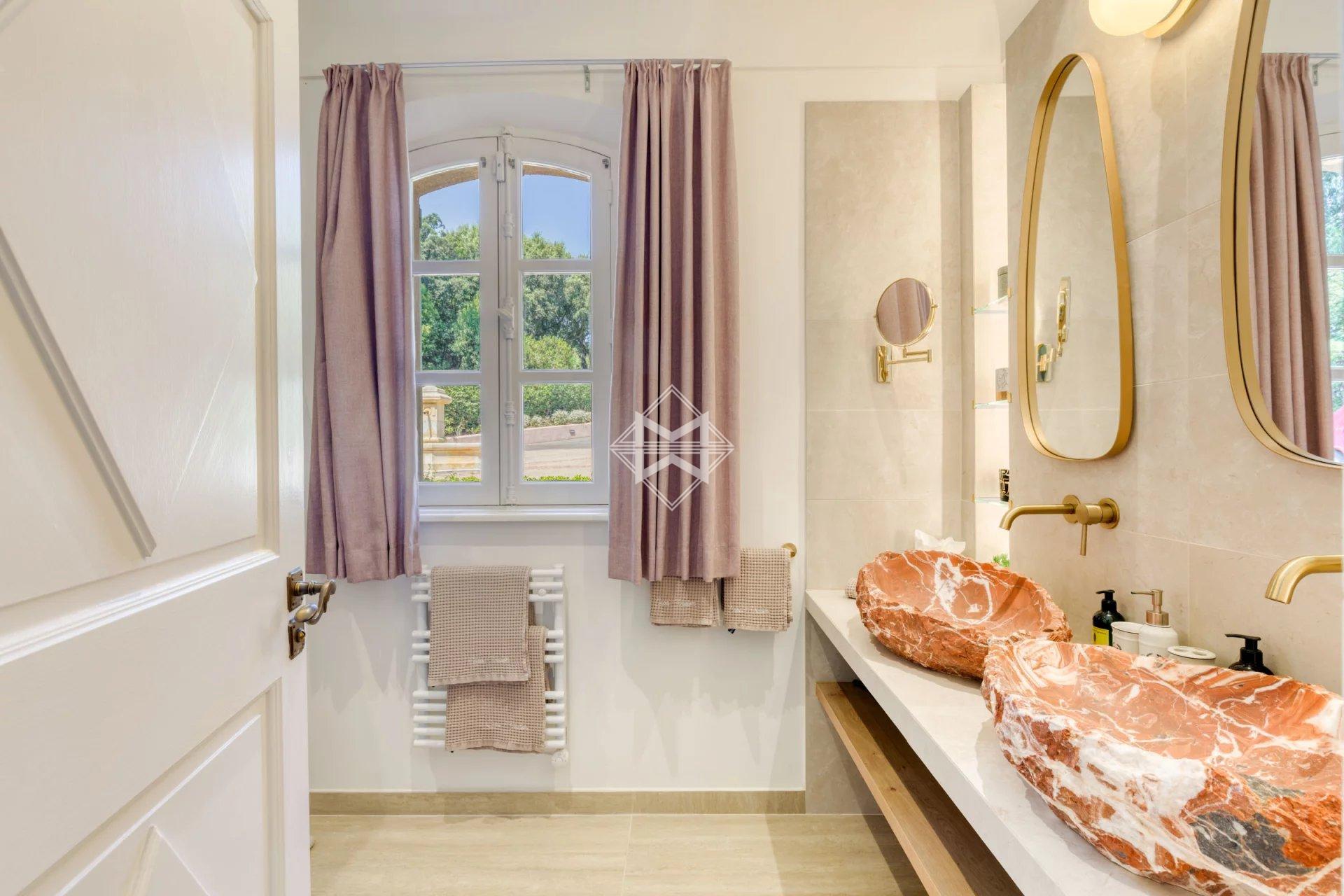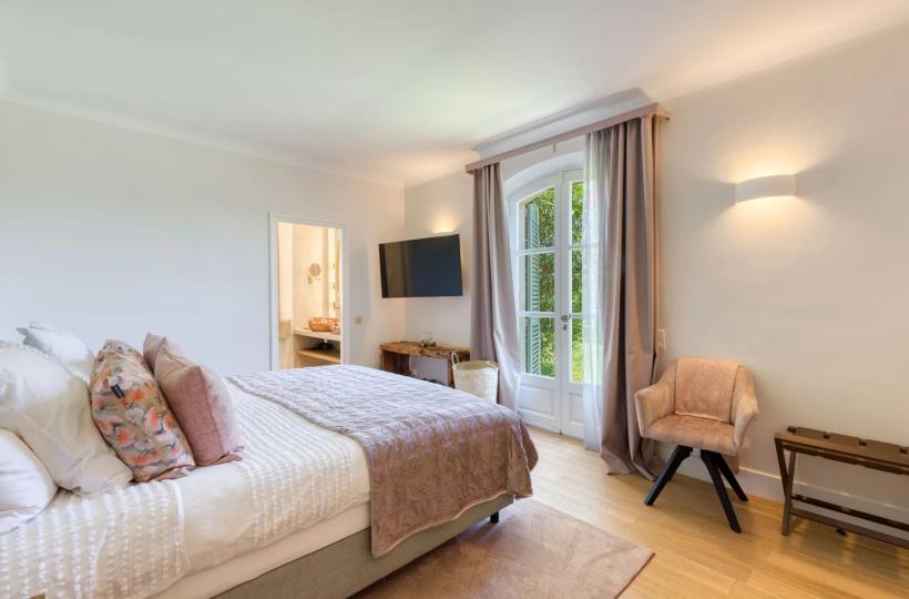 The main villa offers 4 en-suite bedrooms, a guest house with 2 guest suites and a caretaker’s house with 2 beds the whole on 4,800 sqm wooded and landscaped land with Mediterranean species, overlooking the vineyards, the bay of Canoubiers and the Borelli Castle.