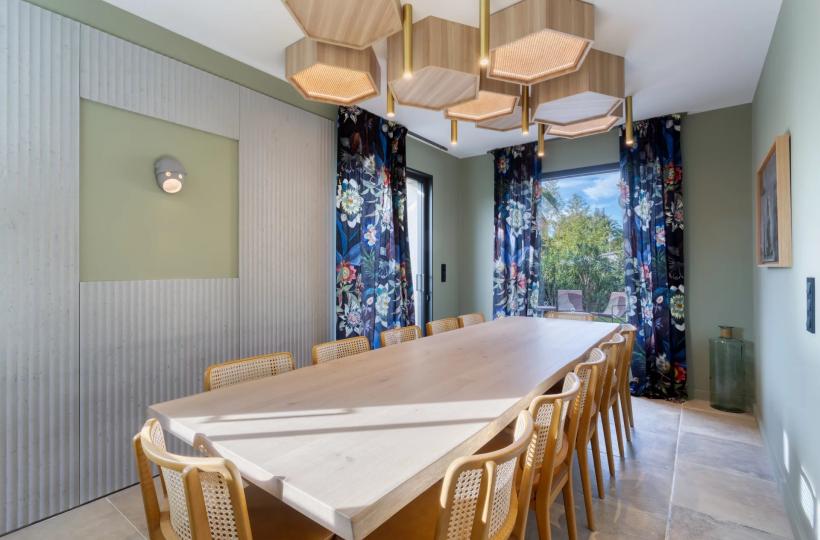 The villa consists of a spacious living room, a pleasant dining room and its very nice open kitchen fully equipped, 6 suites with shower/bathroom complete the set.