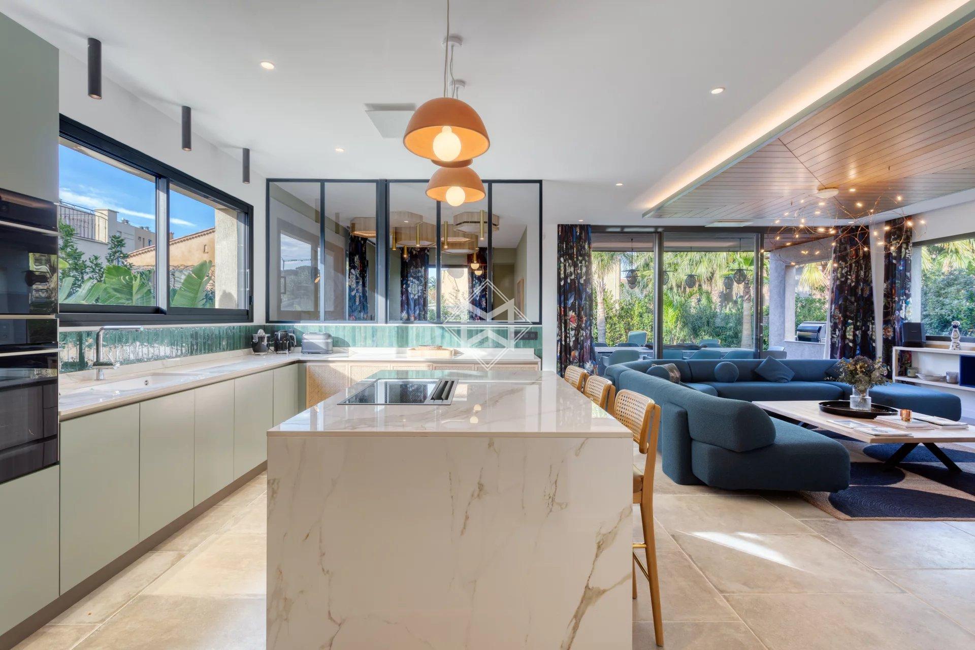 Ideally located and in absolute calm in a fully enclosed area, beautiful new house of modern architecture of about 290sqm enjoying a beautiful landscaped garden of about 620sqm.