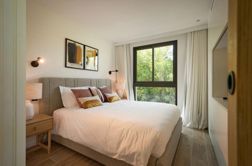 The expansive living room, bathed in natural light, features plush furnishings and Apple TV for moments of relaxation, while the fully fitted open-plan kitchen is perfect for entertaining in style. Note that there is a Starlink internet connexion, ensuring utmost comfort if you need to work remotely.