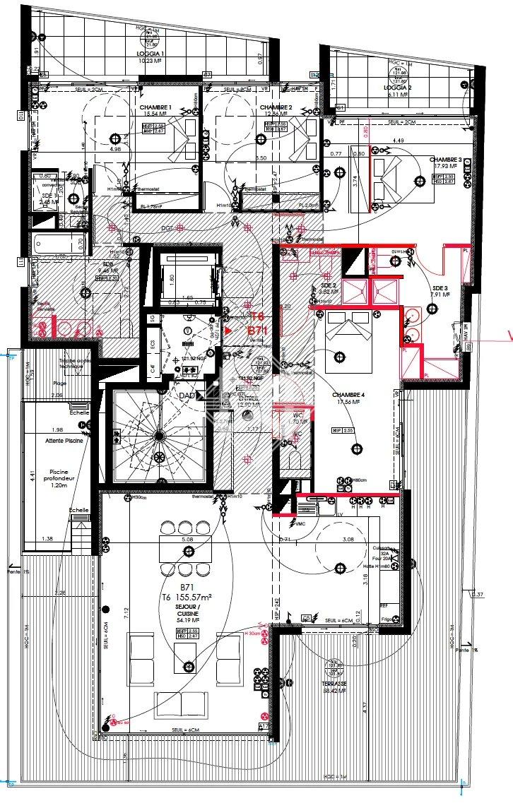 This magnificent 156 m² penthouse located on the 7th floor and top floor of a new residence in Beausoleil offers a spacious 58 m² terrace with small pool, allowing you to fully enjoy the unobstructed views of the horizon and the sea. It comprises an entrance, a living room bathed in light through large bay windows, 3 en-suite bedrooms and a fourth one with separate shower room. With an inspiring design and refined lines, renowned architect Jean-Michel Wilmotte has successfully combined the charm of individual housing with the advantages of a collective building. The architecture of the residence Olympe harmoniously integrates with the codes of the city and the neighborhood while adding a unique contemporary touch. The modernity of the structure reflects the desire to merge the interior and exterior spaces. The apartment is sold with 2 parking spaces and benefits from the proximity of all shops with :